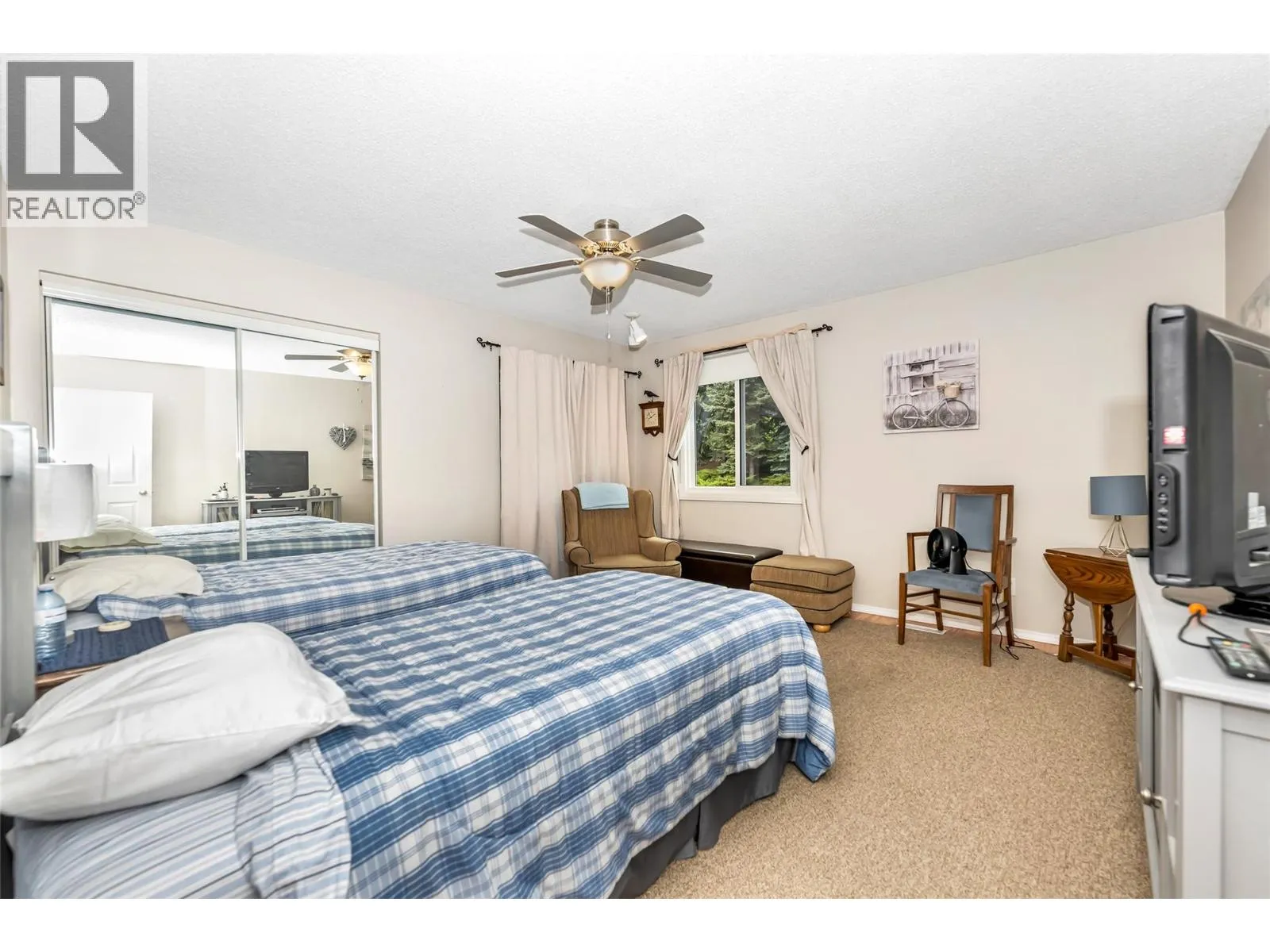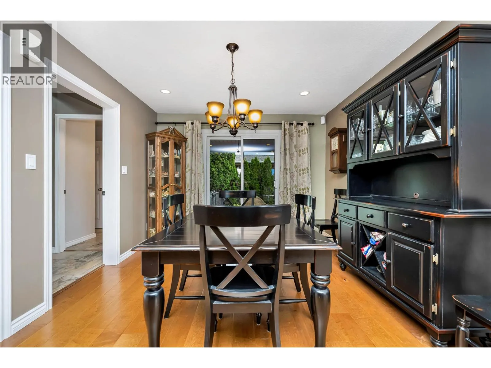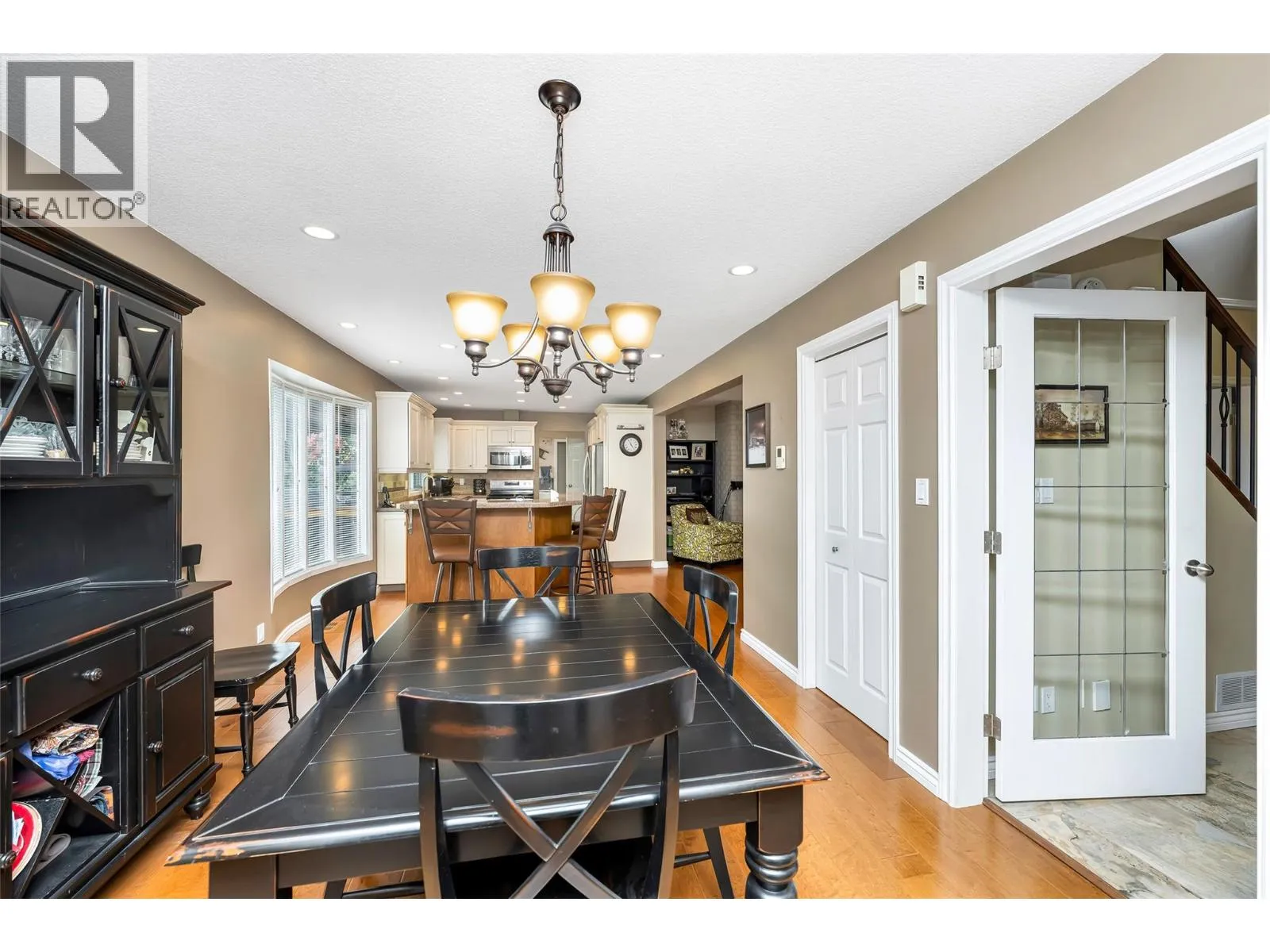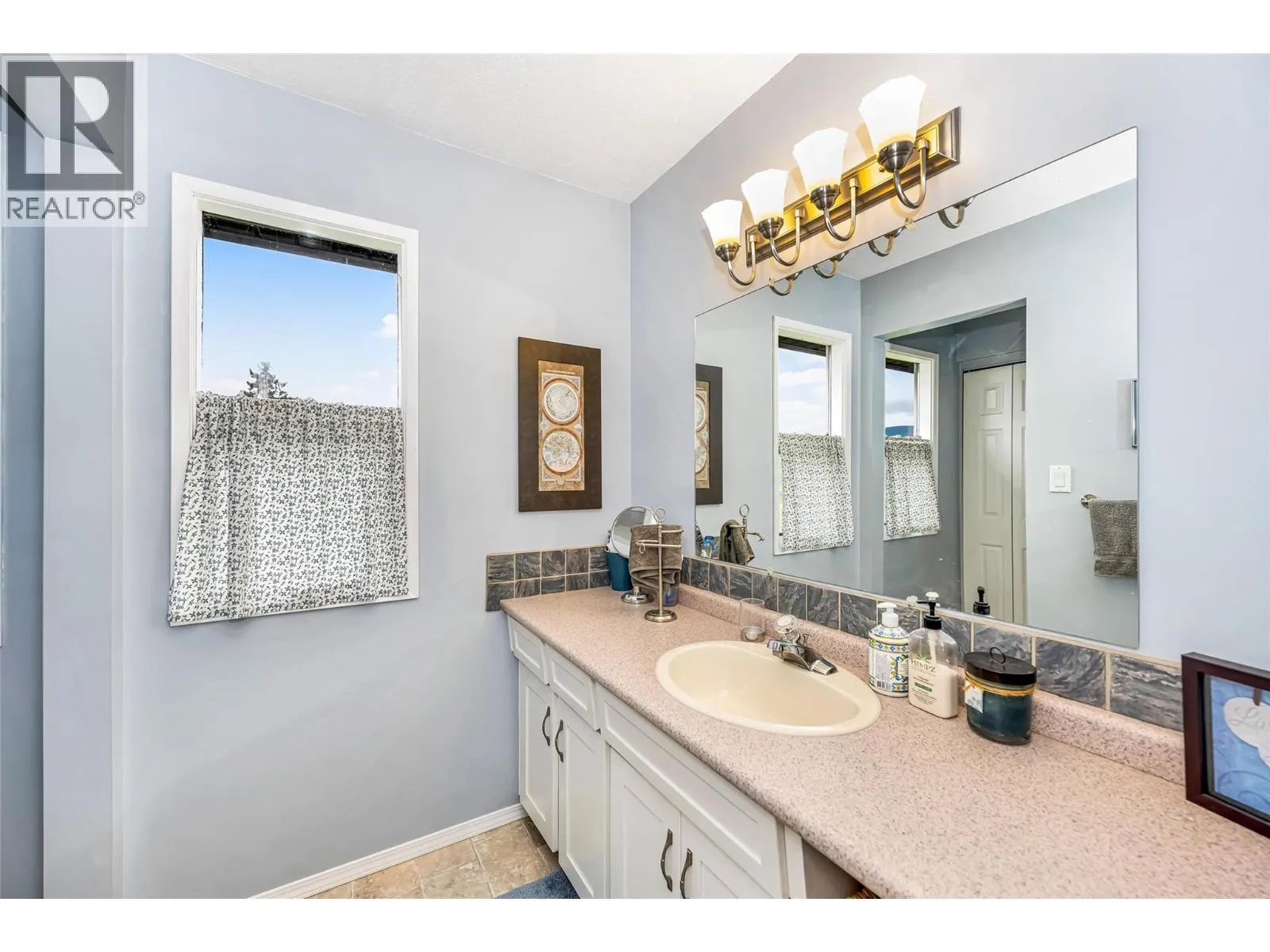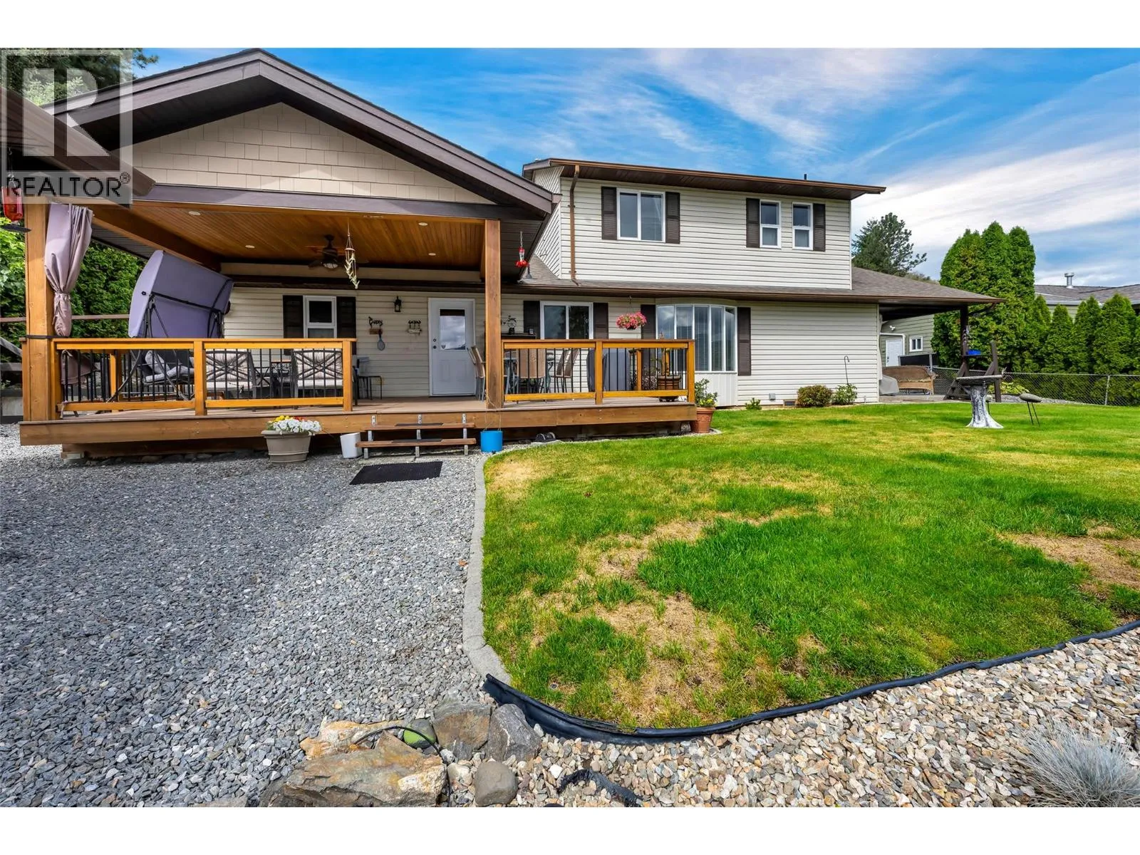 Updated house comes with a dream shop! This charming family home offers a well-designed layout with pride of ownership evident throughout. It features 3 bedrooms and 3 bathrooms, located on a quiet dead-end road just a short drive from downtown Vernon. The property includes a unique garden shed an impressive 560 sq.ft. insulated woodworking shop, perfect for hobbyists or professionals. Main highlights: Primary bedroom on main floor with walk-through ensuite. Modern kitchen with stainless steel appliances, large island, and formal dining area. Cozy living room with gas fireplace. Laundry room adjacent to a half bathroom and electric sauna. Upstairs with two bedrooms, a shared bathroom, and a versatile space for a desk or small library. Beautiful covered deck overlooking a manicured backyard with a garden shed and views of Swan Lake, city, and mountains. Large double garage, RV parking, and additional guest parking. This home seamlessly combines comfort, functionality, and scenic views, making it a wonderful place for family living, entertaining, and hobbies. (id:27476)