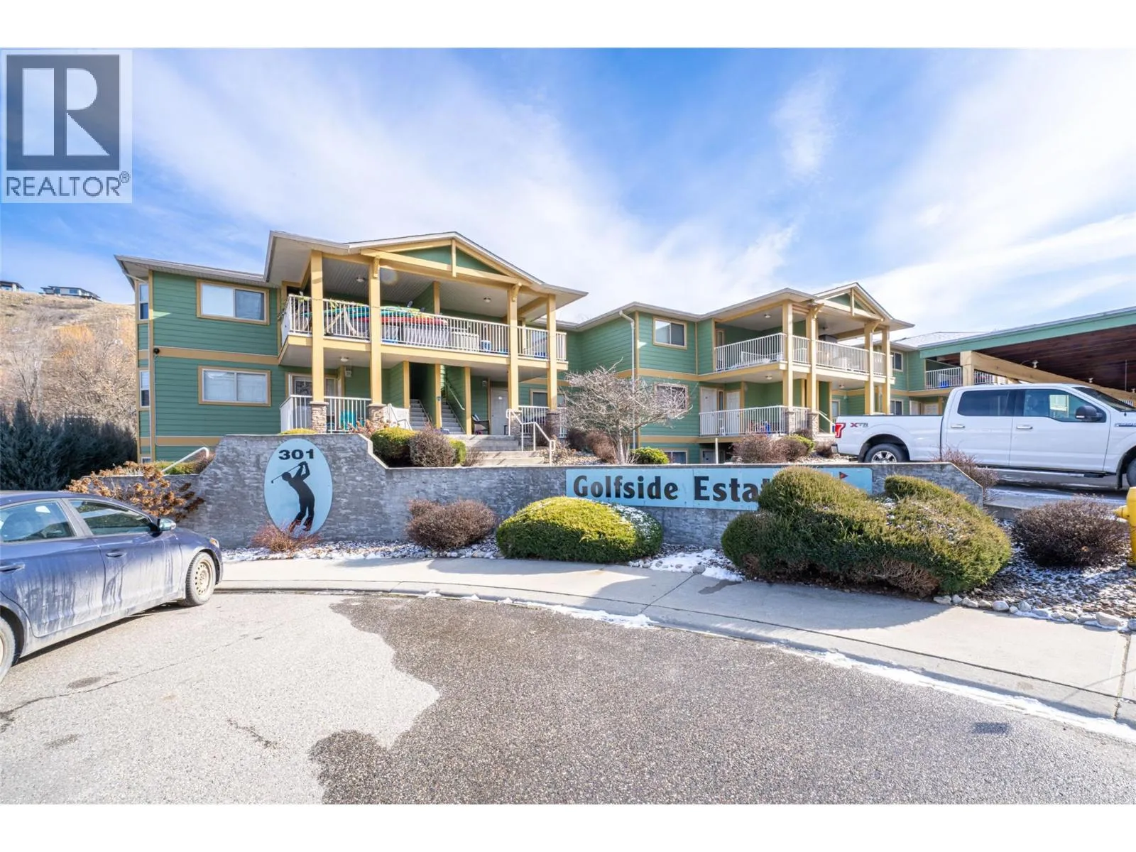 Rare find ! Don't miss out on this desirable upper floor unit. Clean, freshly painted, with lovely kitchen & bathroom updates, including; quartz countertops, tile backsplash, and new laminate floors throughout, ready to move into ! This 2 bed, 2 bath, unit is perfectly located at the end of the complex, with a private covered front deck that over looks the Vernon Golf and Country Club golf course at the front, and a private balcony that overlooks large willows, green space and Vernon Creek, at the back. This Complex is located walking distance to Kal Beach, and offers one covered Parking spot and one uncovered ( not assigned). There is no age restriction, it is the perfect place for young professionals, first time homebuyers, or active retirees who love to socialize, hike, bike , walk, swim, golf, and enjoy nature. This unit is perfect as a summer getaway in the Okanagan, or a year round amazing place to simplify and live an active life to the fullest. Minutes from the Vernon Jubilee Hospital, only 30 minutes from the Kelowna International Airport, and almost right on the Okanagan Rail Trail. Take a short-cut through the fence to Alpine Centre, it takes you to the ( world famous ) OK Rail Trail main parking lot area and Sun Country Cycle. Also minutes from Okanagan College - and a 40 minute bus ride to UBC - Okanagan. This is the diamond you have been waiting for. (id:27476)