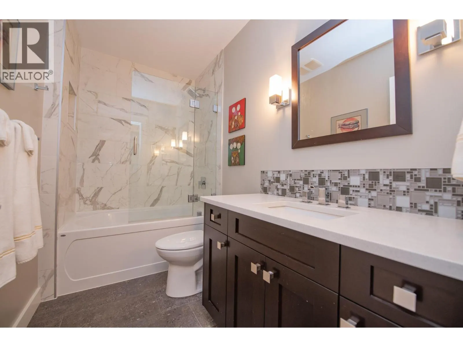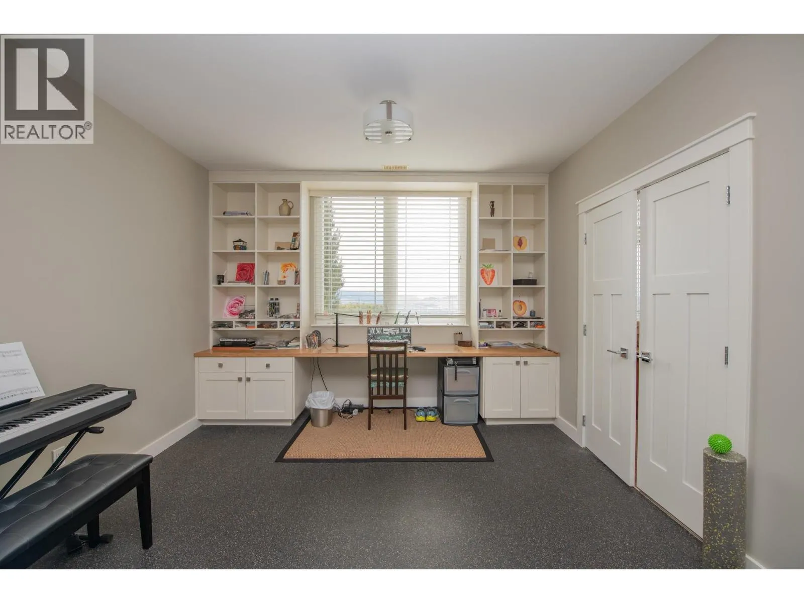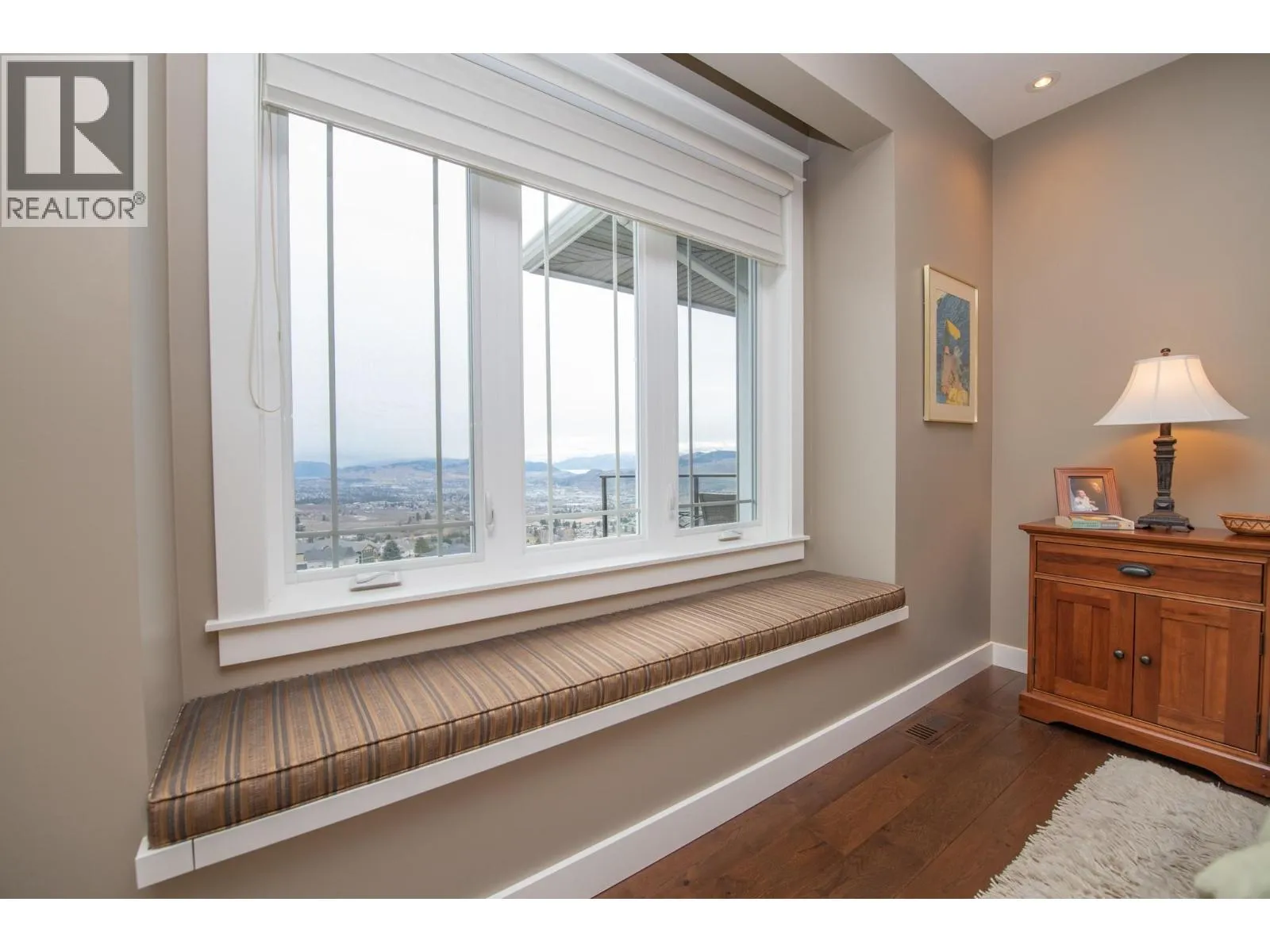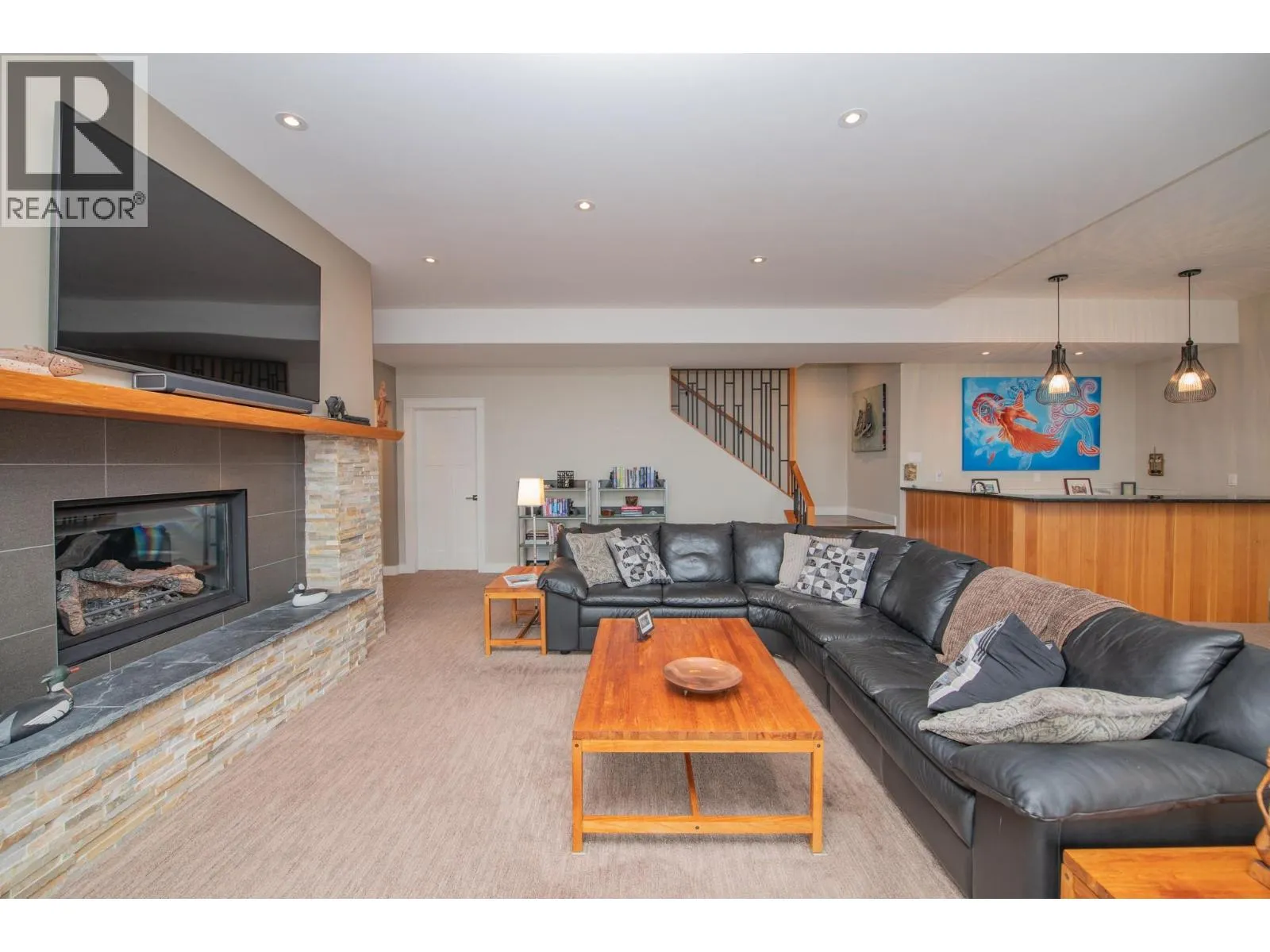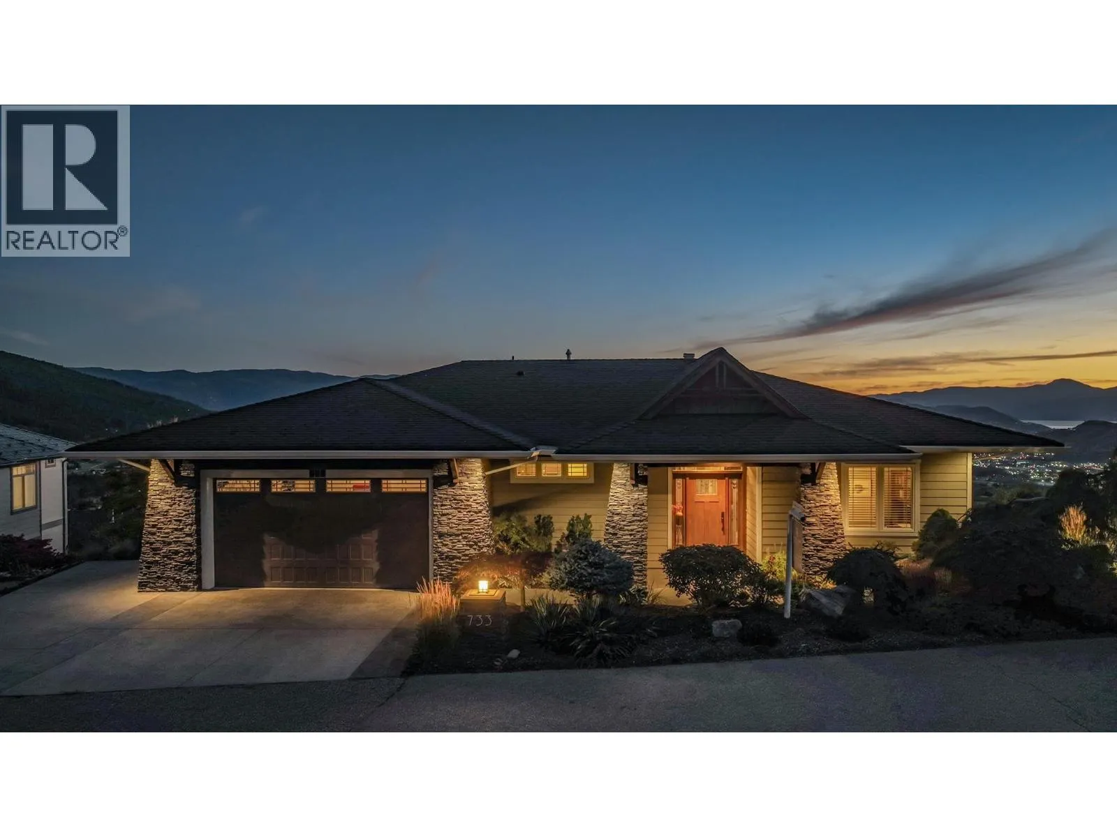 A custom-built rancher by Oakes Custom Homes, perfectly positioned to capture south-facing views of Vernonâs three lakes and Valley. Set on a private double lot of over half an acre, this home combines luxury living with custom details throughout.Inside, the open-concept design seamlessly connects the kitchen, dining, and living areasâideal for entertaining or everyday comfort. The chefâs kitchen features two-tone cabinetry, a granite island, quartz countertops, and stainless steel appliances. From both the dining and living areas there is a two way fire place and sliding doors lead to a screened-in patio with automated screens, to enjoy the stunning views. The primary suite offers a walk-in closet and spa-inspired ensuite with in-floor heating, a standalone soaker tub, double vanity, and a glass walk-in shower. Additionally youâll find a versatile office/den and a two-piece powder room.A custom steel staircase brings you to the lower level, where a cozy living room and sleek wet bar await. Two bedrooms, a full guest bath, and a flexible bonus roomâperfect as a bedroom, exercise space, or craft room. The fully landscaped grounds feature low-maintenance plants with drip irrigation, a hot tub, fire pit area, and space for a pool. RV parking, security system with flood sensors. Immaculately maintained home that showcases custom craftsmanship at every turn. Donât miss the opportunity to enjoy luxury living and unmatched views in one of Vernonâs most desirable settings. (id:27476)