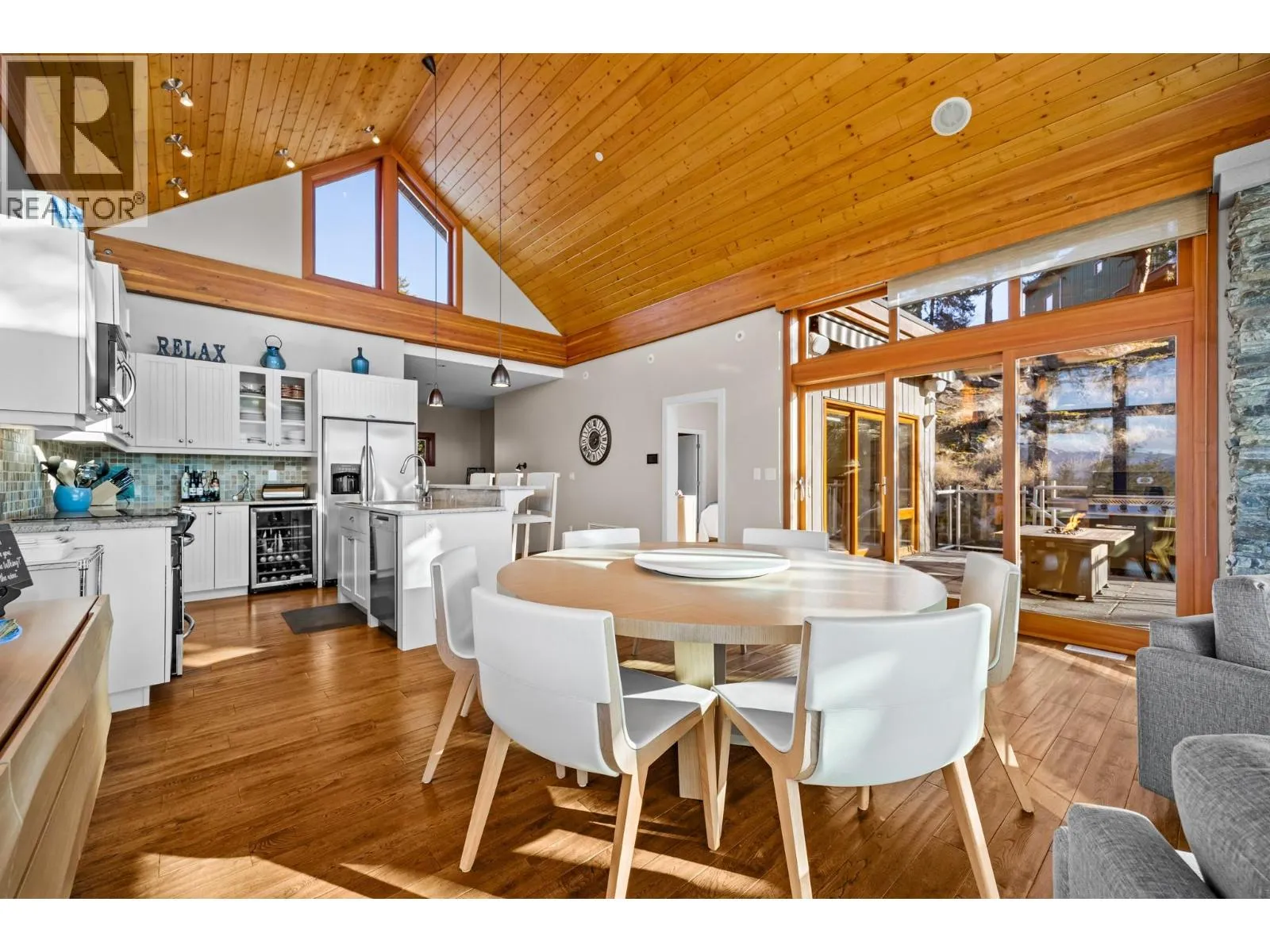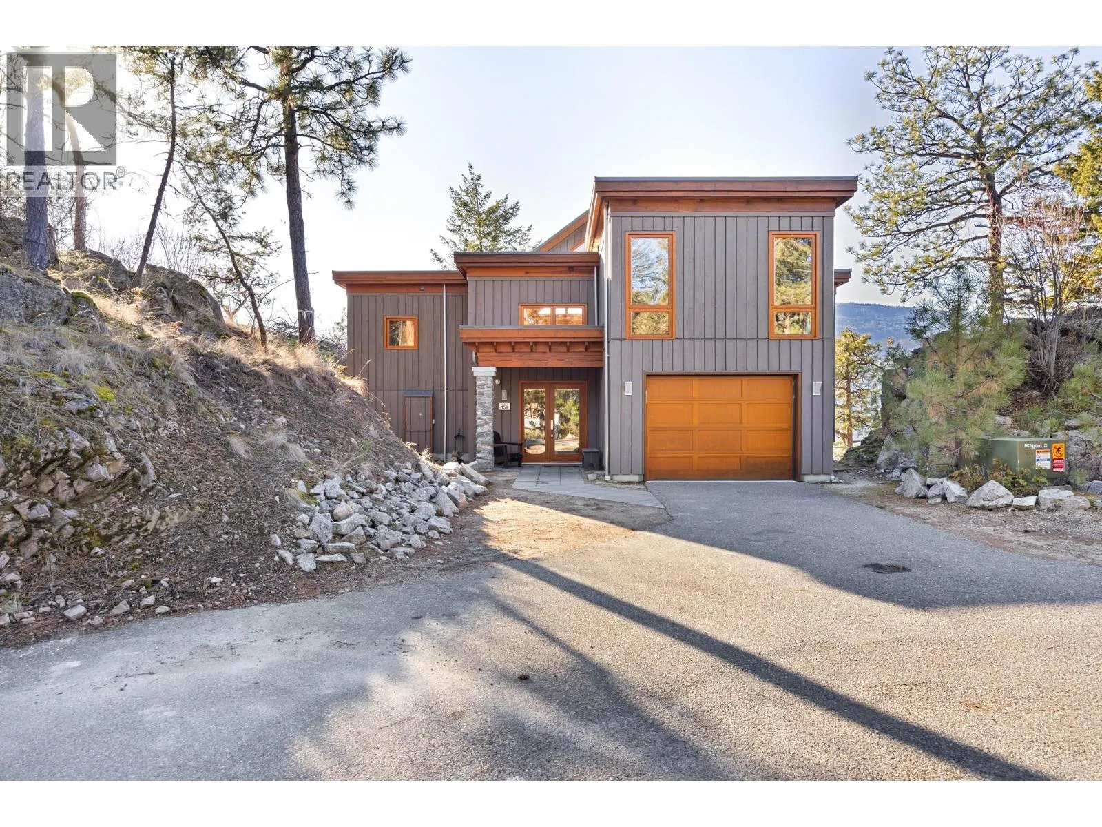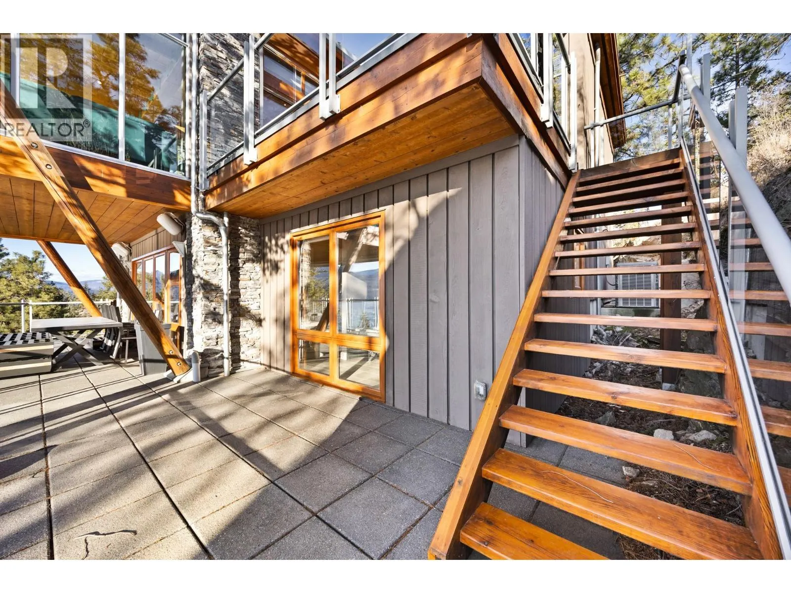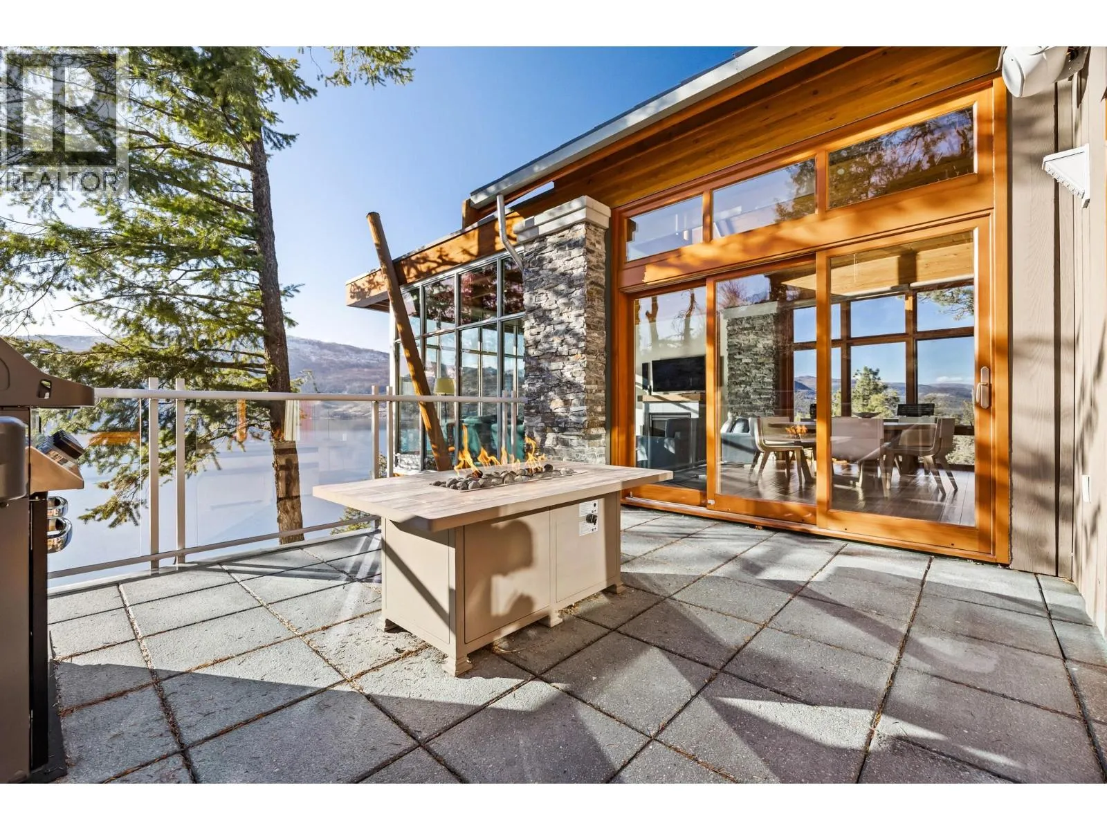 Welcome to resort-style living at The Outback on Okanagan Lake. Perched above protected woodland with sweeping lake and mountain views, this 2,800 sq.ft. executive home blends luxury, privacy, and year-round enjoyment. Designed to integrate with its natural surroundings, it features expansive panoramic windows, powered awning, lower deck sunscreen, natural wood beams, wood-lined ceilings, granite surfaces, hardwood flooring, and high-end finishes throughout. Offering 5 bedrooms, 4 full bathrooms three of which are ensuites, the layout comfortably accommodates large families and guests. Attached garage and golf cart allows for storage and easy lake access. The home is fully automated with remote control of lighting, security, cameras, heating/cooling, and sound. Two boat slips and are included â a rare and valuable offering. Residents enjoy sandy beaches, marina, two pools, four hot tubs, tennis and pickleball courts, clubhouse with full fitness centre, playground, fire pit, and a cave walkway to a second beach. The strata is exceptionally well managed with proactive oversight and year-round care. Adjacent to Ellison Provincial Park and near Sparkling Hill Resort & Spa and Predator Ridge. No GST. Turnkey lakeview living with premium marina access. Everything is taken care of, all that's left is to enjoy! (id:27476)
