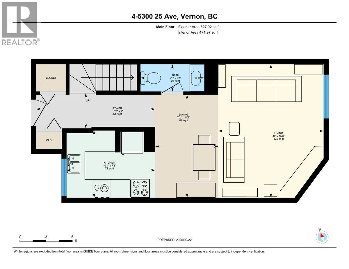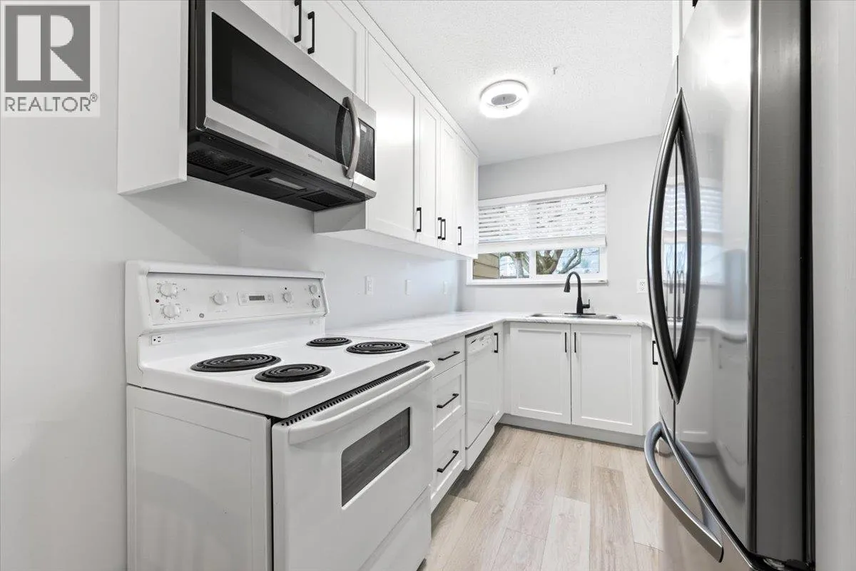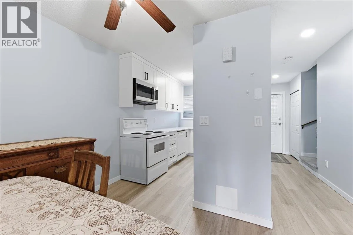 Move-in ready 2-bedroom, 1.5-bath townhome in Landing Meadows, a family-oriented complex in a prime location. Across from shopping and dining, steps to transit, schools, and parks, and just minutes to beaches and downtown Vernon. The bright main level offers grade-level entry with direct access to the courtyard and community pool. The updated kitchen features new cabinetry, modern lighting, and updated flooring, opening to a spacious living area with patio access to park-like green space â perfect for relaxing or entertaining. New vanities, upgraded plumbing fixtures, and updated electrical add a clean, modern touch. Upstairs includes two generous bedrooms, a full bathroom with replaced tub and surround, full-size laundry, and a private balcony off the primary bedroom. Recently replaced complex windows improve comfort and efficiency. $201.45 of the strata fee is the monthly payment for window replacement. Approximately 1.5 years left then fee's will be reduced by $201.45. Rental-friendly strata with no age restrictions, plus an in-ground pool and recreation court. Two common parking stalls included. Cat-friendly. Vacant May 1 with flexible possession available. (id:27476)