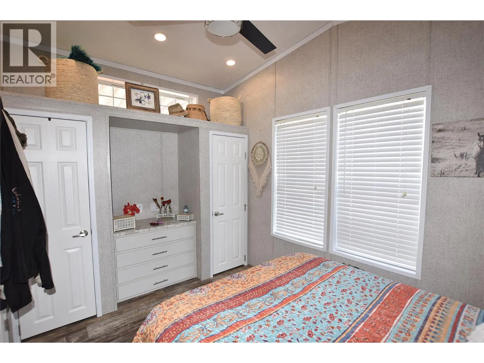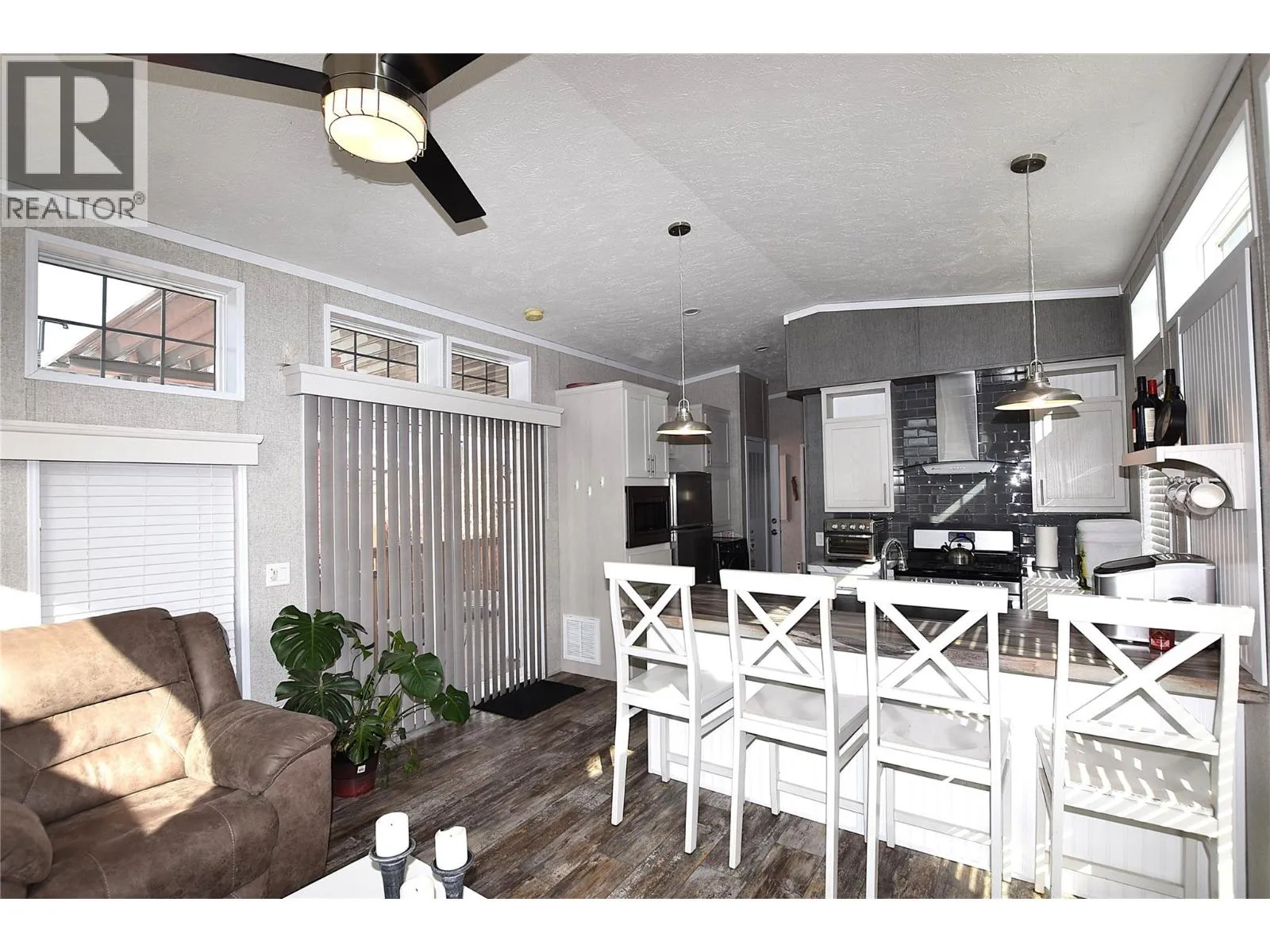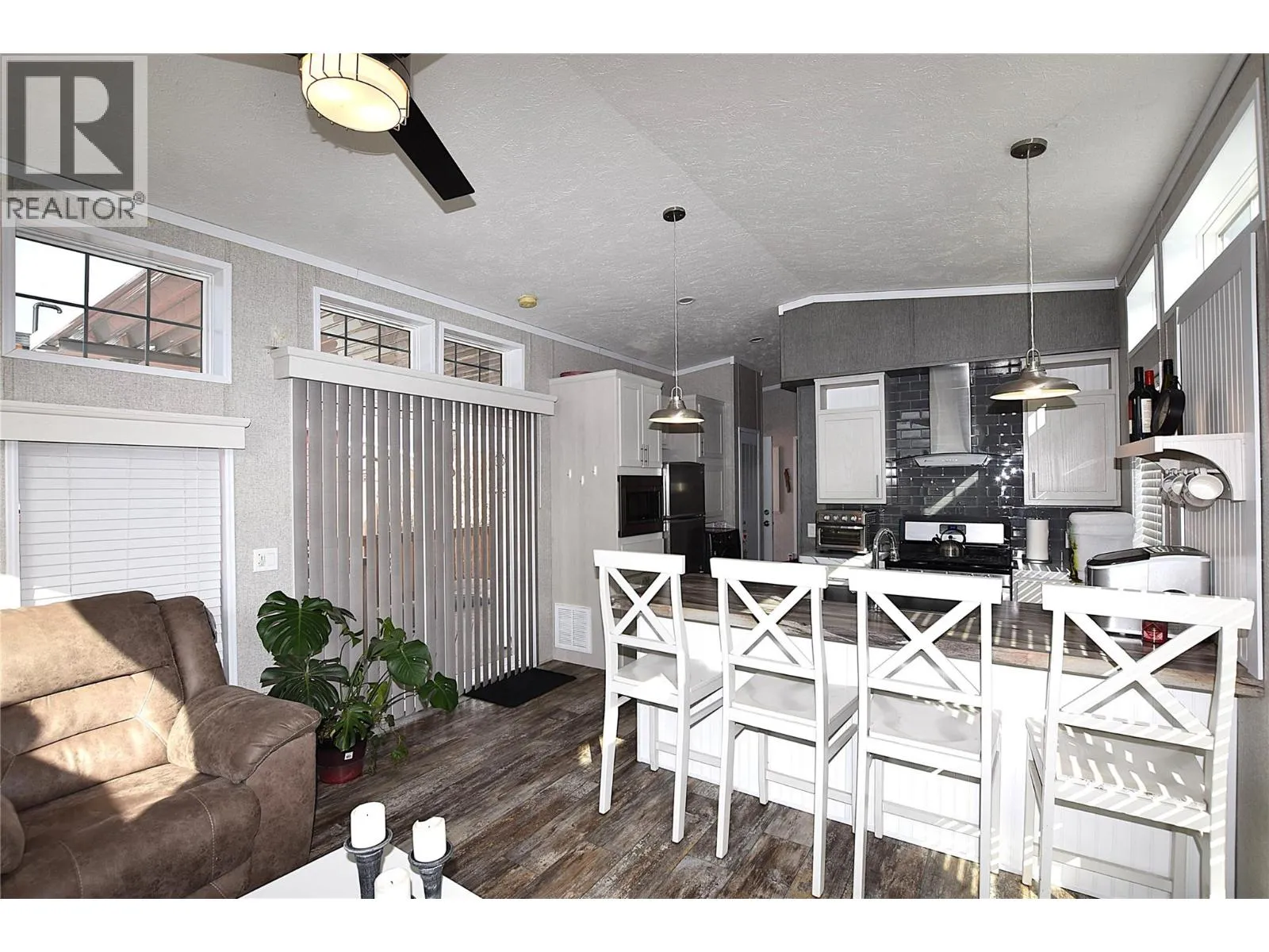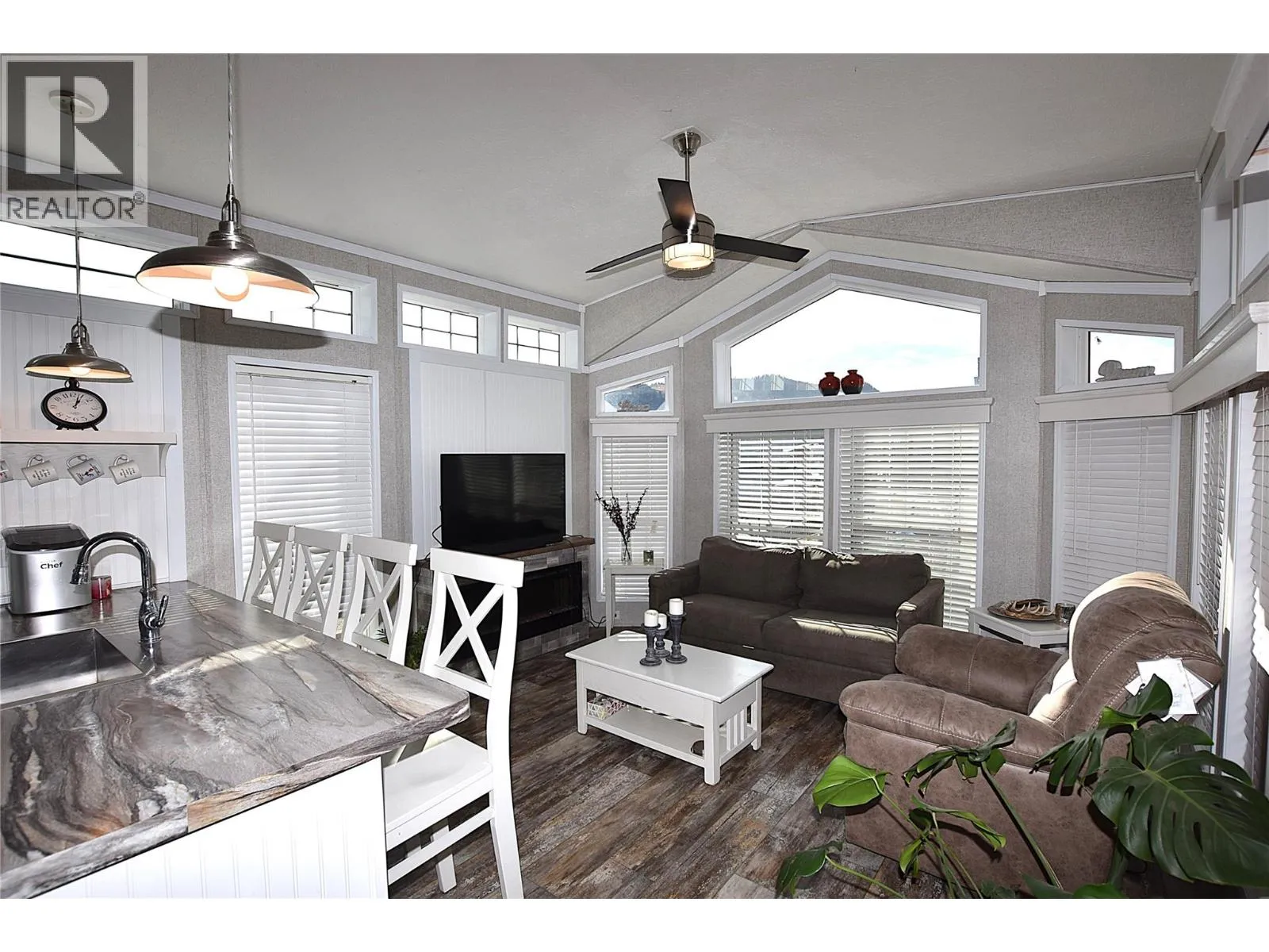 Welcome to #5â65 Antoine Road, a beautifully maintained 8-year-old Park Model home in Willow Lake Side Homes MHPâjust 10 minutes from Vernon and less than 5 minutes to the golf course. This bright and inviting home features an open-concept main living area with vaulted ceilings and an abundance of windows, filling the space with natural light. The kitchen is thoughtfully designed with a large island, farmhouse-style sink, and stainless steel appliancesâincluding a dishwasherâmaking it both stylish and functional. The living room offers a charming bay window and a cozy electric fireplace, perfect for adding warmth and ambiance on cooler evenings. The bedroom is well-appointed with two closets featuring built-in drawers, plus additional built-in storage above the bed for maximum organization. Step outside to enjoy the spacious 9' x 22' covered deckâideal for relaxing or entertaining throughout the spring, summer, and fall. The fully fenced yard provides privacy, ample gardening space, and includes a 10' x 8' shed for extra storage. Additional features include: Soft water system Carport plus two additional parking spots Access to Okanagan Lake The pad rental is an affordable $400/month and includes water, sewer, garbage, road maintenance, and lake access. An excellent condo alternative for anyone looking to enjoy affordable living in the Okanagan, close to the lake and all amenities. (id:27476)