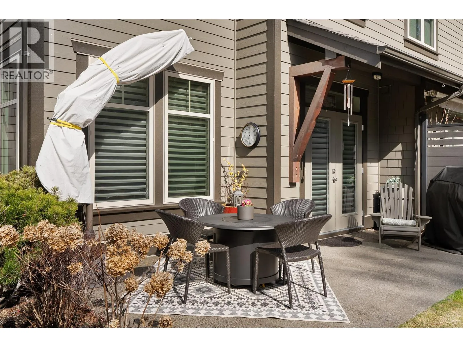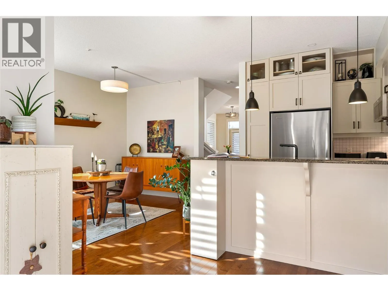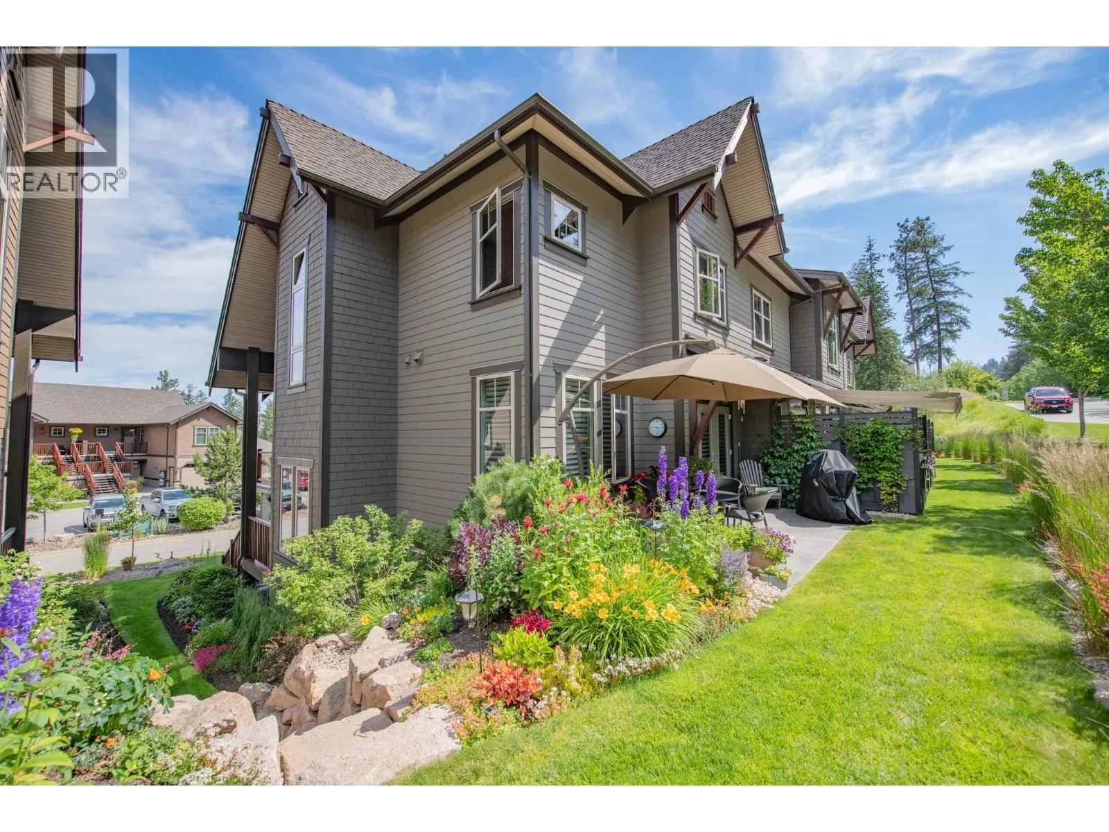 Experience the ultimate in luxury resort-style living where nature meets the back door of this beautiful three bedroom, four bath townhome within the esteemed Predator Ridge community. Lovingly updated and bathed in natural light, this residence boasts a cozy yet spacious interior, thoughtfully upgraded to exude quality and sophistication. Walk up to a spacious living room with large windows, gas fireplace, bright dining area, recently updated kitchen with new appliances, sink/faucet, elegant lighting, Hunter Douglas Silhouette blinds and Phantom screens, a cozy nook area perfect for reading, and a half bath. The upper-level leads to the primary bedroom with a private ensuite updated with new lighting and fixtures. Two additional sun-drenched bedrooms, featuring large windows and a well-appointed four piece bath. A newer washer/dryer are conveniently located between rooms. The versatile lower level has a three piece bath and a spacious bonus room, ideal to use as a family room, guest bedroom, office or home gym. Embrace outdoor living with two distinct spaces: a large upper deck offering peekaboo golf course views, and a private, beautifully landscaped back patio, perfect for al fresco dining and relaxation. A double-car garage provides ample storage. Lock and leaving knowing that your investment is cared for or live the year-round Predator Ridge lifestyle with exclusive access to world-class golf, tennis, pickleball, extensive hiking/biking trails, and a state-of-the-art pool and fitness centre. (id:27476)