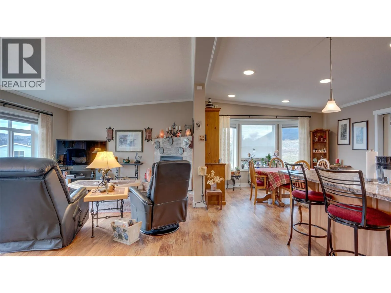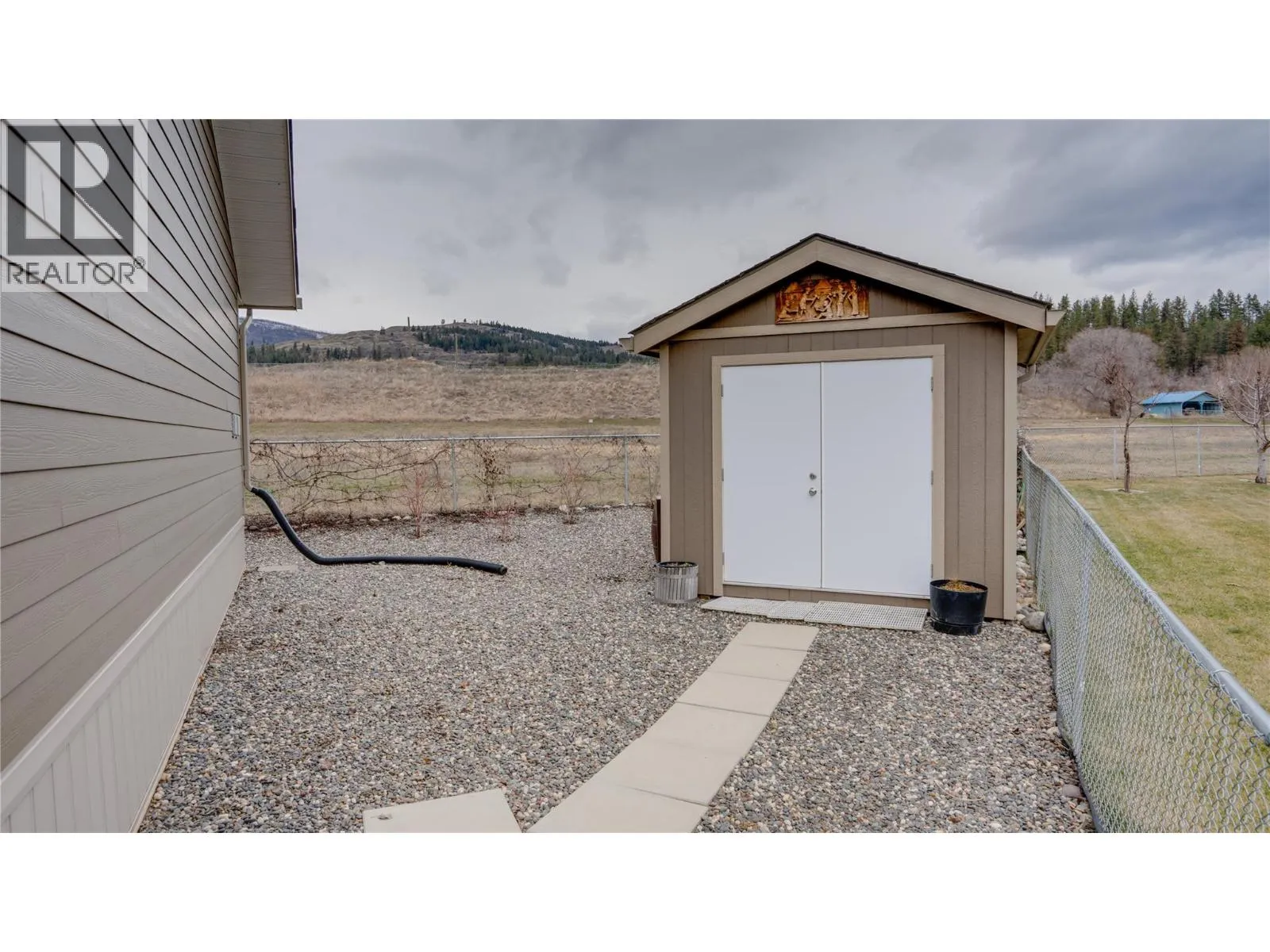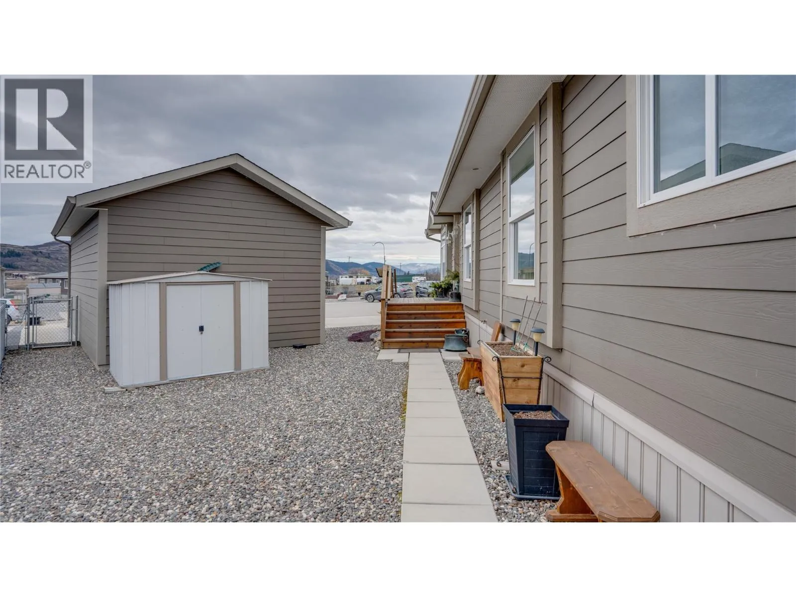 Great location! Beautiful well kept home at the end of a quiet cul-de-sac! Open plan with island kitchen, formal dining space, and bay window! Living room features large windows and a cozy gas fireplace! The kitchen has a huge island with barstools, counter cooktop, wall oven, stainless appliances, and skylights too! The primary bedroom is a generous sized with ensuite and walk-in closet! The oversized ensuite features double sinks and a full tub and shower. Bedroom 2 is perfect for guests, and there is a good sized den/office just off the kitchen. Lots of options including Crown moldings, phantom screens, pot lighting, and a covered back deck with screened in section too! Pride of ownership shines through on this one. No/low maintenance yard. Detached garage/shop with high ceilings has its own electrical panel and heater. Lots of parking for 3 or more vehicles or RV. Small gardening shed too! A wonderful set up for retirement or a good starter for a family as the den could be a third bedroom. Built in 2016 with all the bells and whistles. Neat and clean! Pet ok with restrictions. No age restriction. Best part is, it backs onto open spaces! Move-in ready! No age restrictions. 2 pets up to 25lbs. Coyote Crossing Villas is a family friendly manufactured home park! Head Lease in place until 2047. Affordable Pad fee is $500/month. (id:27476)
