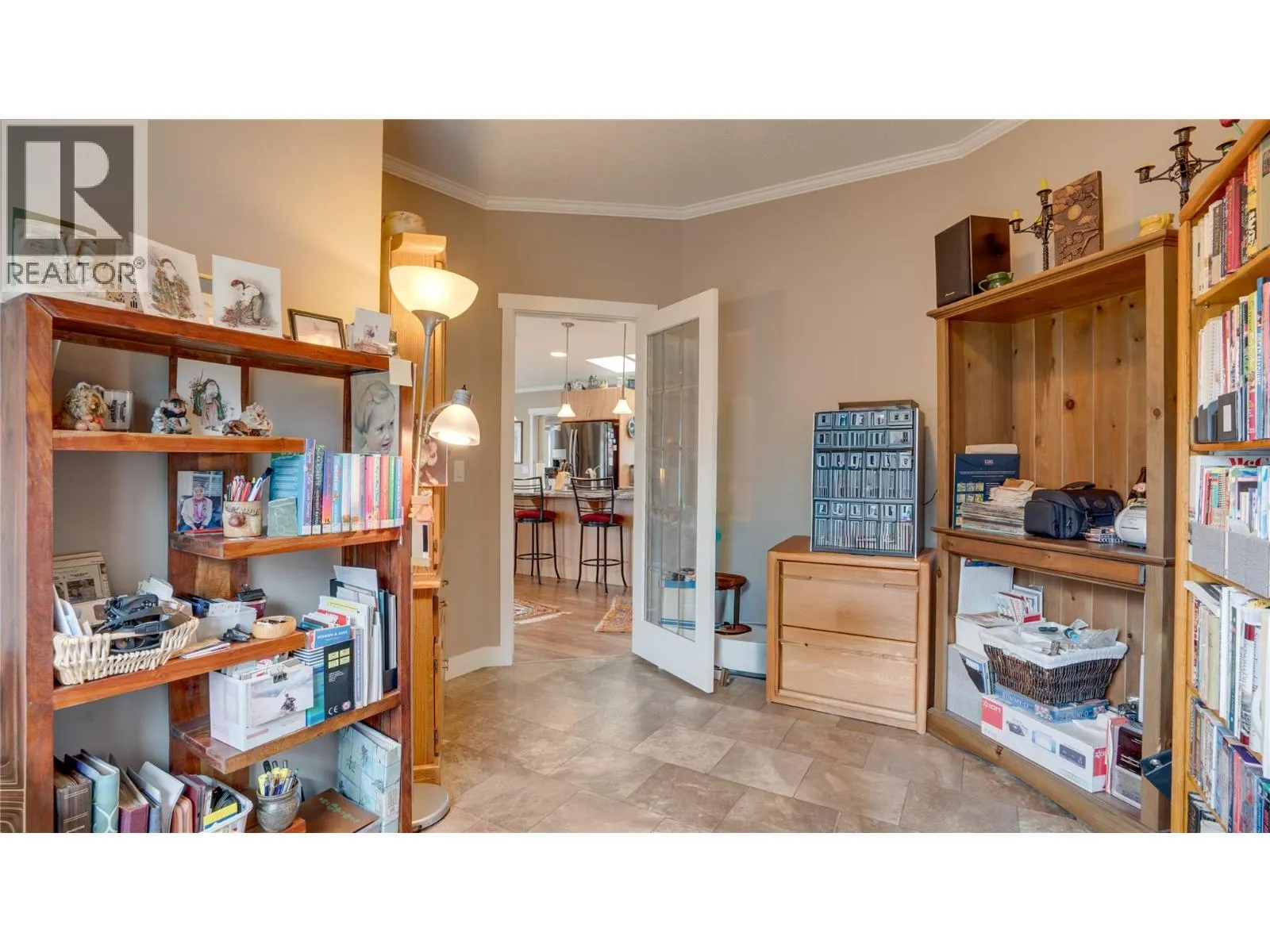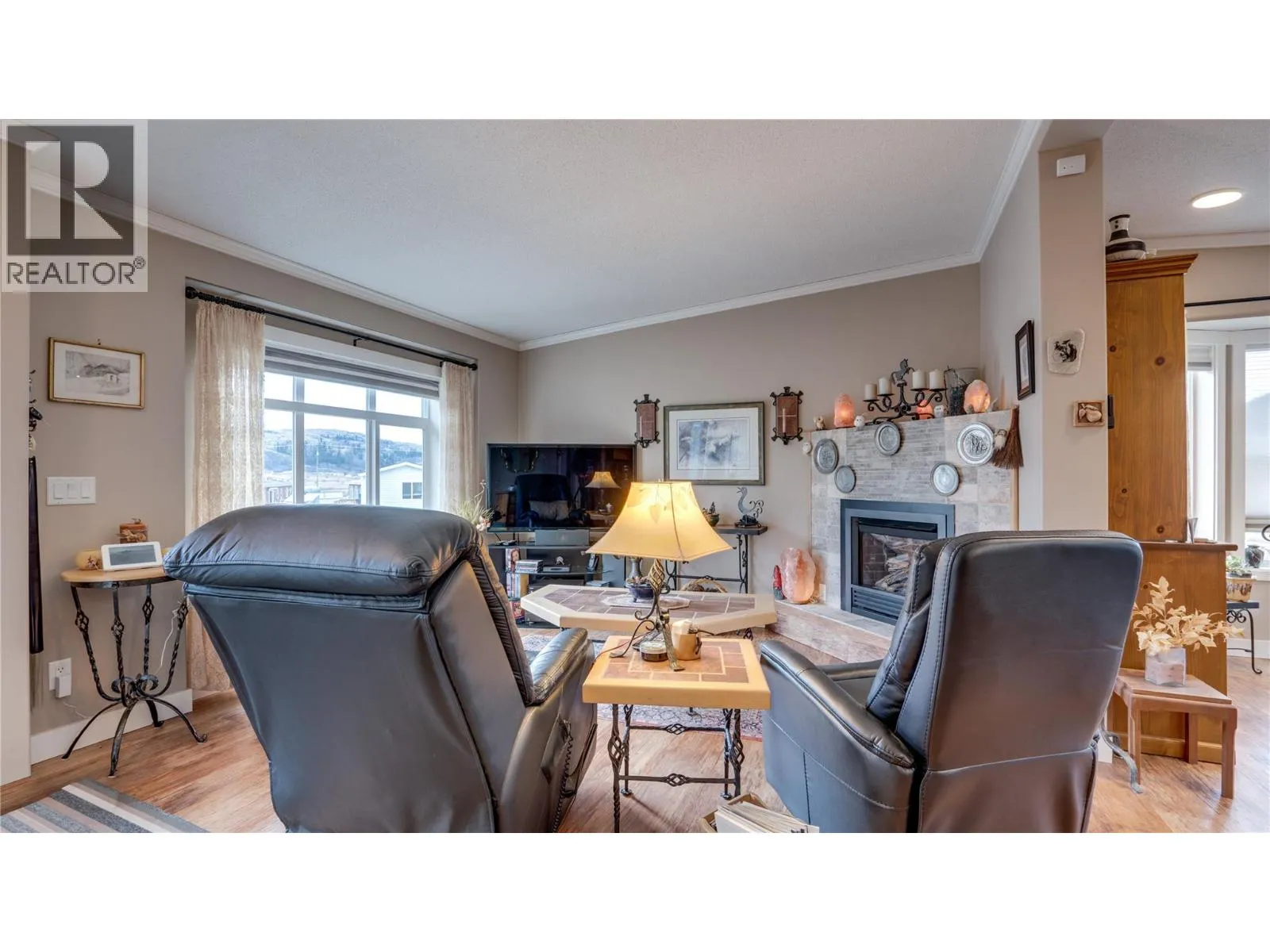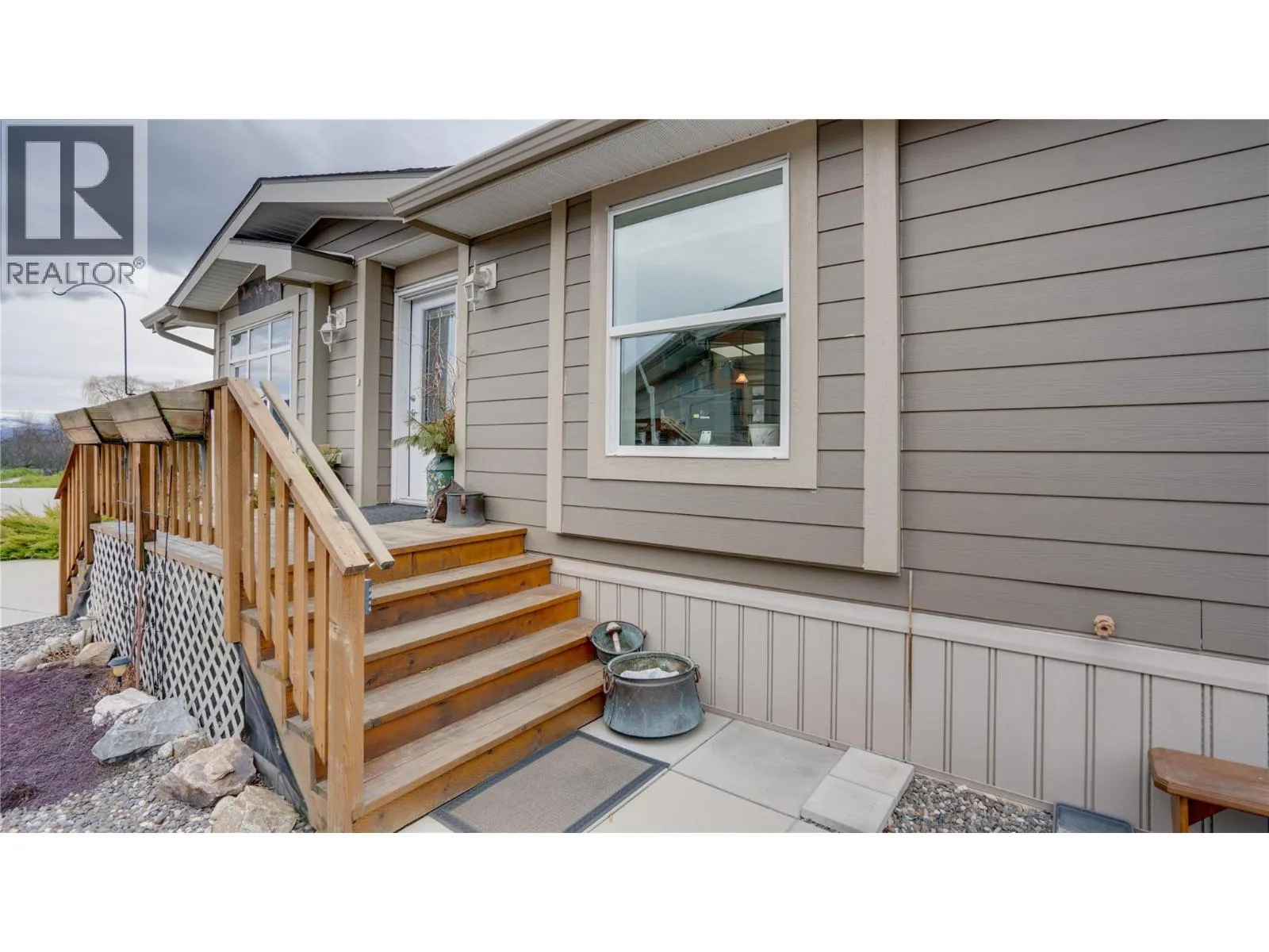 Great location! Beautiful well kept home at the end of a quiet cul-de-sac! Open plan with island kitchen, formal dining space, and bay window! Living room features large windows and a cozy gas fireplace! The kitchen has a huge island with barstools, counter cooktop, wall oven, stainless appliances, and skylights too! The primary bedroom is a generous sized with ensuite and walk-in closet! The oversized ensuite features double sinks and a full tub and shower. Bedroom 2 is perfect for guests, and there is a good sized den/office just off the kitchen. Lots of options including Crown moldings, phantom screens, pot lighting, and a covered back deck with screened in section too! Pride of ownership shines through on this one. No/low maintenance yard. Detached garage/shop with high ceilings has its own electrical panel and heater. Lots of parking for 3 or more vehicles or RV. Small gardening shed too! A wonderful set up for retirement or a good starter for a family as the den could be a third bedroom. Built in 2016 with all the bells and whistles. Neat and clean! Pet ok with restrictions. No age restriction. Best part is, it backs onto open spaces! Move-in ready! No age restrictions. 2 pets up to 25lbs. Coyote Crossing Villas is a family friendly manufactured home park! Head Lease in place until 2047. Affordable Pad fee is $500/month. (id:27476)