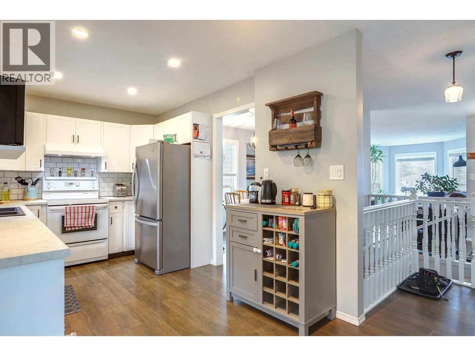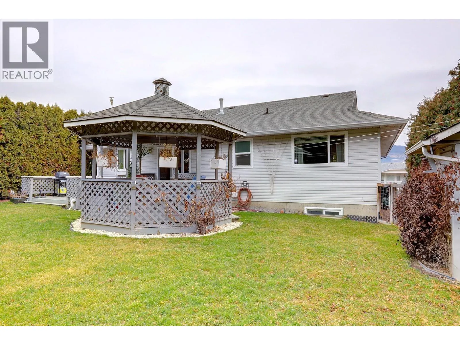 Very nice 4 bed, 3 bath, bright family home on a quiet cul-de-sac. Close to Davison Orchard and Planet Bee and just minutes to downtown Vernon or Okanagan Lake. Main floor features a functional open living space with gas fireplace, large bay windows, and formal dining area plus 3 bedrooms and 2 full bathrooms. Downstairs has a big rec room and a large 4th bedroom with half bathroom and good-sized storage room that could be another bedroom. Features a private backyard with mature cedars, cherry tree, irrigation, and awesome patio + gazebo off the kitchen area to enjoy your private yard space. Many recent upgrades including the kitchen, carpet, rock work on the front, lighting, windows and more! Double garage, 12 foot ceilings with natural gas heater and convenient mezzanine-like storage racks. Very well-maintained property and is move in ready! (id:27476)