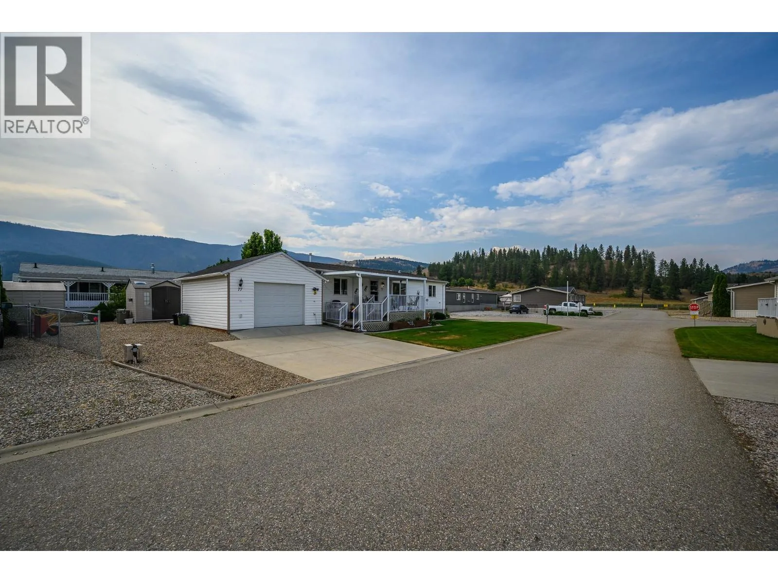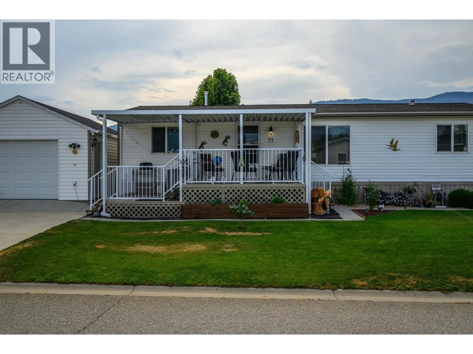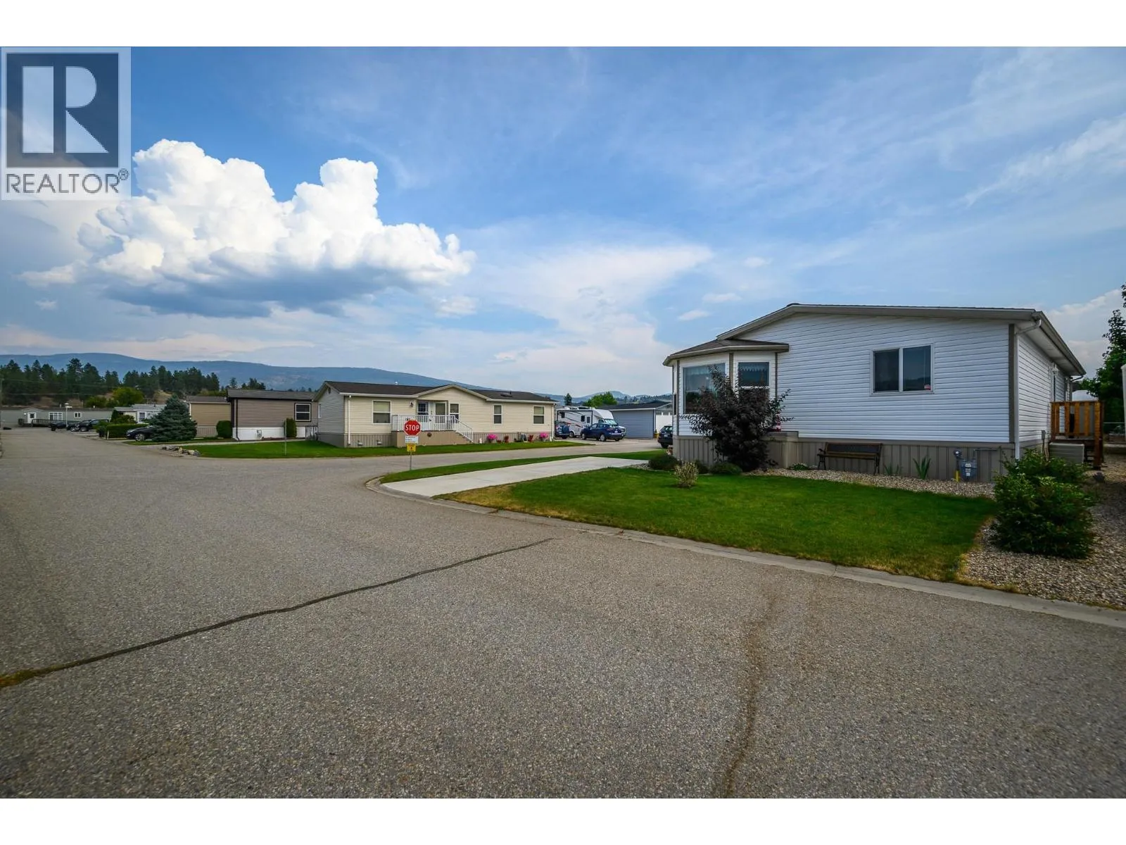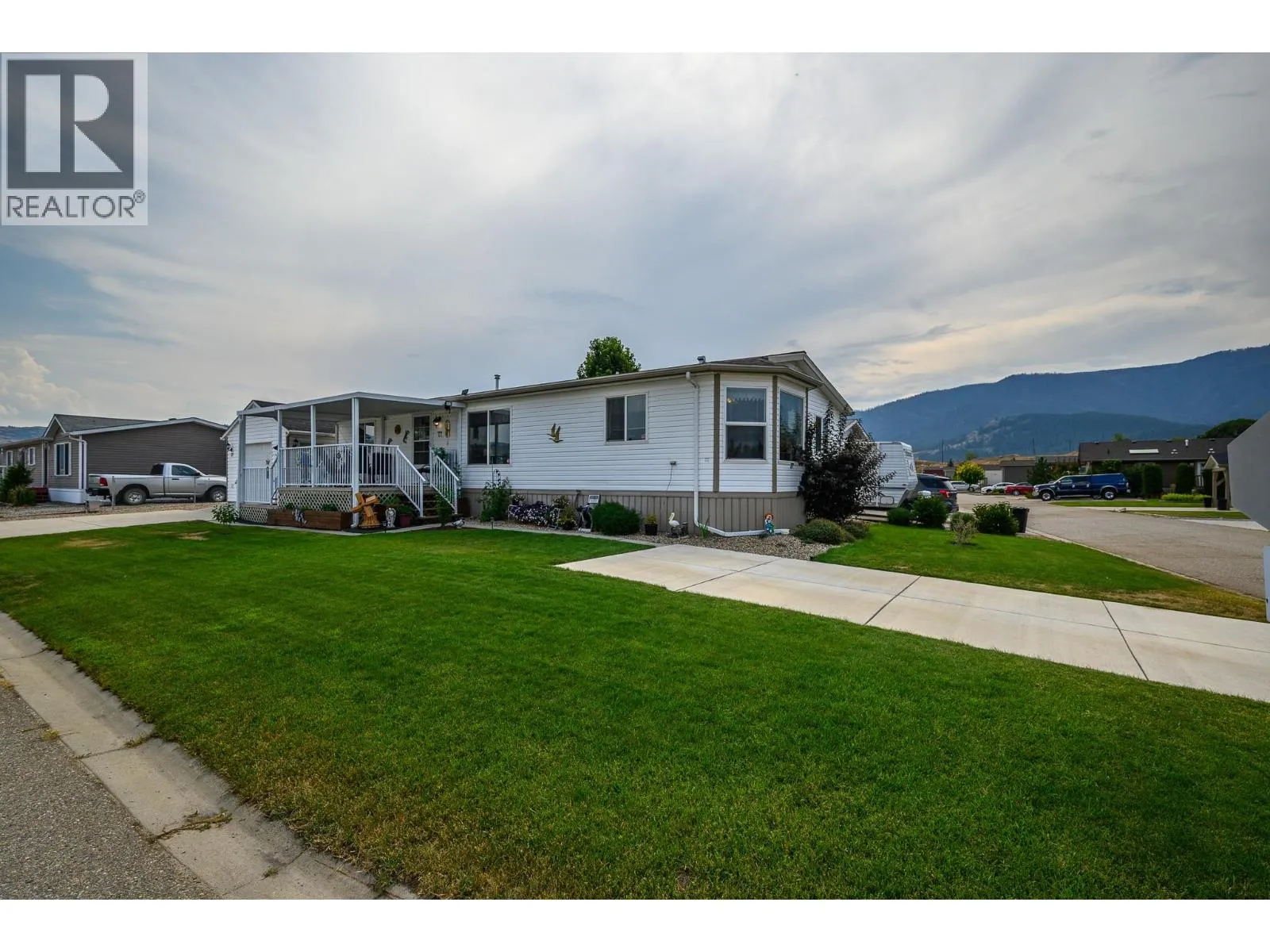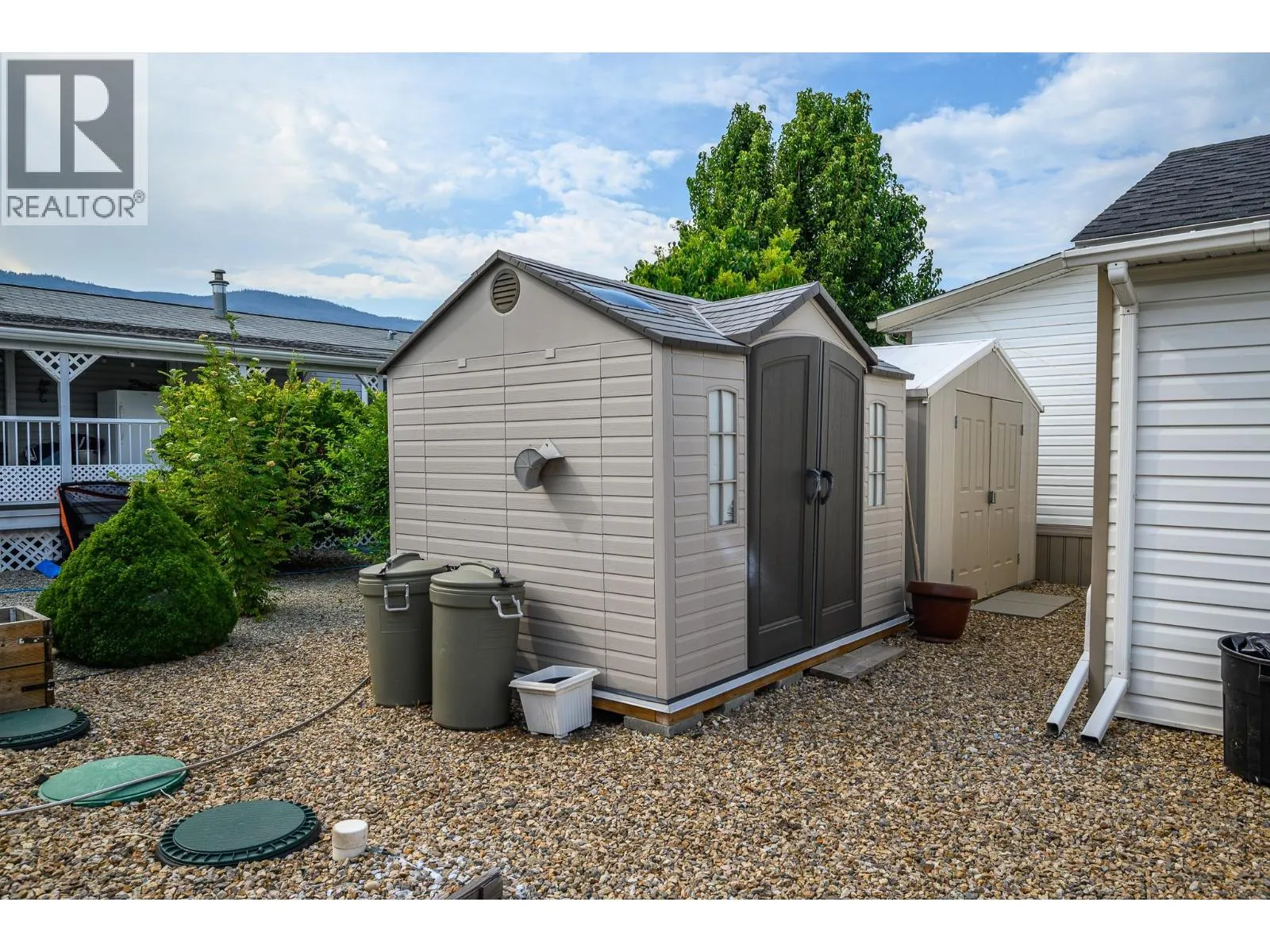 This extremely well maintained 2010 built double-wide manufactured home has a single detached garage, two paved driveways, and space for an RV or boat! This unit is nestled in the centre of the park, away from any noise from Westside Road or Highway 97. With three large bedrooms, and two full bathrooms, there is plenty of space for a family as this park has no age restrictions. The kitchen is open and bright, with lots of additional storage and a cozy dining nook that overlooks the quiet street. People watch and enjoy getting to know your neighbors in this friendly park. The master bedroom sits on one end of the home, providing privacy between you and your family members or guests. The ensuite bathroom includes a low barrier walk-in shower and nice finishes. Entertaining on the covered, multi-level deck out front is a breeze. Bring your kids or furry friends (2 pets allowed up to 25 lbs) and enjoy the low maintenance yard with a nice mix of grass and rock. In addition to the 18X20 garage with plenty of storage space, there are two large sheds with updated flooring for better support and stability. Plenty of updates have been done over the years including a newer 'York' central air conditioner, brand new hot water tank (Feb 2026), newer deck, cover, and back steps, garden beds, and newer flooring in living room plus more! Coyote Crossing is an extremely well maintained park only 10 minutes to the North End of Vernon, and 2 minutes to Spallumcheen Golf Course. Welcome home! (id:27476)