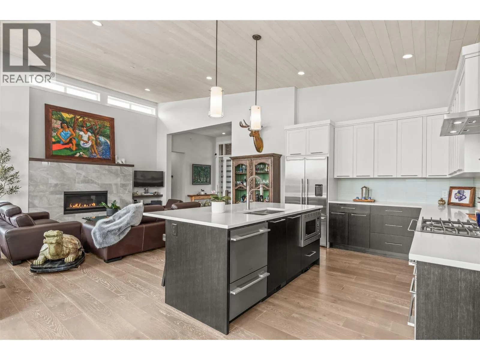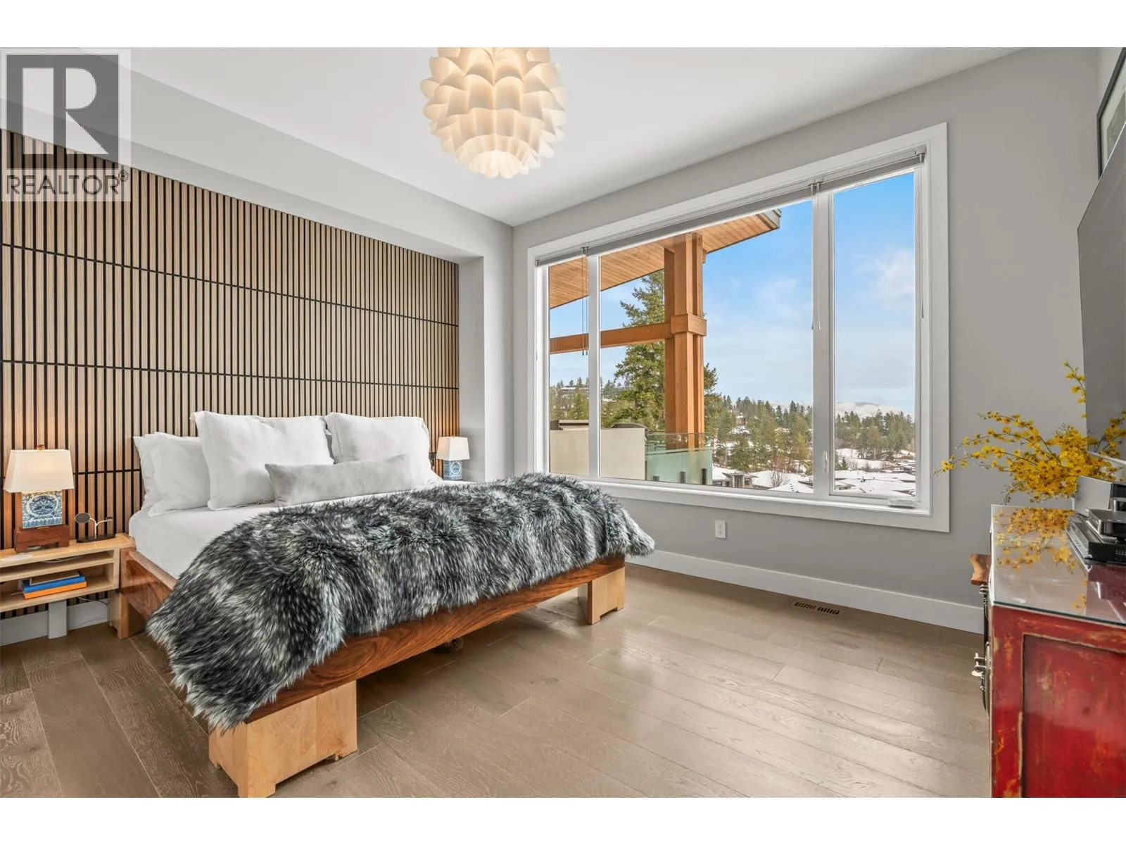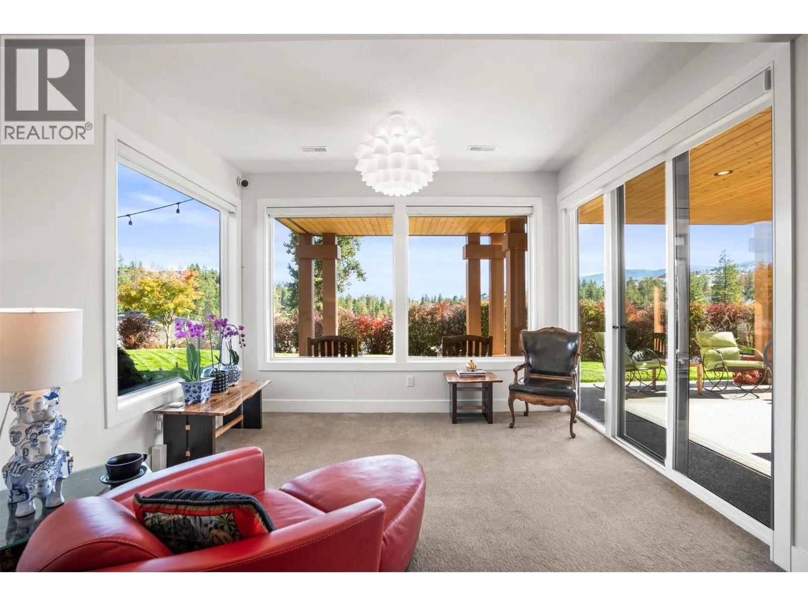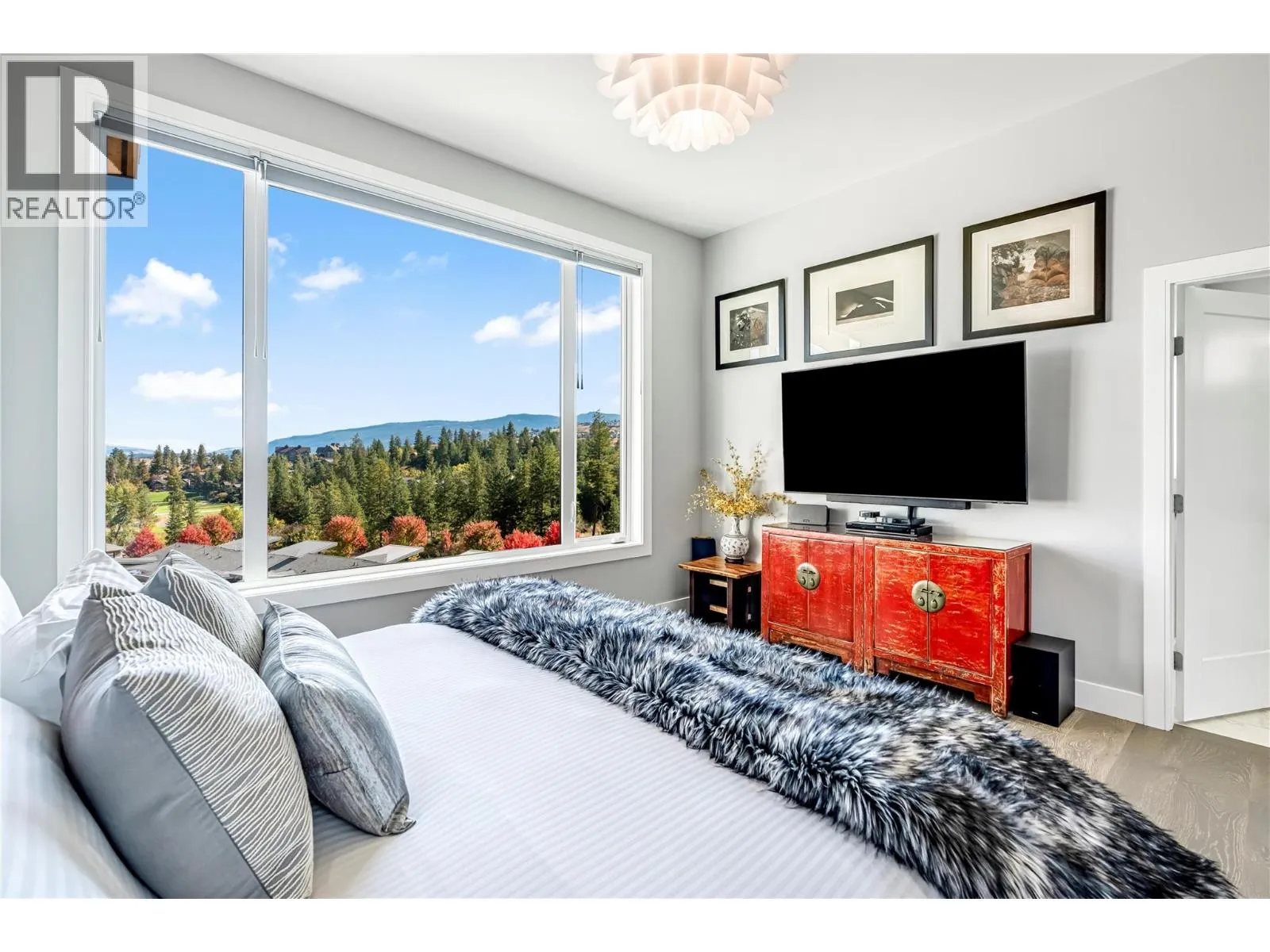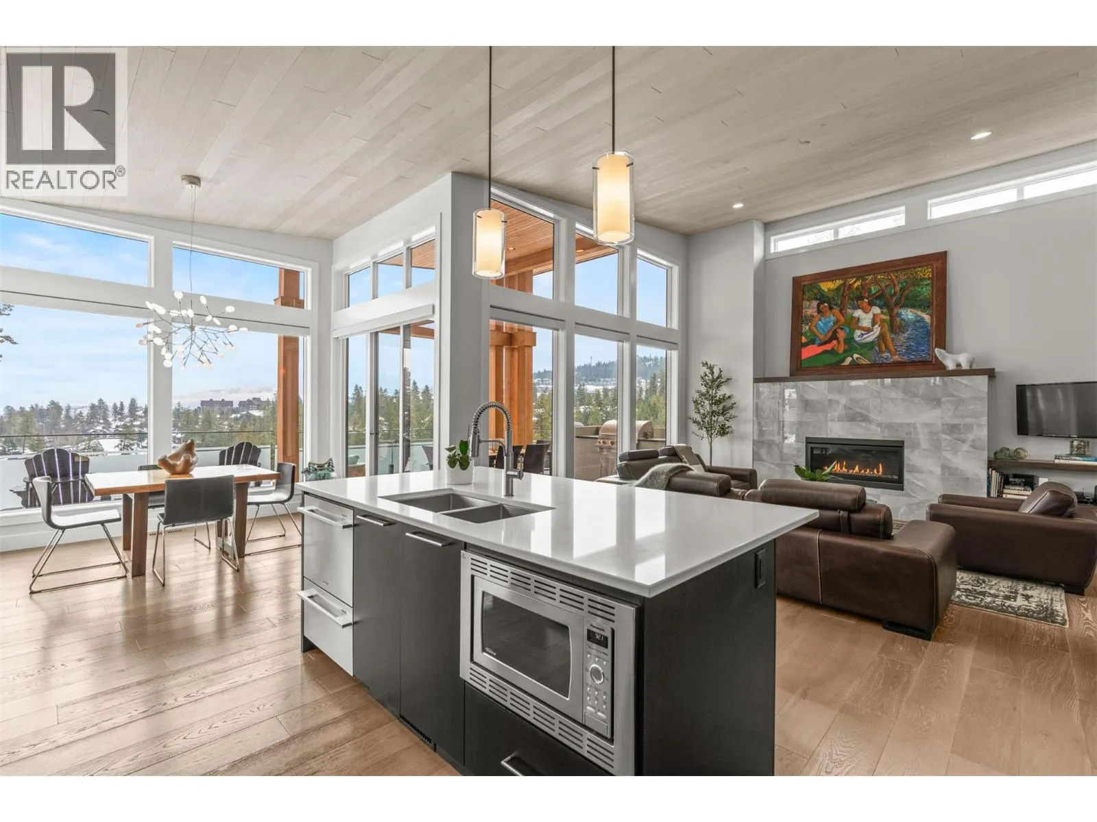 Sophisticated elegance best describes this âHouse on the Hill.â A rare private location offers breathtaking golf, mountain, and big sky views from every room in this former show home. Privately positioned on an oversized 0.32-acre lot above the golf course, this home offers a sense of space, privacy, and calm that is increasingly hard to find. Architectural drama created through 15-foot wood-covered ceilings and massive floor-to-ceiling windows produce an incredible sense of scale and light in every room upon entering. Modern designer features throughout this highly enhanced smart home. Voice, app, automated power window coverings, lights, geothermal and security cameras just to name a few. Upgrades abound. In addition, an expansive 825 sqft sun deck equipped with both built-in BBQ and pizza oven makes this a premier spot for entertaining. The walk-out lower level offers an additional spacious great room, 3 bedrooms, bathroom, gym, storage/wine room and direct access to the private serene backyard featuring a fire pit retreat. Predator Ridge offers a true resort lifestyle with golf, fitness centre, tennis, pickleball, pool and extensive trails, with landscaping included in the monthly community fee of $250. No Strata. A detailed list of seller upgrades is available, highlighting enhancements that add exceptional value. PREDATOR RIDGE EXEMPT FROM BC SPECULATION & VACANCY TAX. (id:27476)