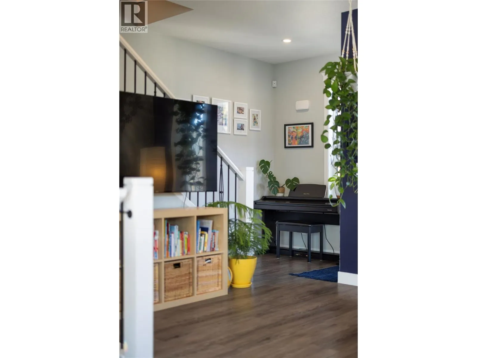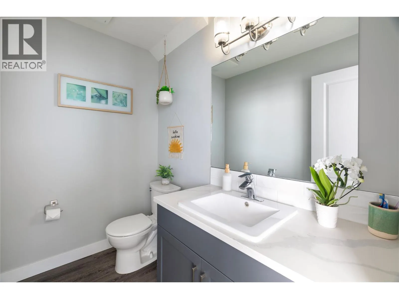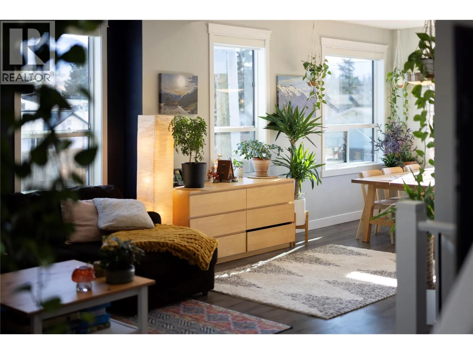 Modern corner unit townhome in the Heart of Harwood - Step into modern living with this beautifully designed three-bedroom townhouse located in the heart of Harwood. Combining contemporary style with in-town convenience, this home offers an excellent opportunity for those seeking low-maintenance, turn-key living, and a short walk to Harwood elementary school. The ground level features the front entry, and a tandem garage with the front portion offering flexibility for a second vehicle, a gym, storage, or hobby space. Upstairs, the main living area is bright and welcoming, filled with natural light and finished with luxury vinyl plank flooring throughout. The modern kitchen showcases sleek quartz countertops, stylish cabinetry, and a breakfast bar, perfect for casual dining or entertaining. The open-concept design flows seamlessly into the living area, with access to a covered balconyâan ideal spot to relax and enjoy the outdoors. The top floor provides privacy with all three bedrooms located on this level. The spacious main bedroom suite features a walk-in closet, and a beautiful ensuite with dual vanities, and a walk-in shower. Two additional bedrooms, a full bathroom, and convenient upper-level laundry complete the layout. A fantastic opportunity to enjoy modern townhouse living in one of Vernonâs most convenient neighbourhoods, close to shopping, schools, parks, and everyday amenities. (id:27476)
