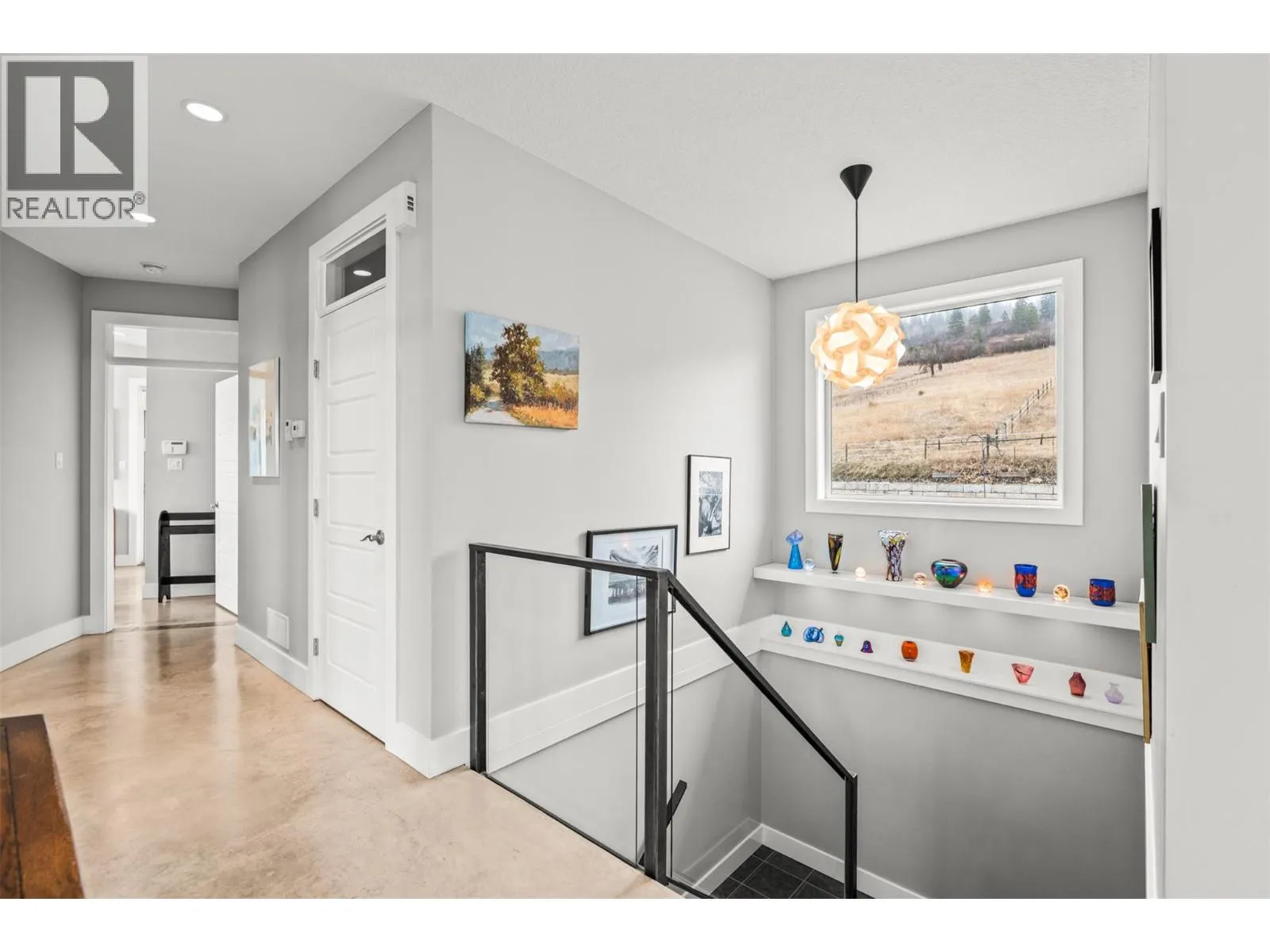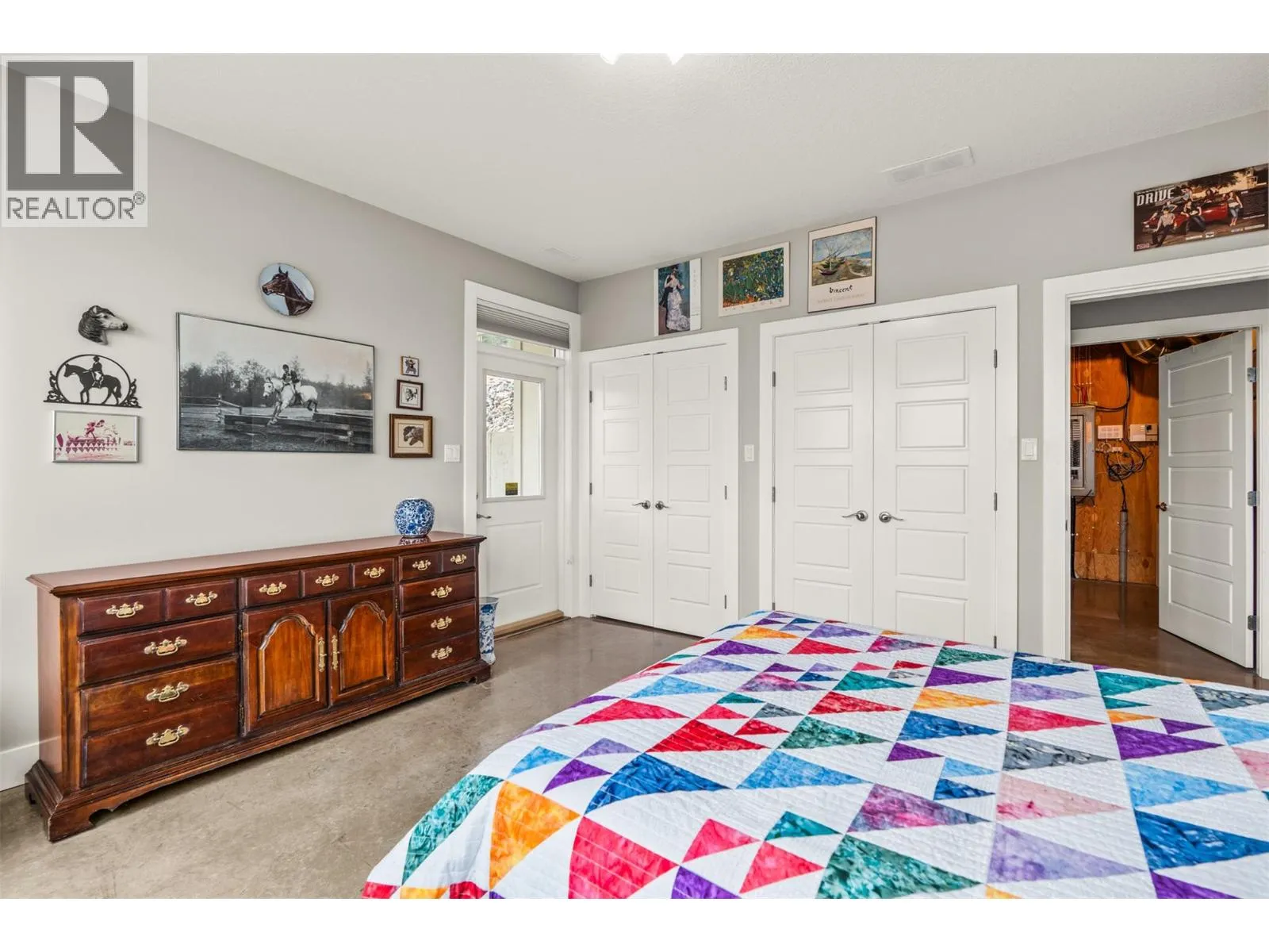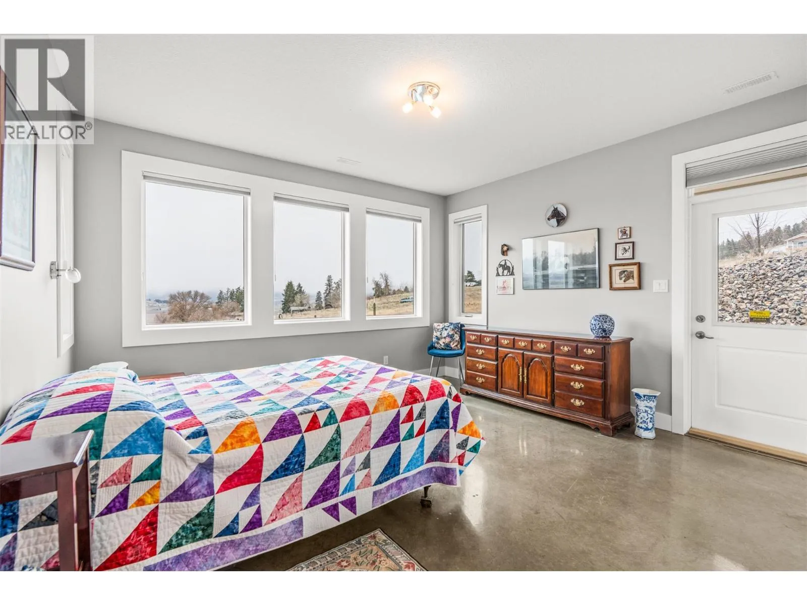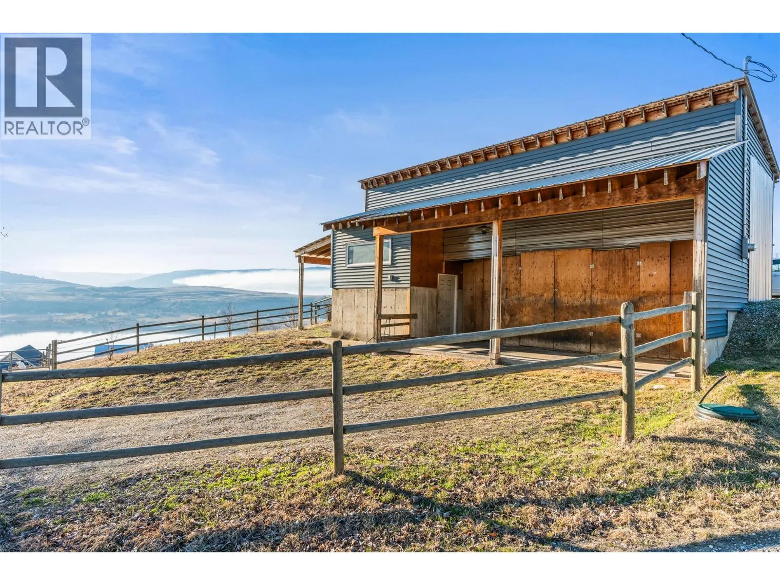 Set on over 5 private hillside acres in North BX, this custom-built 2012 rancher with walk-out basement captures sweeping views over Swan Lake and the city below, with sunsets that become part of the daily rhythm. Thoughtfully designed to maximize natural light and scenery to frame the landscape while in-floor heating on both levels ensures year-round comfort. The main level features marble kitchen countertops, motorized skylights, and seamless access to decks and patios, with five outdoor living spaces creating effortless indoor-outdoor flow. The primary suite offers a private patio, walk-in closet, and a spa-inspired ensuite with deep soaker tub and multi-head shower. Downstairs, bedrooms open directly outdoors, while a granite wet bar offers excellent entertaining space and easy potential for a one-bedroom suite. Generous storage connects to the oversized double garage. Durable finished-concrete style floors and Hardie board siding provide long-lasting, low-maintenance living. The fenced acreage is set up for horses or animals and backs directly onto the renowned Grey Canal Trail. A detached barn/workshop with separate water and power meters adds flexibility. Municipal water provides peace of mind (no water well concerns), Plus, enjoy a thriving garden with two varieties of plums and sour cherries, along with numerous different berry plants, hazelnuts, and wild asparagus. Located in the desirable BX Elementary and Vernon Secondary catchments, with no applicable vacancy tax (id:27476)