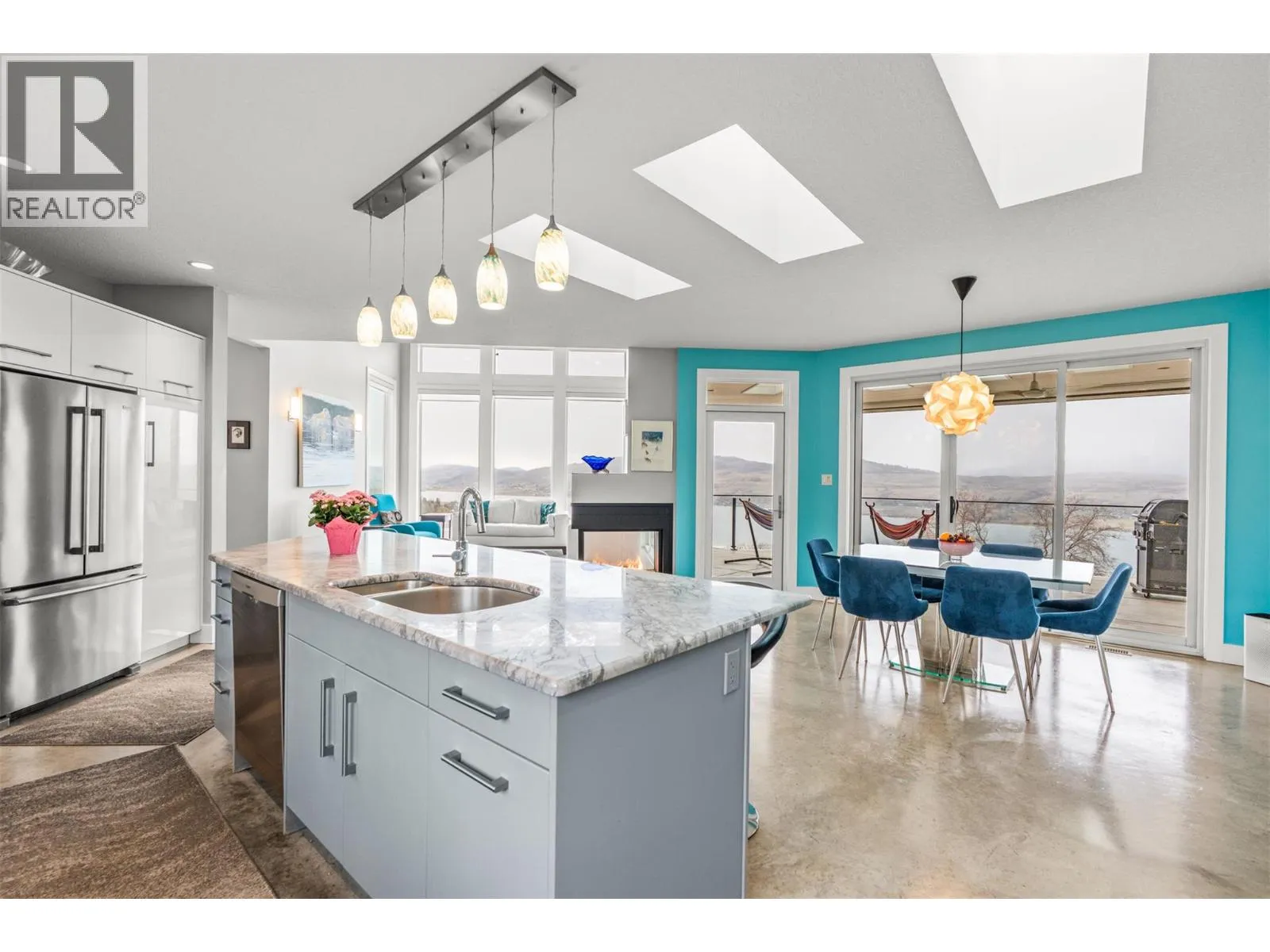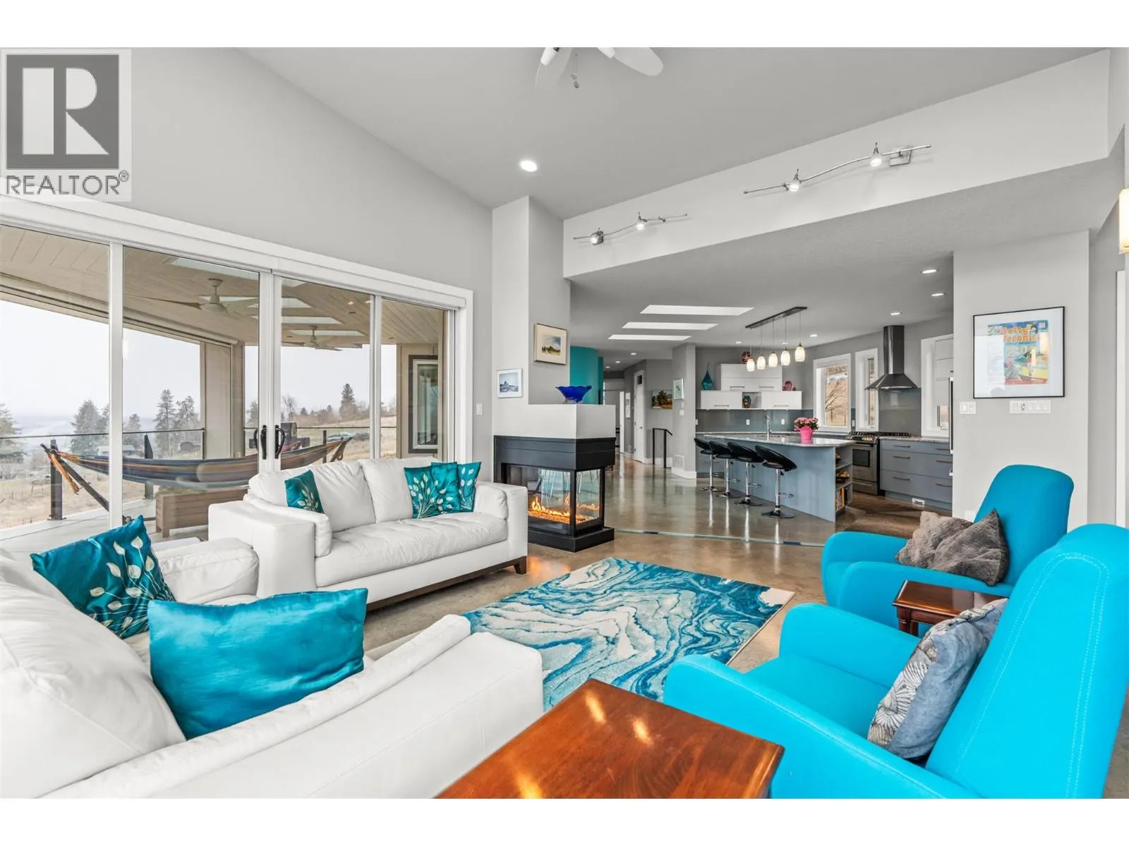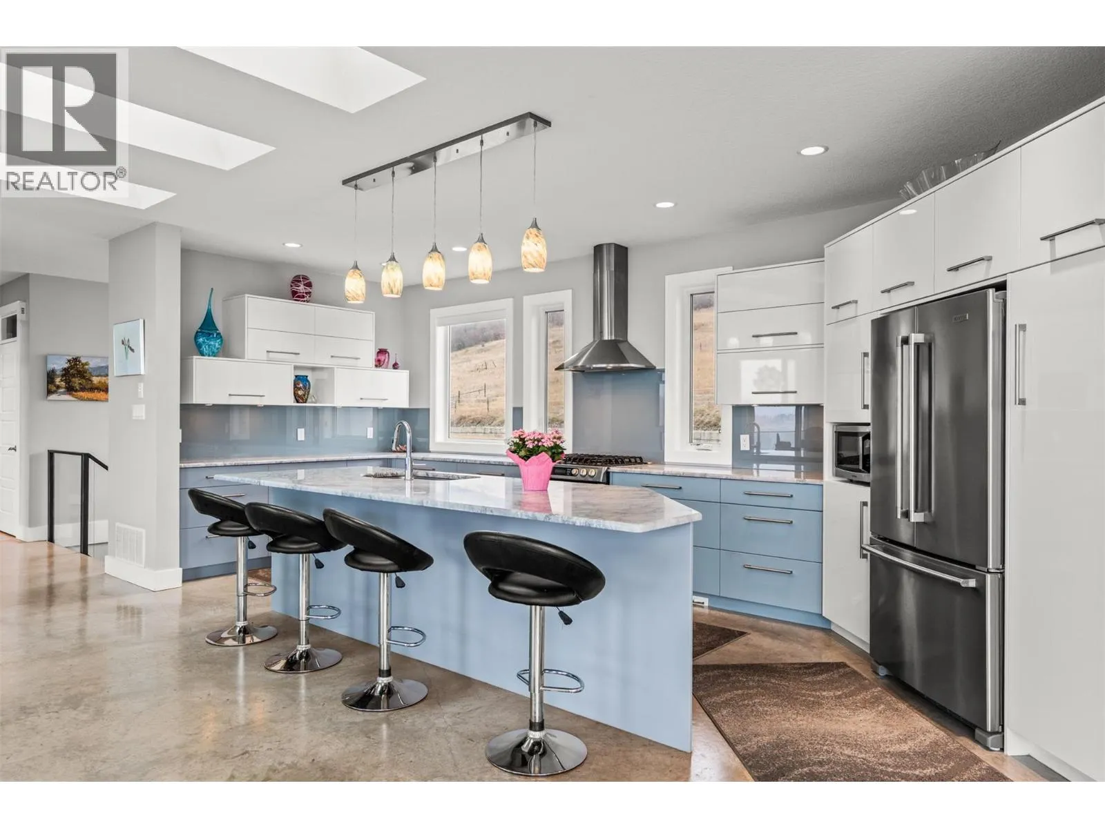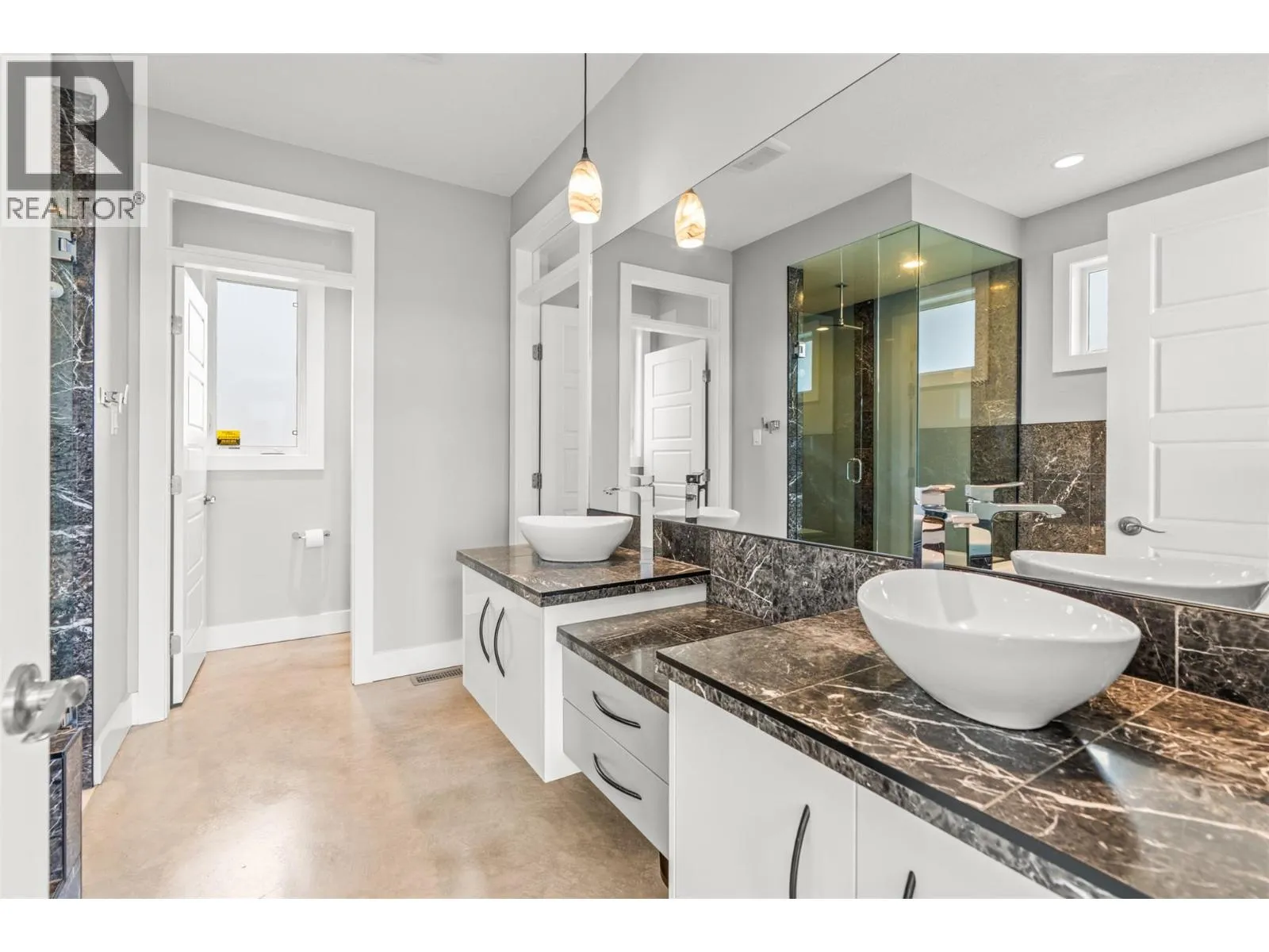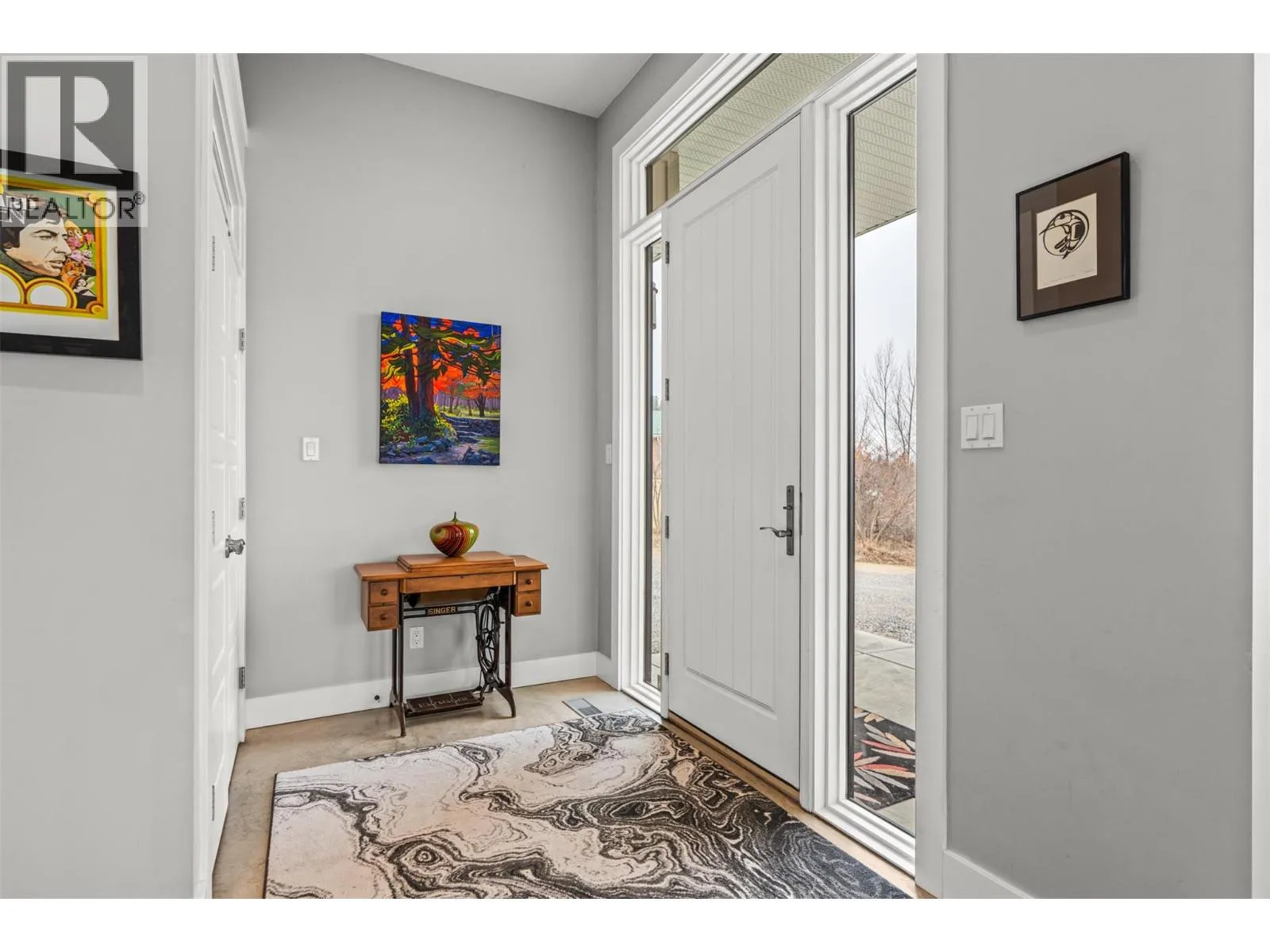 Set on over 5 private hillside acres in North BX, this custom-built 2012 rancher with walk-out basement captures sweeping views over Swan Lake and the city below, with sunsets that become part of the daily rhythm. Thoughtfully designed to maximize natural light and scenery to frame the landscape while in-floor heating on both levels ensures year-round comfort. The main level features marble kitchen countertops, motorized skylights, and seamless access to decks and patios, with five outdoor living spaces creating effortless indoor-outdoor flow. The primary suite offers a private patio, walk-in closet, and a spa-inspired ensuite with deep soaker tub and multi-head shower. Downstairs, bedrooms open directly outdoors, while a granite wet bar offers excellent entertaining space and easy potential for a one-bedroom suite. Generous storage connects to the oversized double garage. Durable finished-concrete style floors and Hardie board siding provide long-lasting, low-maintenance living. The fenced acreage is set up for horses or animals and backs directly onto the renowned Grey Canal Trail. A detached barn/workshop with separate water and power meters adds flexibility. Municipal water provides peace of mind (no water well concerns), Plus, enjoy a thriving garden with two varieties of plums and sour cherries, along with numerous different berry plants, hazelnuts, and wild asparagus. Located in the desirable BX Elementary and Vernon Secondary catchments, with no applicable vacancy tax (id:27476)