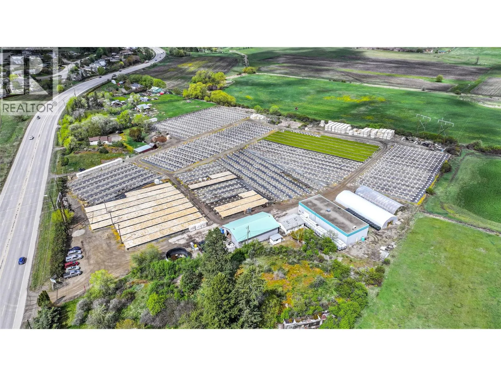 Amazing potential for income production and growth! Perfect for a fruit producer that needs a cold storage facility and a great high exposure easily accessible highway 6 location. This farm is located on 8.24 acres of gently sloped, to flat, ALR land just past Hillview Golf course at the eastern boundary of the City of Vernon. The current lease with PRT Nurseries has just expired and the commercial facility will be vacant at the end of March 2026. The residential home is tenant occupied and rents for $2,000 per month. Residential Tenancy Act. The Commercial Buildings for the Nursery Business, include an office, a cold storage facility, and other storage buildings. PRT (Pacific Regeneration Technologies Inc.)a forest seedling nursery, had leased the land and buildings since 2005 and has now terminated their lease. This is the perfect opportunity for another entrepreneurial agricultural business to flourish in this location. The Commercial buildings alone are valued at over 1 million dollars. 40x100, 40x64, 24x32 commercial buildings, a nicely maintained 1960's rancher home home with basement, detached garage, and swimming pool on 8.24 acres of fertile Coldstream Valley bottom farmland. Don't miss out on this great opportunity - This property also has farm status ( hence low BC Assessment & taxes) agricultural farm water allocation, and a south west facing aspect, making it perfect for very fertile growth. (id:27476)