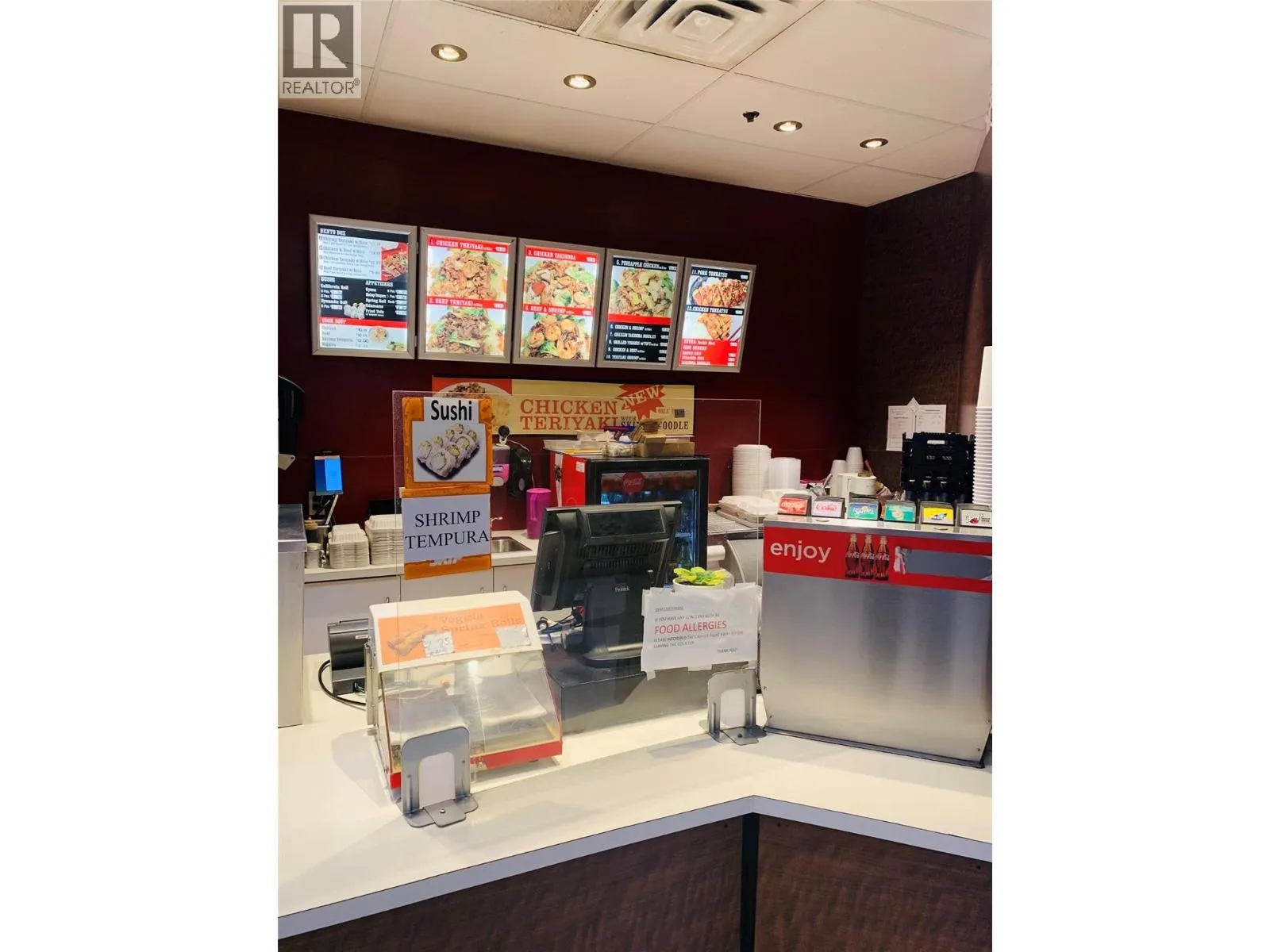 Turn-key food court business opportunity at Village Green Mall in Vernon, a fast-growing city with strong commercial momentum. Well-established Teriyaki Express has successfully operated in the same high-traffic location for 8 years, generating steady income and strong repeat local clients. Simple, efficient operation makes it ideal for both experienced operators and first-time business owners. Sale includes equipment and recent upgrades, including a hot buffet-style setup that replaced the former open bar grill; grill can be re-installed if desired. Supportive landlord and seller willing to provide training for a smooth transition. Rare chance to acquire a proven, easy-to-manage business in a premium mall location with no franchise restrictions. Contact listing agent for more information. (id:27476)