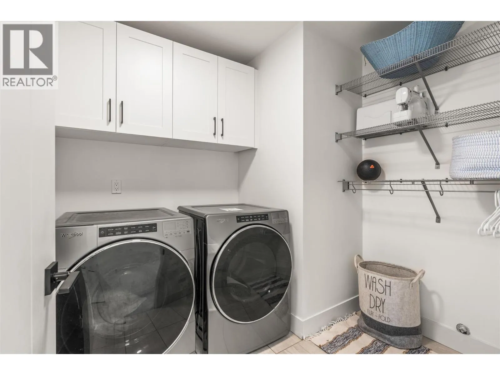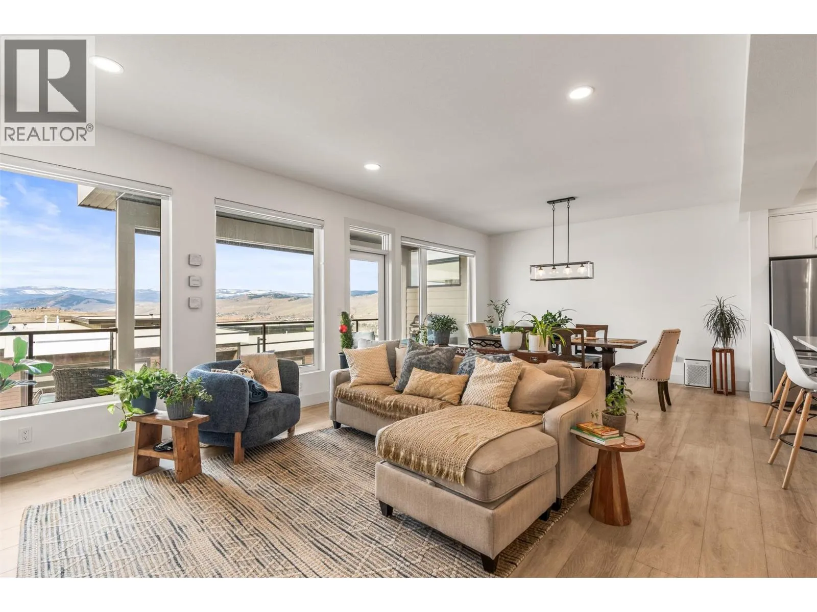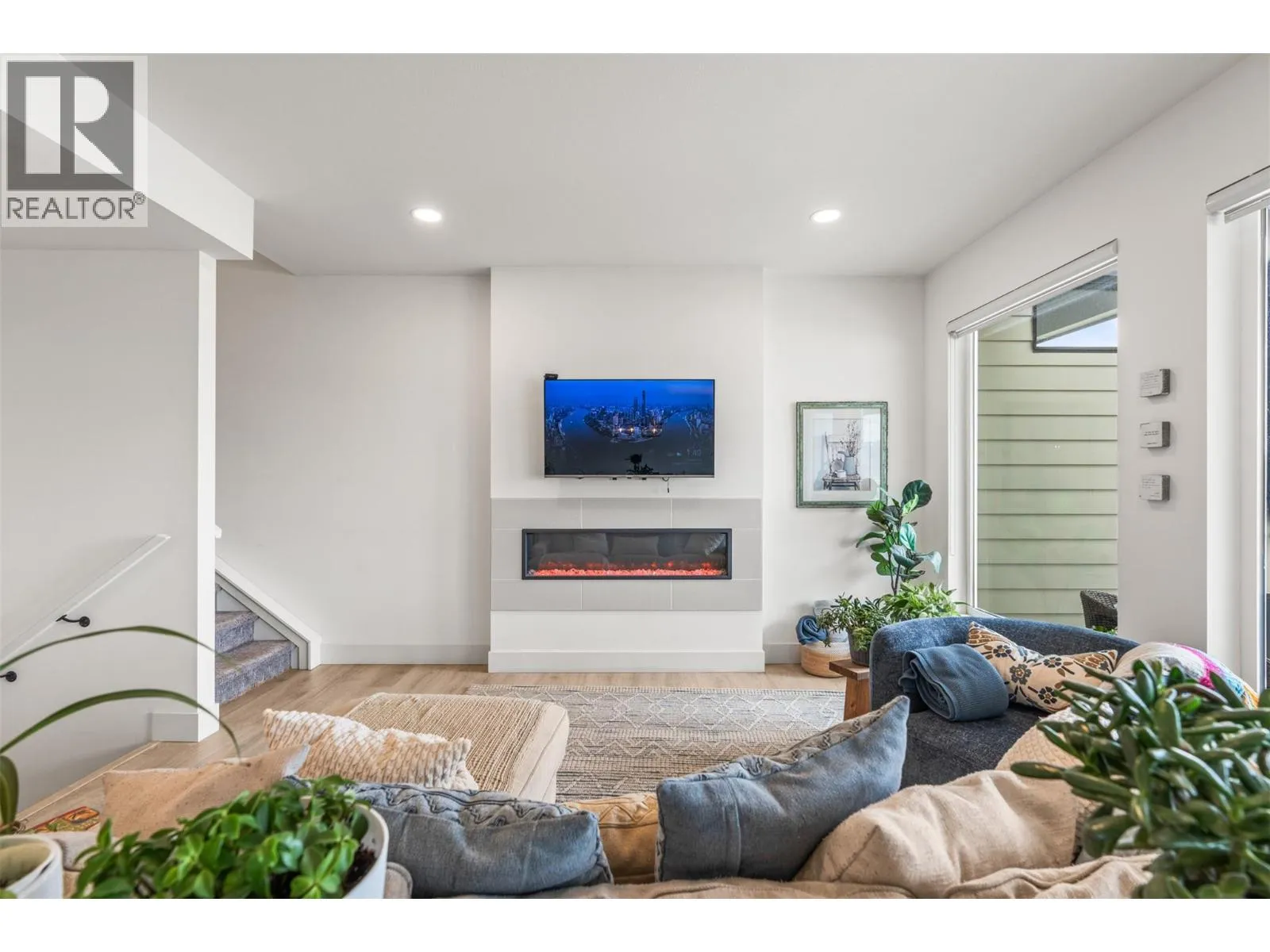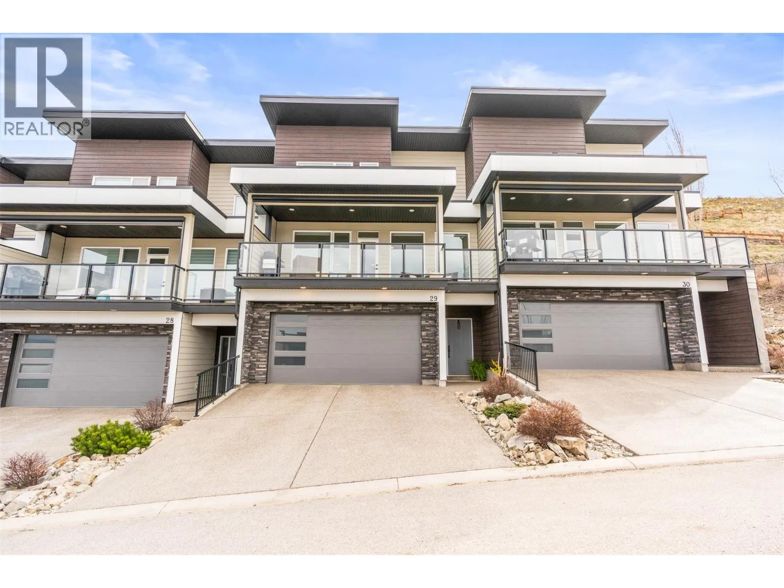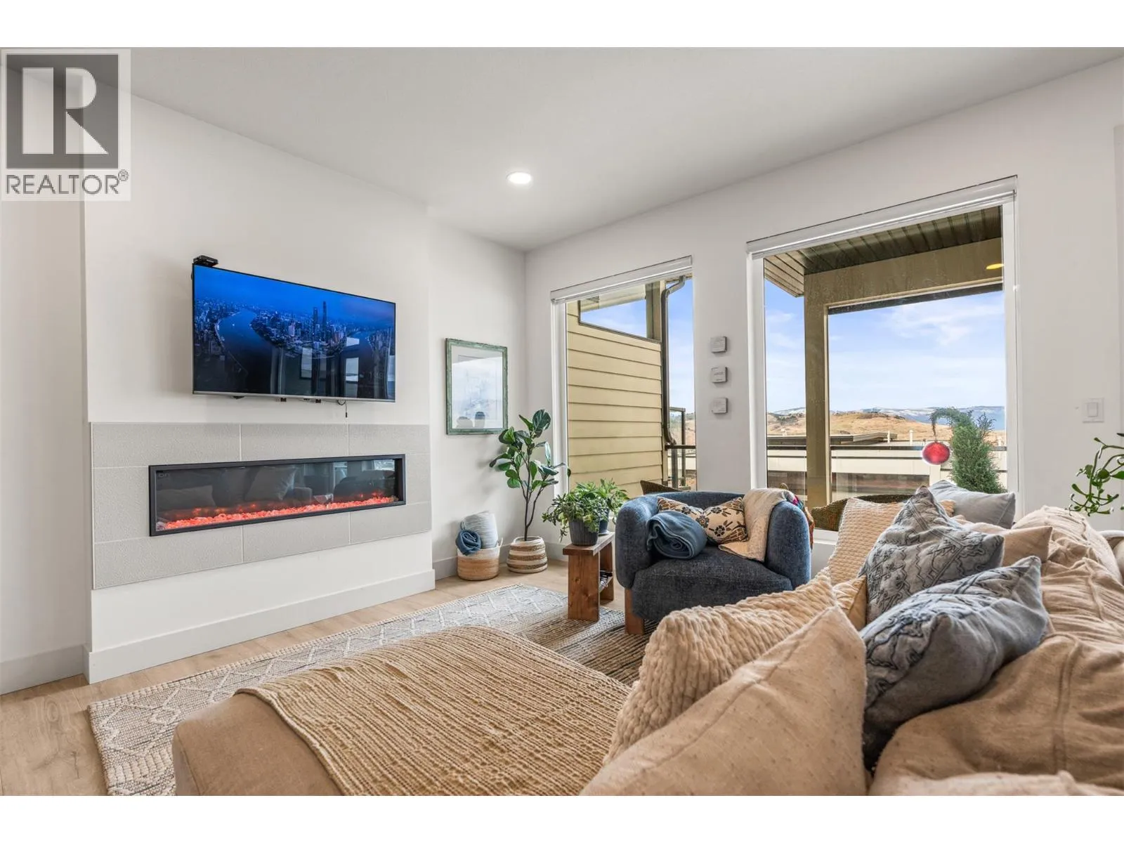 Offering stunning Kalamalka Lake views from all three levels, this turnkey townhome in the sought-after Infinity complex delivers modern living in a fantastic location. With direct access to Middleton Mountain trails and just minutes to Kal Lake, outdoor lifestyle is right at your doorstep. The entry level features a spacious double garage and welcoming foyer. The main floor is bright and open, with large picture windows framing the views. The kitchen showcases quartz countertops, white cabinetry, stainless steel appliances, and a large island, flowing into the living area with a modern electric fireplace. Step onto the front deck with power sunshade for added comfort and privacy. A bedroom and full bathroom complete this level. Upstairs, the primary suite offers breathtaking lake views, a walk-in closet, and a spa-inspired ensuite with double sinks, glass shower, soaker tub, and quartz counters. A second bedroom with its own ensuite, upper-level laundry, and access to the rear patio adds flexibility. Backing onto parkland and perched above surrounding homes, this property offers privacy, scenery, and low-maintenance living. (id:27476)