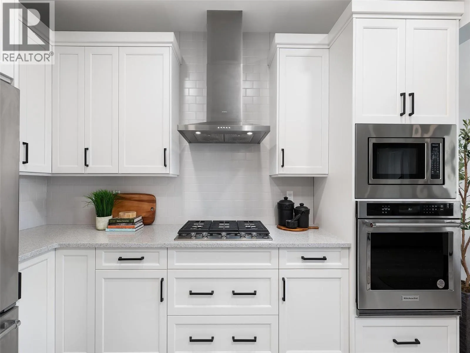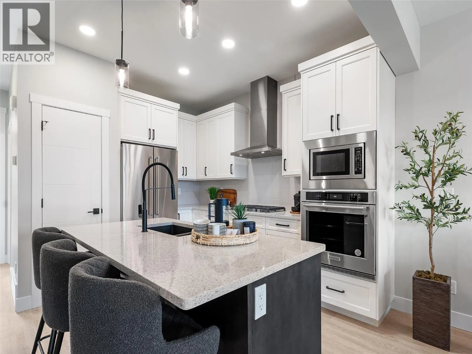 PRICED BELOW ASSESSED VALUE! This luxurious modern contemporary townhome offers an exceptional living experience in a vibrant lake-view community located just below The Rise Resort. Spanning three thoughtfully designed levels, this home features 1,767 sq ft with 3 bedrooms and 3 bathrooms. Enjoy seamless indoor-outdoor living with double decks and a walkout patio, perfectly positioned to take in the surrounding views. The oversized 19' x 40' garage provides ample space for vehicles, storage, or recreational equipment. Interior finishes include Rev Par wood flooring, a premium stainless steel KitchenAid appliance package with gas cooktop and wall oven, and a spa-inspired ensuite complete with an elegant tiled shower with 10 mm glass and a soaker tub. The main floor offers 9-foot ceilings and expansive windows that fill the space with natural light. Aldebaran Homes designed this home for comfort and peace of mind. It features 6"" concrete party walls between units for enhanced soundproofing, a high-efficiency furnace with air conditioning, Low-E energy-efficient windows, and full BC New Home Warranty coverage. No Property Transfer Tax applies when purchased as a primary residence. GST applicable. Donât miss the opportunity to own a stunning new home in one of Vernonâs most desirable new communities. (id:27476)