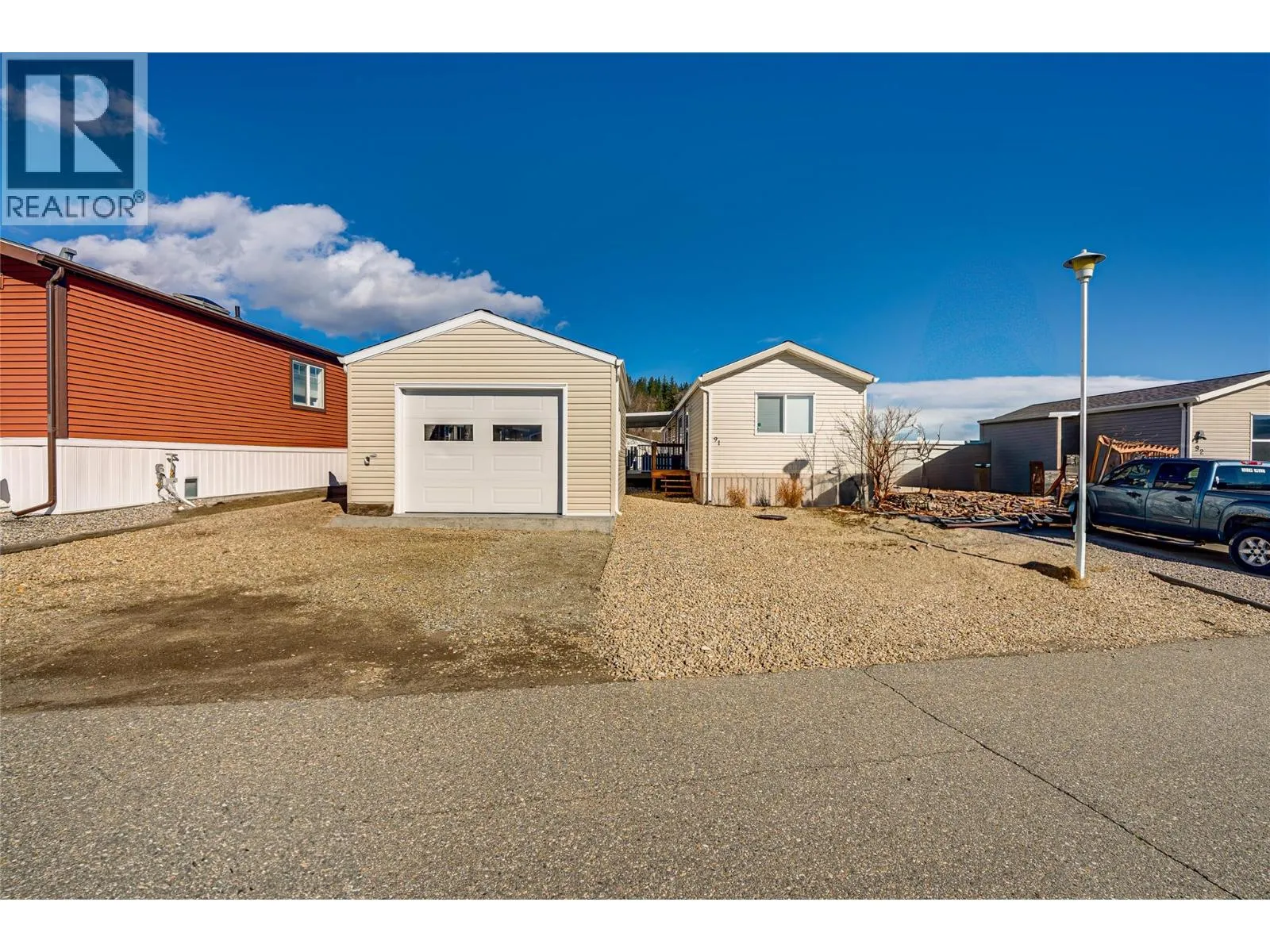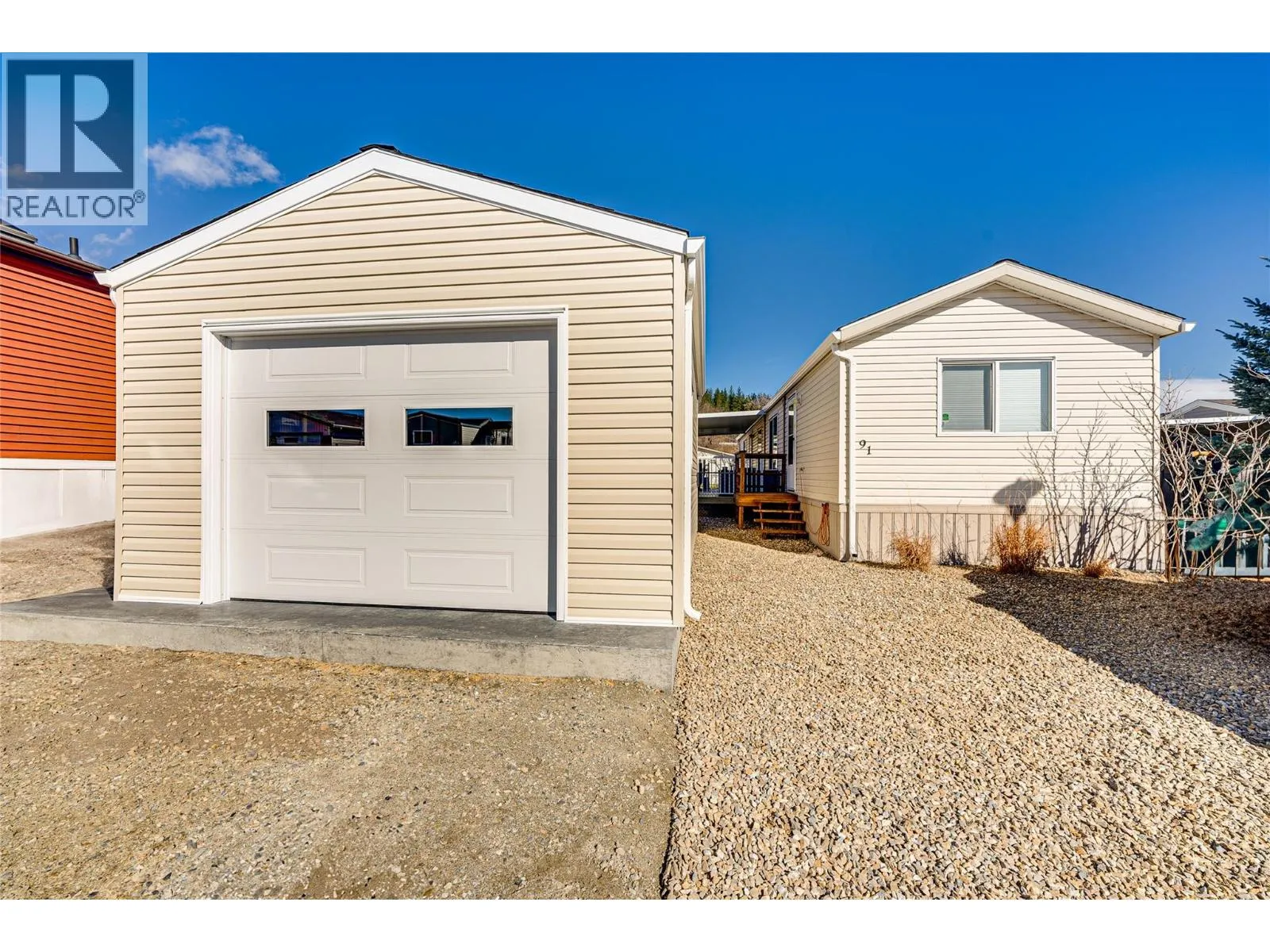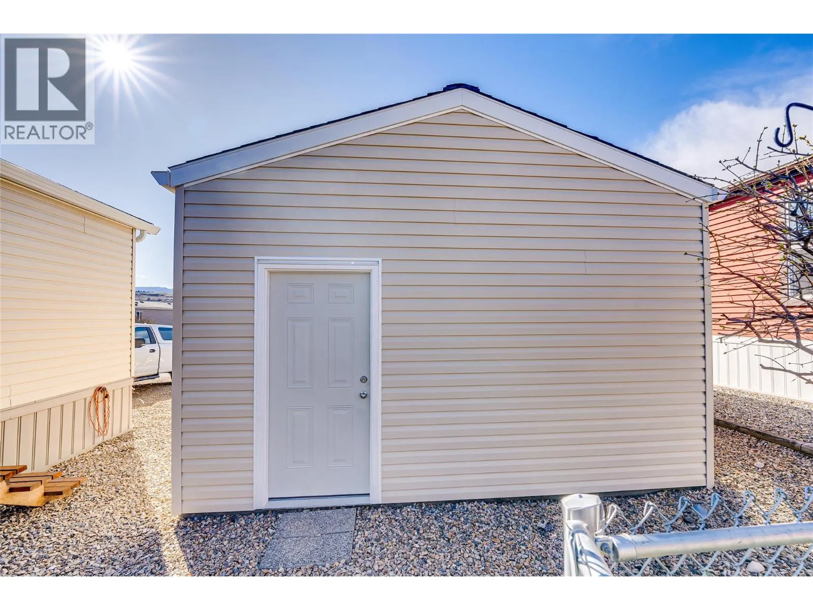 Welcome to Coyote Crossing Villasâwhere peaceful living meets everyday convenience. Ideally located just minutes from OâKeefe Ranch, Spallumcheen Golf & Country Club, and a short 10-minute drive to Vernon, this well-kept community offers a relaxed lifestyle in a beautiful setting. Tucked near the back of the park, this charming 2-bedroom, 2-bathroom home enjoys a quiet, private locationâperfect for unwinding. The thoughtfully designed layout places the bedrooms at opposite ends, offering excellent privacy, while the open-concept living area creates a warm and inviting space for both everyday living and entertaining. The spacious kitchen is a standout feature, offering ample cabinetry and storage for all your needs. The primary bedroom includes a walk-in closet and a convenient 3-piece ensuite. Step outside to enjoy the large, covered deck along with a fully fenced yard. For those who value workspace and storage, this property shines with a brand-new garage, a 12â x 8â insulated shed/workshop with power, and an additional 6â x 8â shed. Parking is plentiful, with room for four vehicles and additional RV storage available within the park if needed. This pet-friendly community (with park approval) offers an affordable monthly fee that includes water, sewer, garbage, recycling, snow removal, and general maintenance. Whether you're looking to downsize, invest, or simply enjoy a quieter pace of life, this home offers exceptional value and comfort in a desirable location. (id:27476)