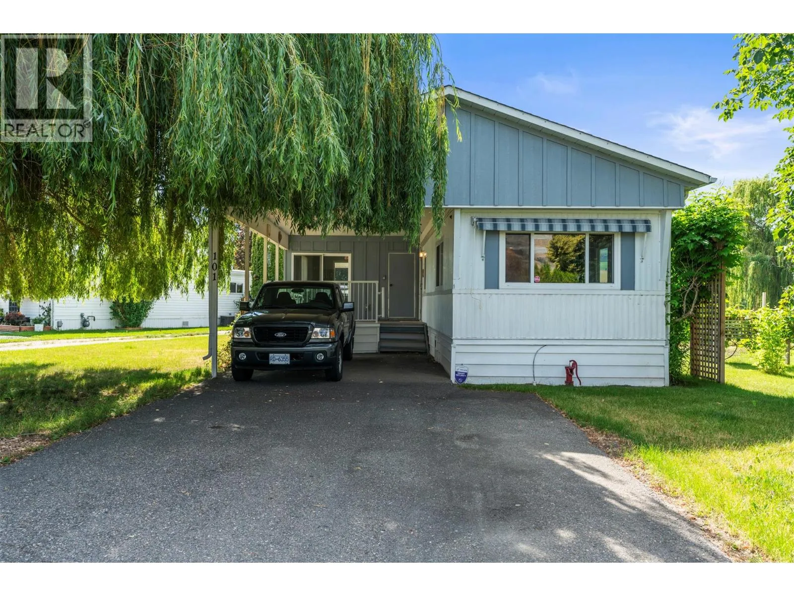 Discover your own private oasis in Holiday Park! This beautifully maintained 2 bed, 1.5 bath home sits one of the largest lot in the 55+ park backs onto a tranquil creek, offering a rare sense of peace and privacy. Imagine relaxing on the spacious deck, listening to the gentle sounds of the water and soaking in the natural beauty that surrounds you. The detached shed adds even more versatility, use it for storage, a creative studio, or a cozy guest space. With a brand new Silver Label in place and located just minutes from all the amenities along Okanagan Landing Road, this is a special opportunity to own a unique and welcoming home in a friendly, well-kept community. A must-see! (id:27476)