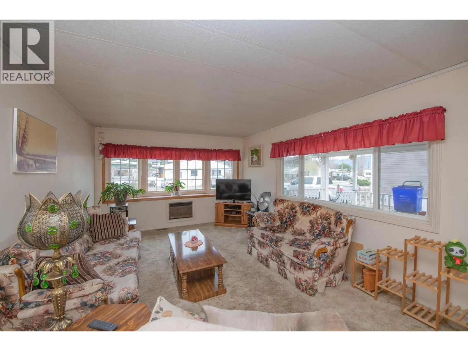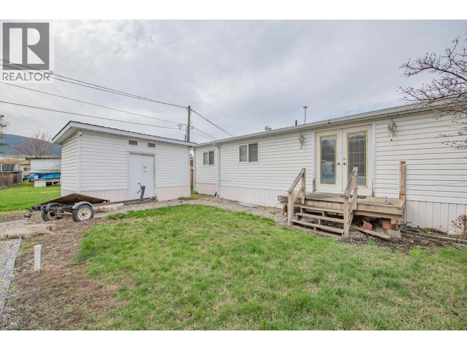 Welcome to Sandy Beach Village - Family Mobile Home Park. This home is perfect for a young family or seniors looking to size down and have a couple extra bedrooms for guests or hobbies. With close to 1200 sqft., it has Three bedrooms and One and a half bathrooms, large living room, good sized kitchen and an extra dining area. Nice covered deck to enjoy keeping out of the weather or build your entertaining patio off the dining room French doors. Your yard is a great space for gardening, your pet and also has a 8X16 ft. Workshop/Storge Shed at the back. There is plenty of parking and is located on a dead end road in the park, so little traffic. Enjoy the close proximity to only being a short walk to Kin Beach and other activity areas like Marshal Fields and Paddle Wheel Park and trails. There is also Public Transit close by. Save on Low Pad fees which include, water, septic and garbage. Pets need to be approved by the park. (id:27476)