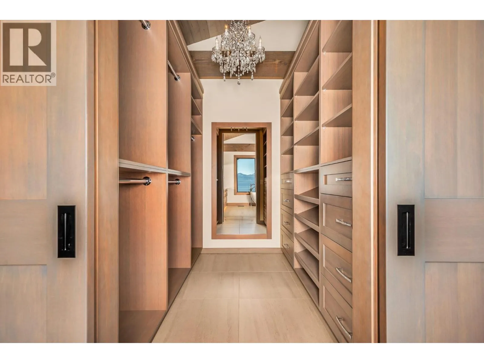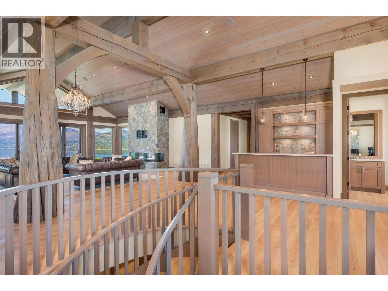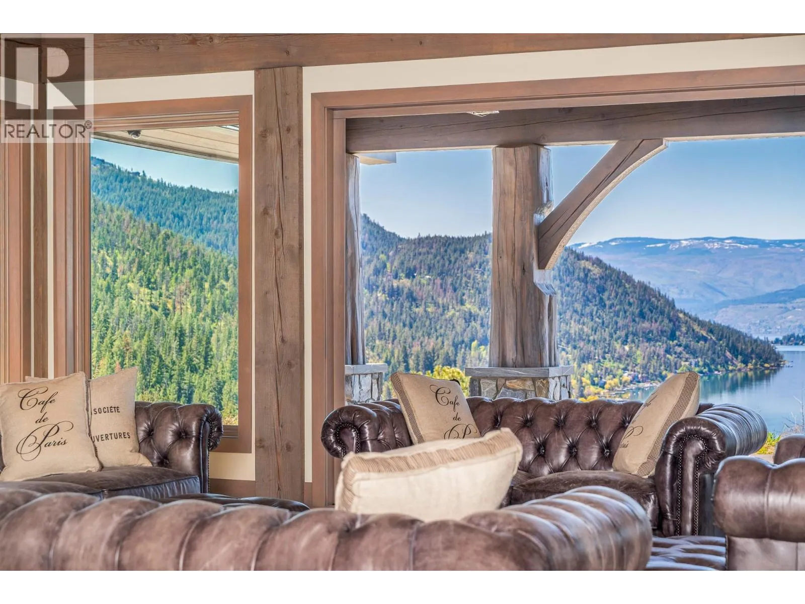 OKANAGAN RANCH - A once in a Lifetime Trophy Estate Property. A rare opportunity to own a breathtaking estate at the end of Bench Row Road. Gated and private, this gently rolling 25.65-acres is fenced and cross-fenced in solid 2x8 fir plank fencing. Irrigation ready for connection. Just picture your horses or future vineyard here! Perched on the knoll to take command of the 180 degree; south-facing views of Okanagan Lake, this custom Timber Frame ranch-style home blends seamlessly with the landscape. This Heartwood Homes masterpiece, offers over 4,100 sqft on each level with a showpiece custom spiral staircase connecting the two. Impressive timbers, natural stone, walls of glass and hardwood floors set the stage for exquisite lighting, custom kitchen with Wolfe and Subzero appliances, and stunning RH chandeliers and fixtures. Five bedrooms, 4 full and 3 half baths, amazing custom office, media room, wet bars, sauna, and massive games/entertainment spaces. Heated floors, security, every convenience! Plans for future lakeview pool off the massive patio! The 3 bay- 60x40â fully loaded deluxe drive-through shop features 50-amp RV hookups, full bath, laundry, office, custom cabinetry, surround sound, cameras and security. You will always know where Dad is! Second matching shop for outdoor storage too! From this serenity, you are mere minutes to the yacht club, beaches, parks, rail trail, world-class golf, wellness retreat, Silver Star Ski Resort, and Kelowna International Airport. (id:27476)