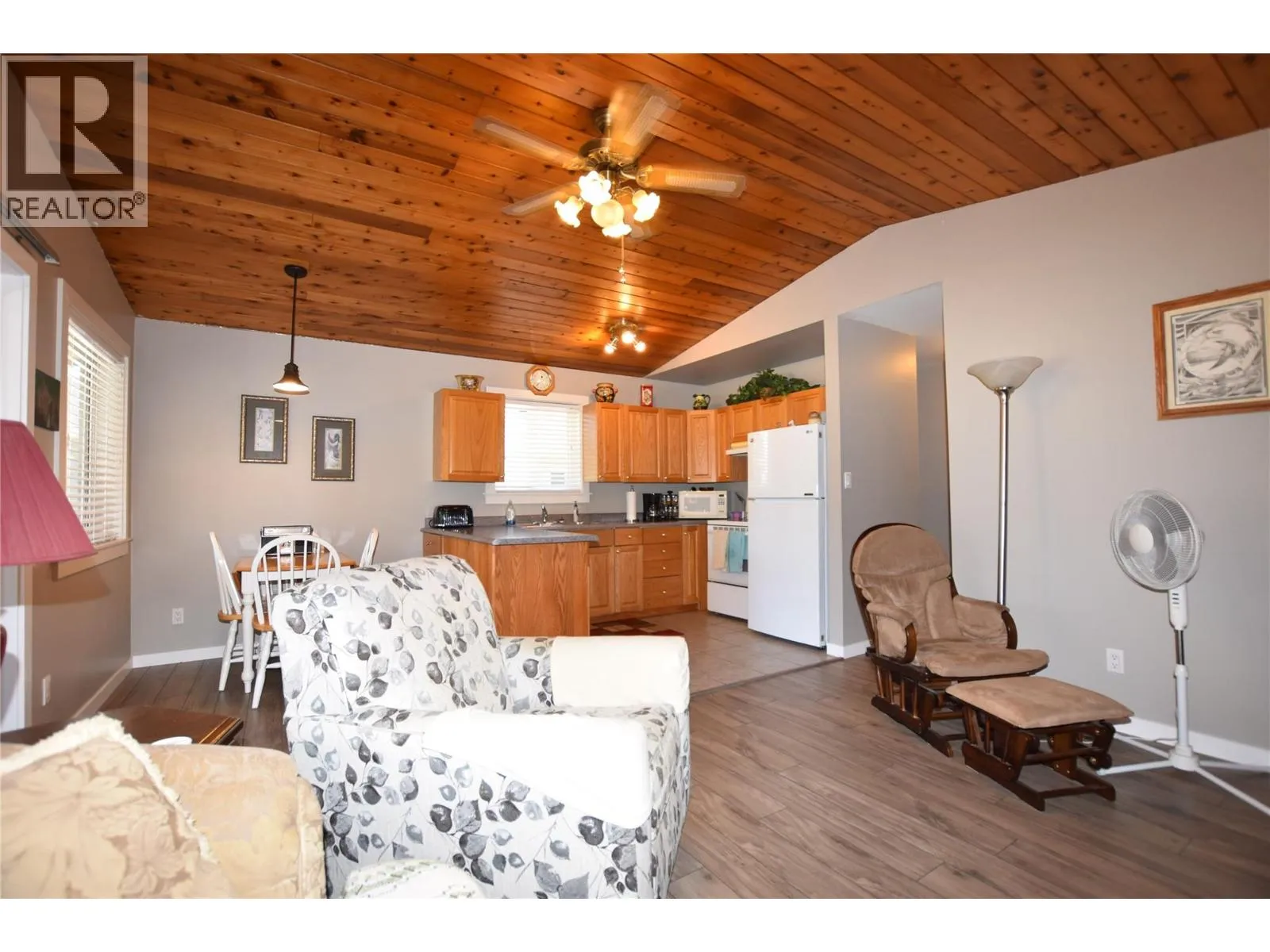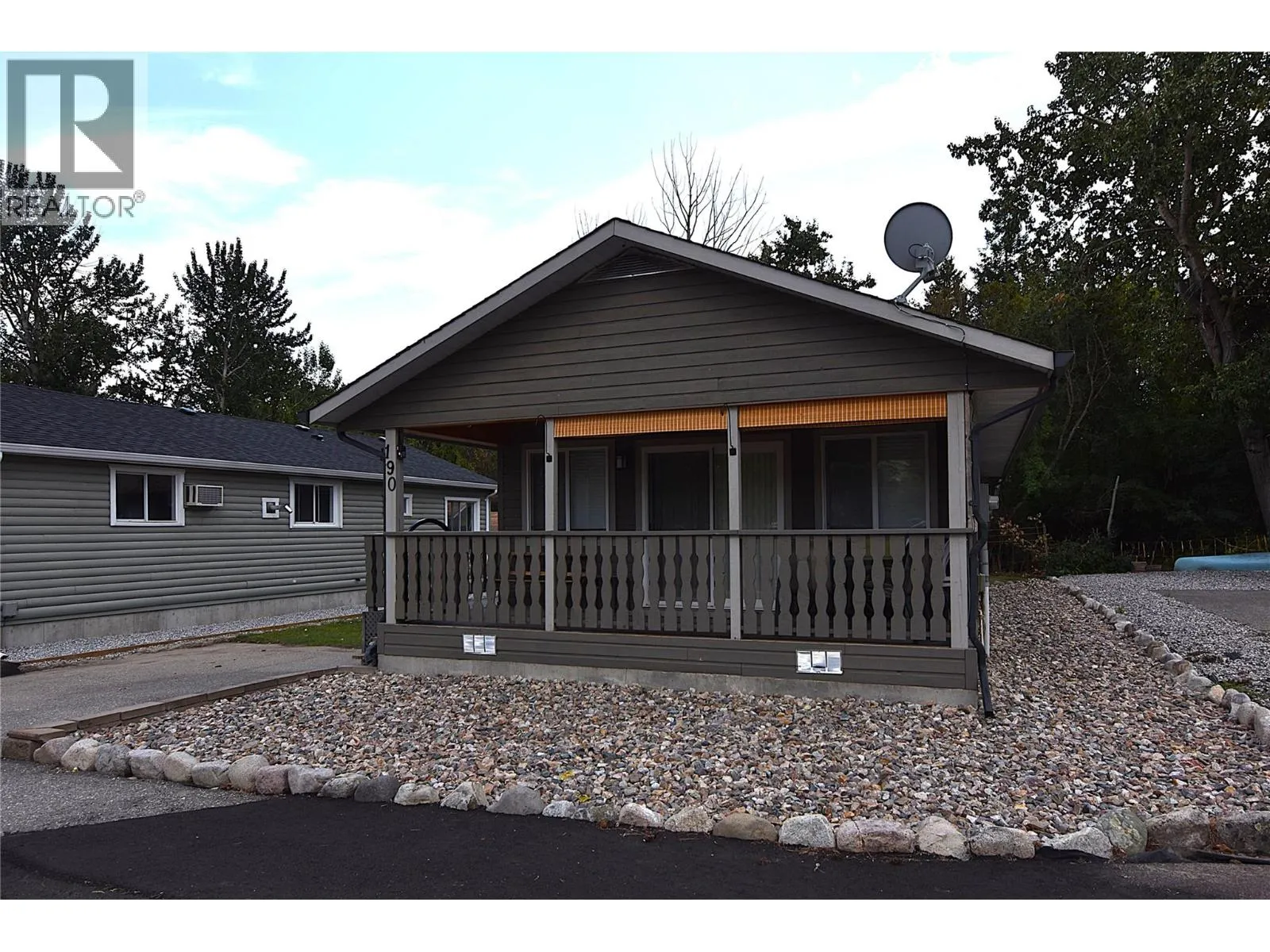 Welcome to 190 Falcon Avenue in Parker Cove. This charming cottage-style home offers a warm, inviting atmosphere with its open-concept main living area, accented by beautiful pine wood ceilings and low-maintenance laminate flooring. It features 3 comfortable bedrooms and a full 4-piece bathroom. The bright oak kitchen provides ample cupboards and counter space, with sliding doors leading to the covered front deckâperfect for BBQs and entertaining family or friends. Situated on a flat lot just a two-minute stroll from the lake, this property is ideal for either full-time living or as a seasonal getaway. Best of all, the lease is PAID IN FULL until 2043, making this an incredibly affordable opportunity to enjoy the Okanagan lifestyle. Brand new roof in 2025. (id:27476)