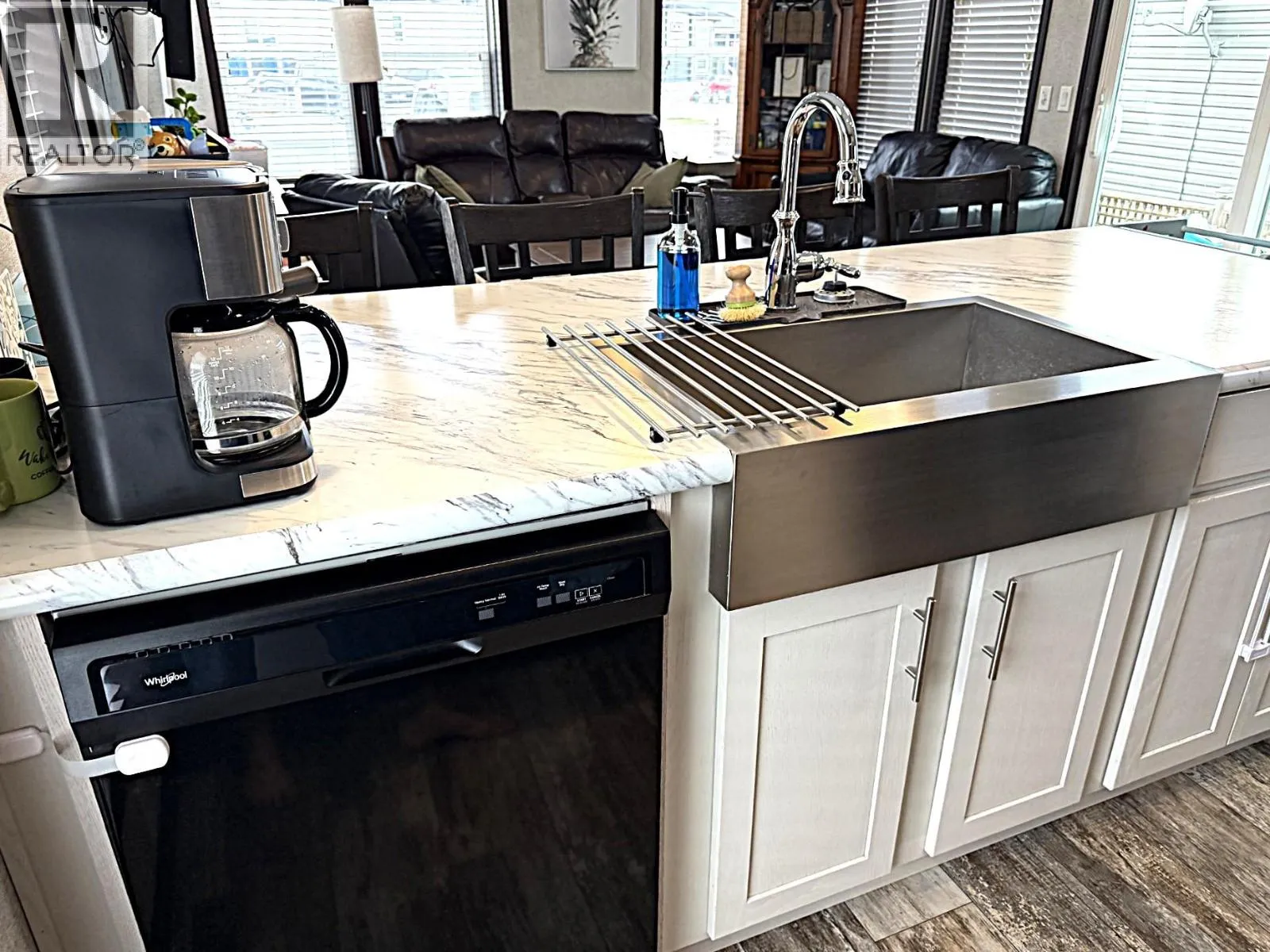 Welcome to Unit #3 in Willow Lakeside Homes MHP at the Head of the Lakeâwhere peaceful country living meets convenient access to Vernon, just 15 minutes away. This very well-maintained 8-year-old home (16' x 52') offers a bright and inviting open-concept main living area with high ceilings and an abundance of windows that fill the space with natural light. The functional layout includes 2 bedrooms and 1 full bathroom, making it ideal for downsizers, first-time buyers, or those seeking a low-maintenance lifestyle. The kitchen comes equipped with black appliances, including a propane gas range, and flows seamlessly into the main area, where sliding doors provide easy access to the outdoors. Enjoy year-round comfort with central air conditioning. Outside, youâll find a fenced yard, two storage sheds, and space to relax and unwind. Decks and trees are permitted with park manager approval, allowing you to personalize your outdoor space. Pad rent is an affordable $400/month and includes water, sewer, and garbage pickup. Pets are welcome with park manager approval. As a resident, youâll also enjoy access to beautiful Okanagan Lakeâperfect for embracing the Okanagan lifestyle. A fantastic opportunity to enjoy quiet, affordable living in a scenic setting. (id:27476)