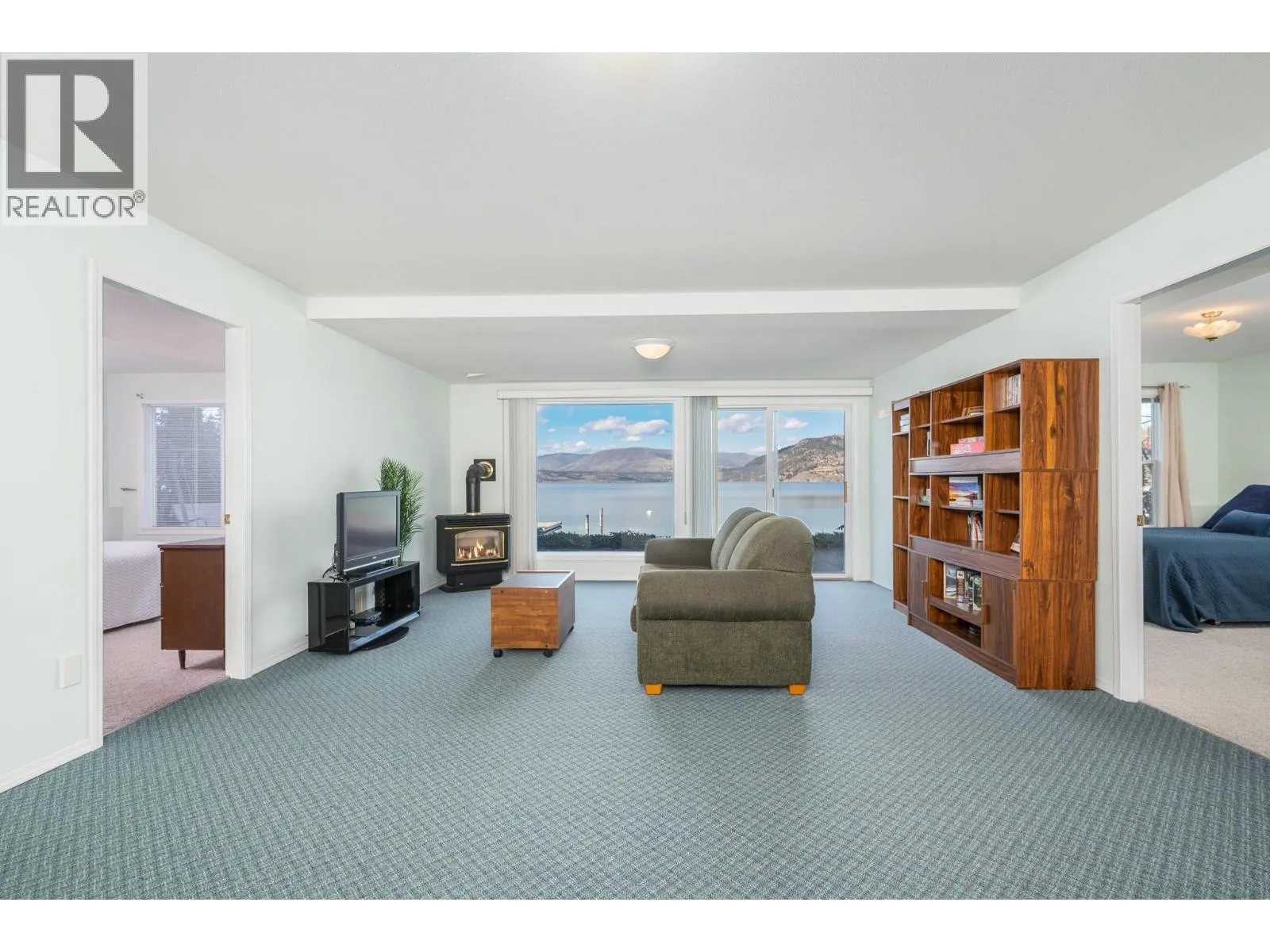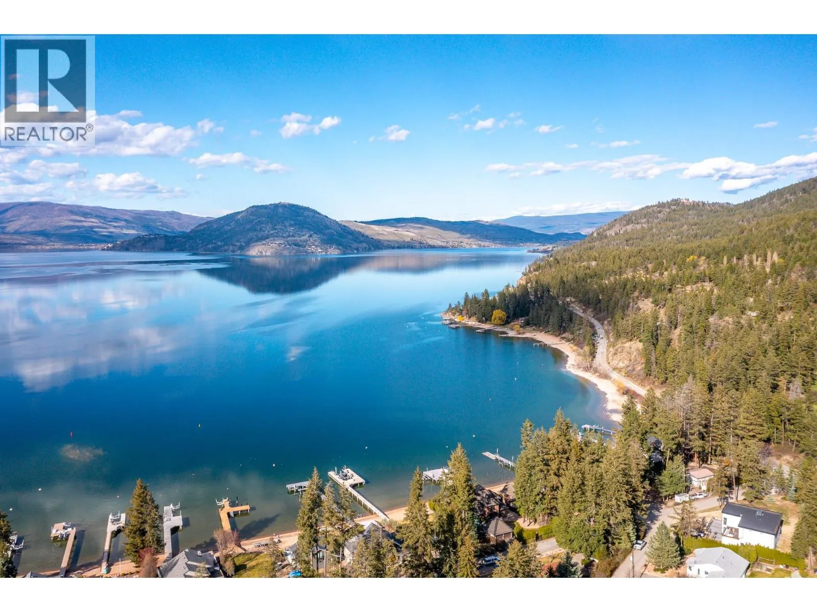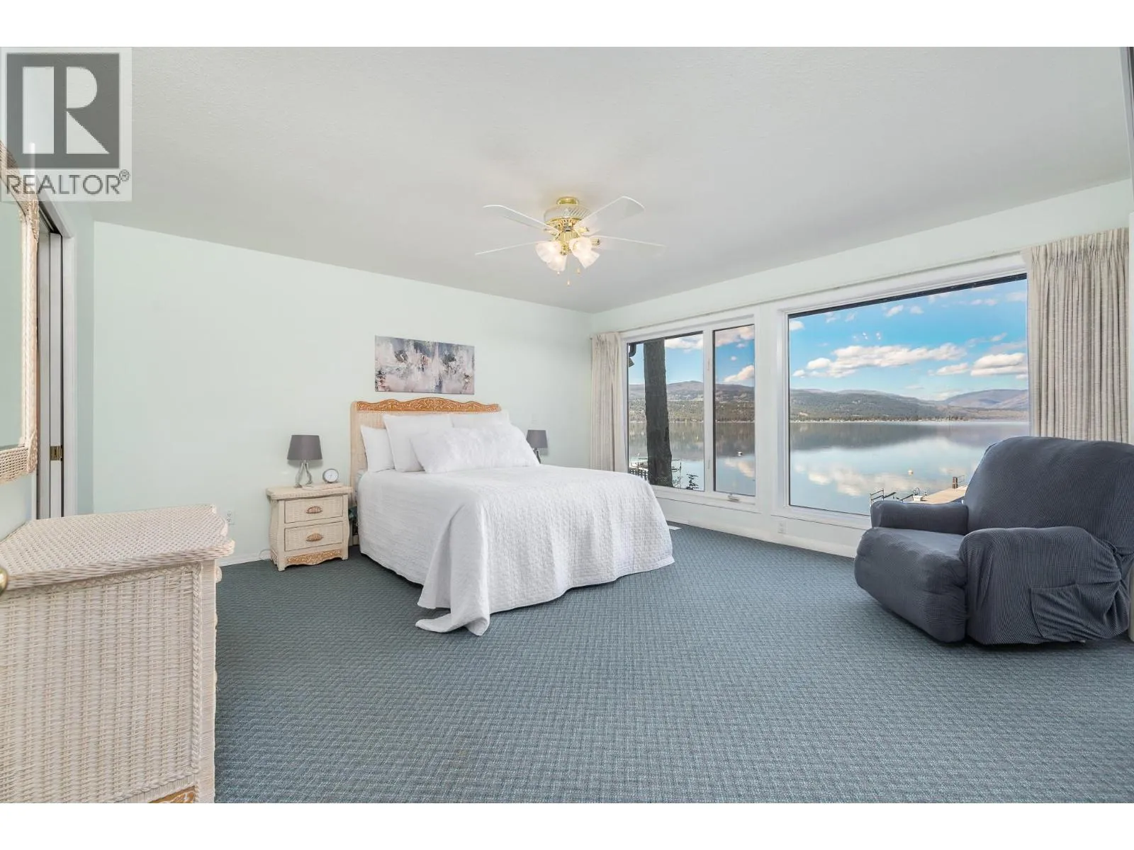 A rare Okanagan lakeshore opportunity! This Estate Sale waterfront home is turnkey - furnished and equipped- so you can move right in! Quick Possession! Custom built for the original owner in 1997 with thoughtful emphasis on mobility issues. This .23-acre lot offers lots of easy parking and flows gently to the completely level, swimmable, 70 ft of rare red sand beach! Shared dock and private buoy for your boat. Elevated ceilings and walls of deep windows flood this home in natural light and capture the fabulous lakeview! Super functional floor plan means room for everyone! Level entry main floor with wide open kitchen and dining area. Gas fireplace anchors the living area and glass sliding doors open to the covered deck. The Primary bedroom offers a walk-in closet and ensuite with step-in shower. The second bedroom, full bath with tub/shower and generous laundry room complete this level. The lower level offers easy, level walk-out to the patio and beach! The family room with gas stove and mini kitchen complete with range and fridge is perfect for lingering summer guests! Three very generous bedrooms and full bath with tub/shower. Good storage! Delcliffe is a coveted neighborhood with a friendly blend of families and retirees. Want more? Stroll down the road to the exclusive neighborhood beach for a different view or head up the road to Ellison provincial park and miles of bike trails! Being offered As Is-Where Is! (id:27476)