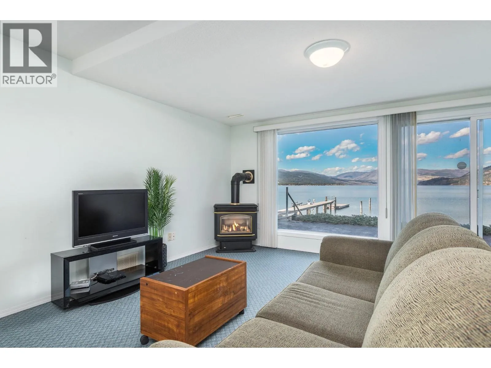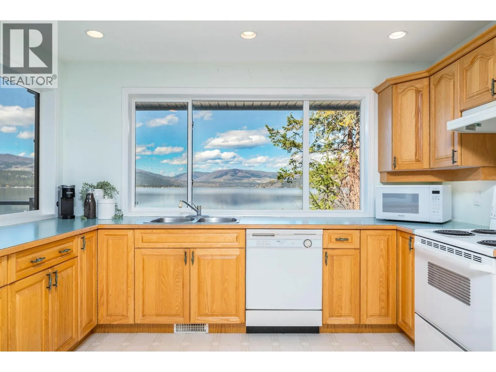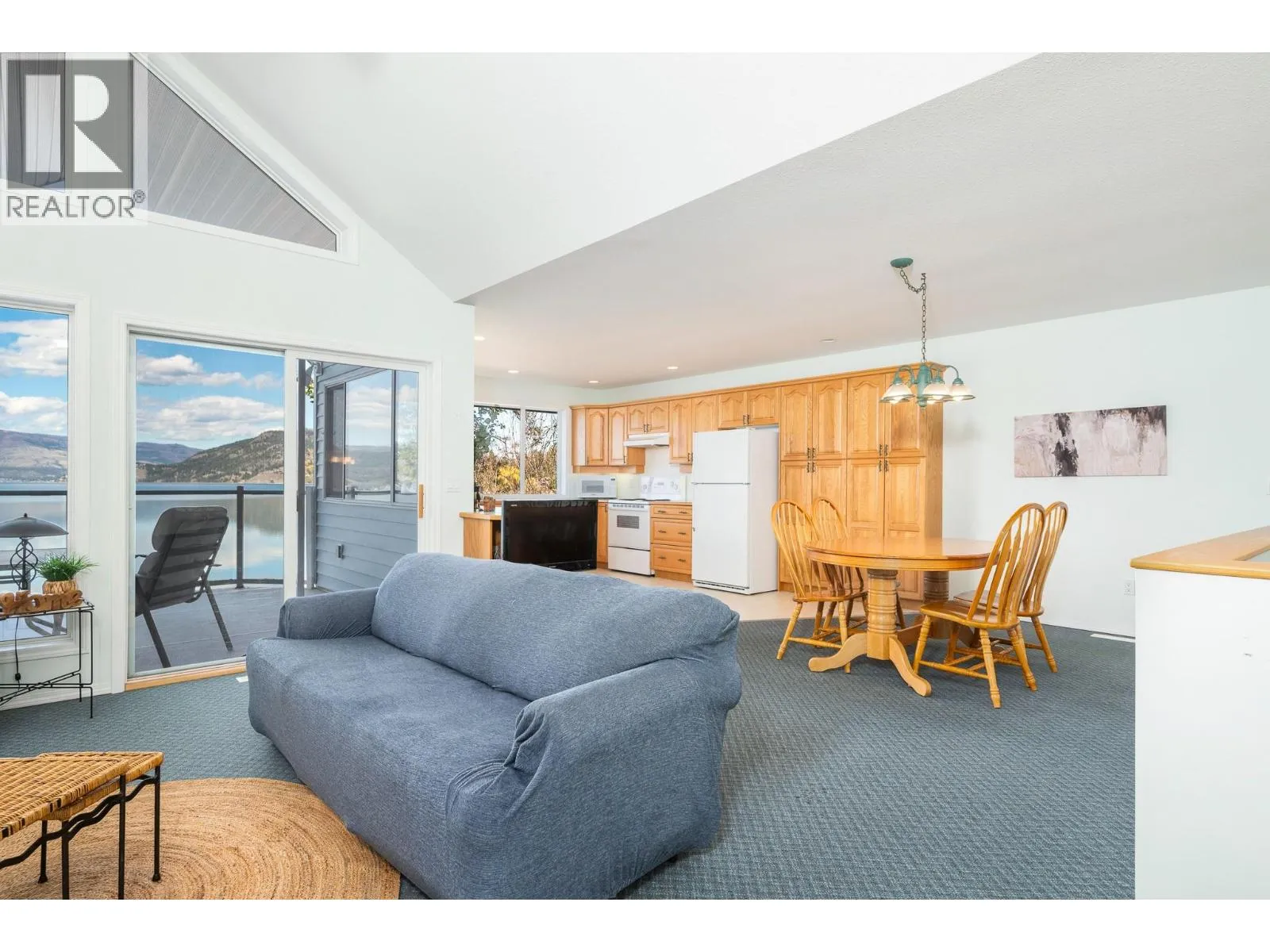 A rare Okanagan lakeshore opportunity! This Estate Sale waterfront home is turnkey - furnished and equipped- so you can move right in! Quick Possession! Custom built for the original owner in 1997 with thoughtful emphasis on mobility issues. This .23-acre lot offers lots of easy parking and flows gently to the completely level, swimmable, 70 ft of rare red sand beach! Shared dock and private buoy for your boat. Elevated ceilings and walls of deep windows flood this home in natural light and capture the fabulous lakeview! Super functional floor plan means room for everyone! Level entry main floor with wide open kitchen and dining area. Gas fireplace anchors the living area and glass sliding doors open to the covered deck. The Primary bedroom offers a walk-in closet and ensuite with step-in shower. The second bedroom, full bath with tub/shower and generous laundry room complete this level. The lower level offers easy, level walk-out to the patio and beach! The family room with gas stove and mini kitchen complete with range and fridge is perfect for lingering summer guests! Three very generous bedrooms and full bath with tub/shower. Good storage! Delcliffe is a coveted neighborhood with a friendly blend of families and retirees. Want more? Stroll down the road to the exclusive neighborhood beach for a different view or head up the road to Ellison provincial park and miles of bike trails! Being offered As Is-Where Is! (id:27476)