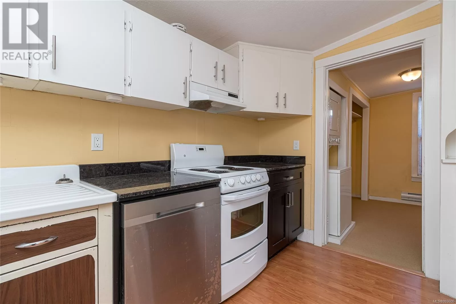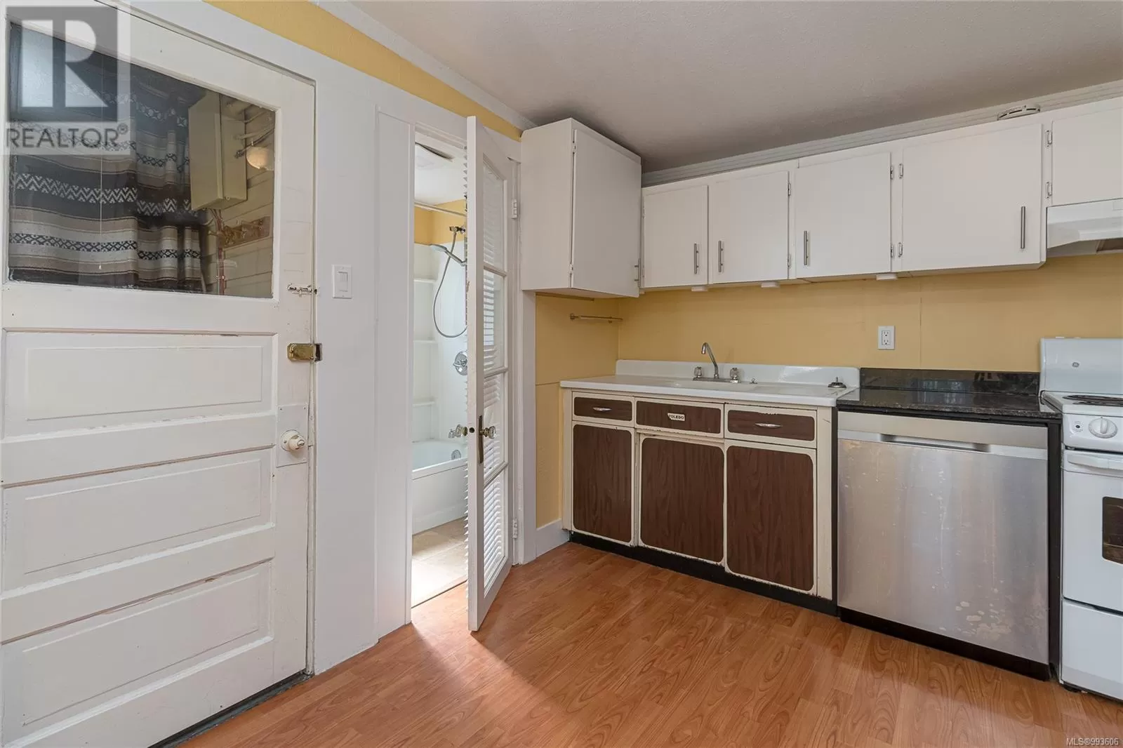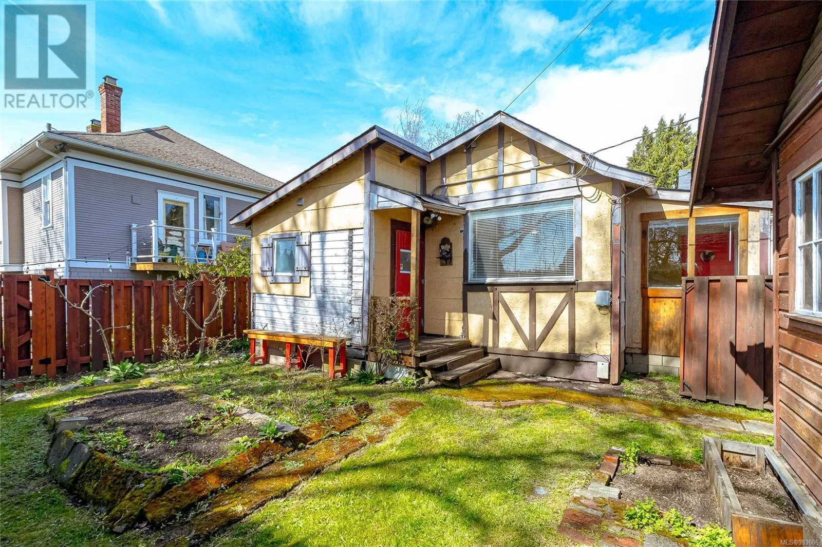 BEST PRICED HOME IN VICTORIA! - Welcome to your Rustic Cottage & Garden get-a-way in the heart of the city... Generous garden with Separate Carport + Shed... Next to Blackwood Park, this home beats condo living!! 1919 built two bedroom with three piece bathroom and laundry in the Quadra/Hillside nieghbourhood, fenced on three sides, with two off-street car parking spaces. Carpeted in the porch/sunroom, living area and bedrooms, laminate flooring in the kitchen with heated tiles in the bathroom. Garden in the front and the back with three producing apple trees for the orchard-lover. Walk to many amenities close by including shopping, crystal pool, and the Memorial arena. There is a bus stop 50m away and this location is ideal for anyone who commutes by bicycle to anywhere downtown. Make sure to check it out! Easy to view. (id:27476)