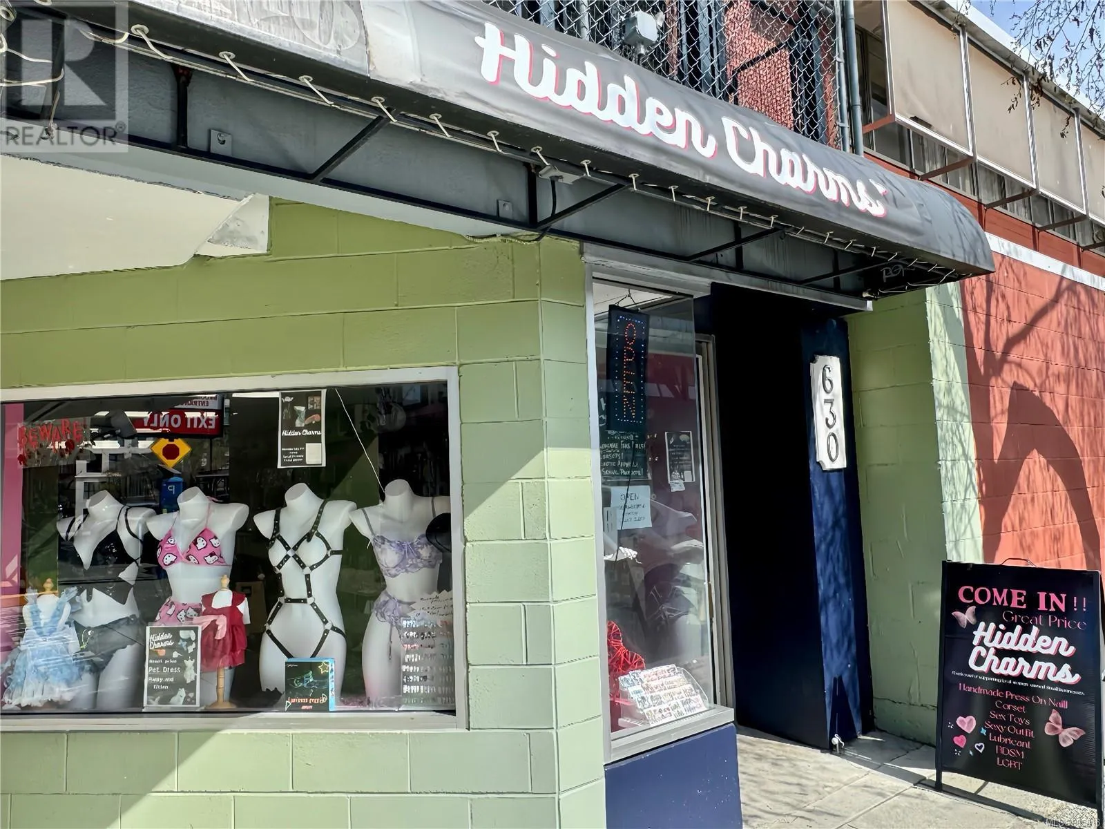 An exceptional opportunity to acquire Hidden Charms, a well-established and profitable retail boutique in the heart of Downtown Victoria. Ideally situated between the Central Business District and Old Town, this vibrant ground-level storefront enjoys excellent exposure and benefits from steady foot and vehicle traffic year-round.The surrounding area is a dynamic hub of retail shops, offices, restaurants, and residential buildings. Offered as a turnkey operation, the business comes fully stocked with a curated mix of fashion, lingerie, personal care items, adult products, and accessories. The stylish interior features creative displays and themed decor designed to elevate the customer experience.A secure lease is in place through May 2027, with a five-year renewal option and a highly competitive rent. Ideal for an owner-operator or entrepreneur seeking immediate cash flow in a proven location. Please do not approach staff. Contact the listing agent to arrange a private showing. Buyer may take over lease with or without inventory. (id:27476)