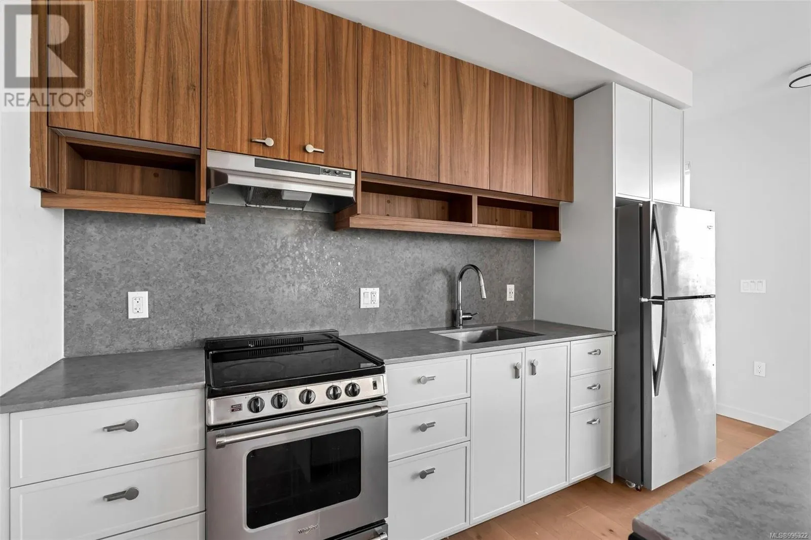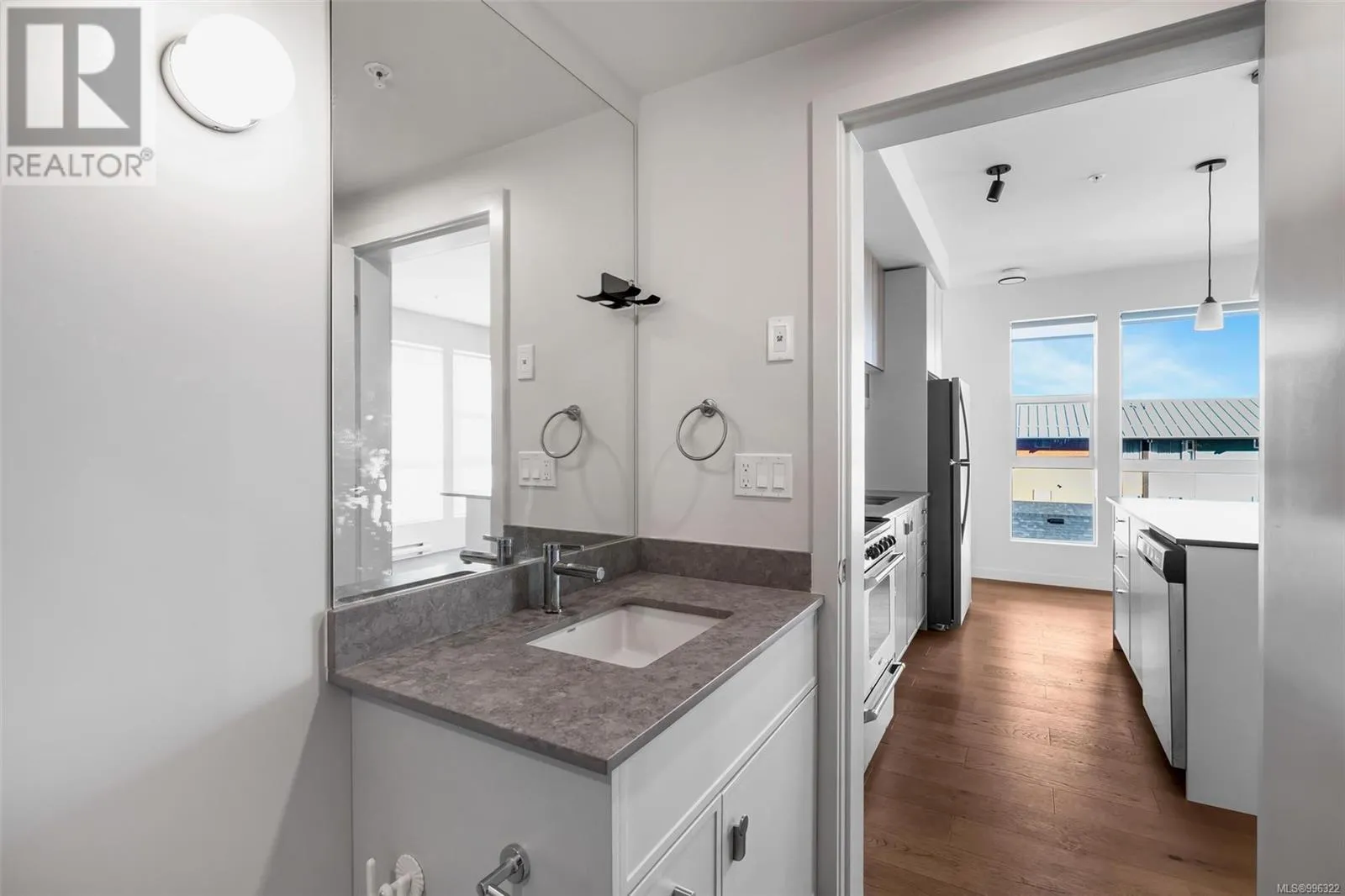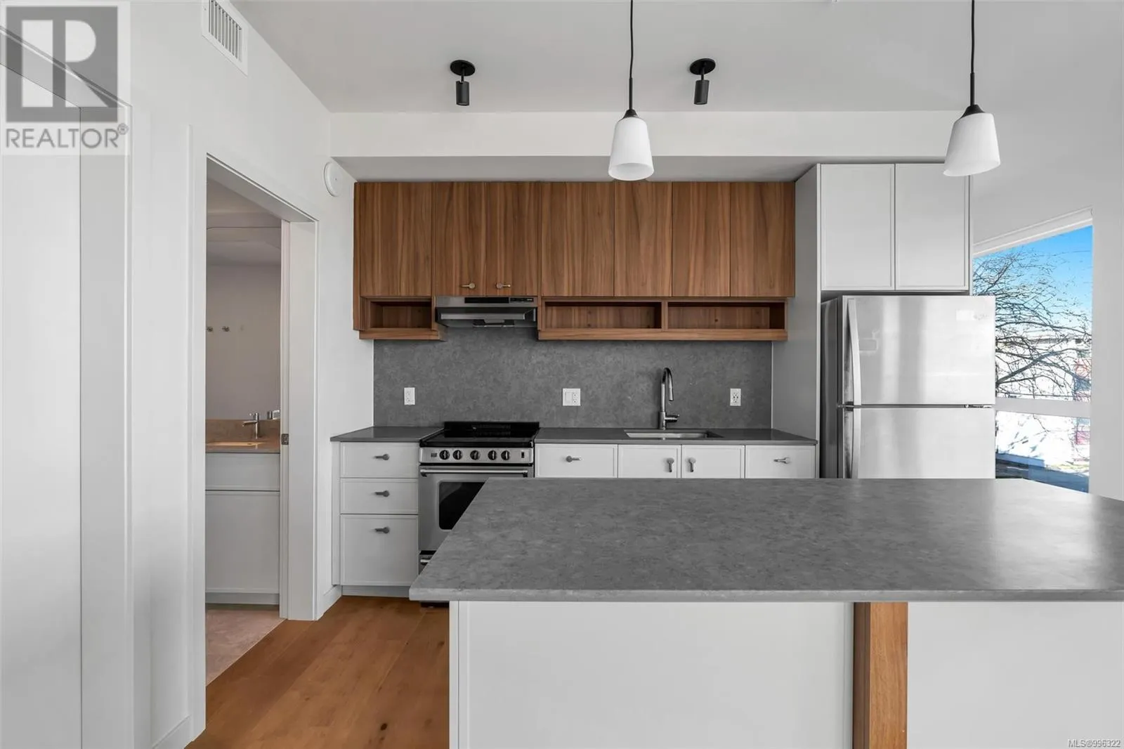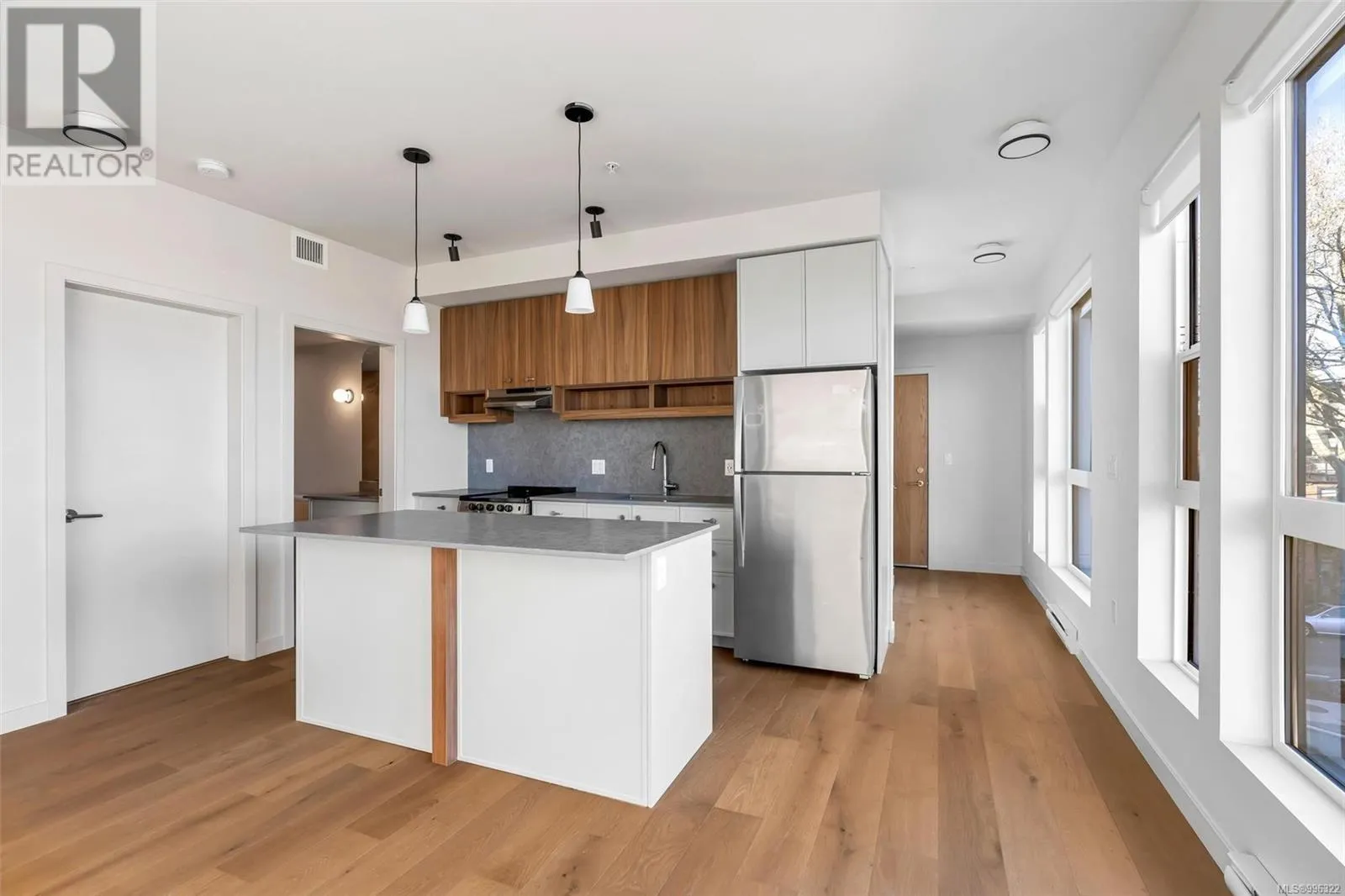 Welcome to Tresah East, a modern and stylish condominium in the heart of Victoriaâs vibrant Midtown. This thoughtfully designed community offers contemporary living just minutes from downtown, the Galloping Goose Trail, and the Gorge Waterway, with easy access to parks, shopping, dining, and transit. Unit 307 is a spacious one-bedroom corner suite on the southeast side, designed for both comfort and style. The open and airy layout boasts 8â11â ceilings, wide-plank oak flooring, and high-end finishes throughout. The sleek kitchen is equipped with quartz countertops and backsplashes, along with a premium stainless steel appliance package. Additional highlights include in-suite laundry and advanced soundproofing for a peaceful living experience. Donât miss out on this opportunity to own a beautifully designed home in one of Victoriaâs most sought-after neighborhoods! (id:27476)