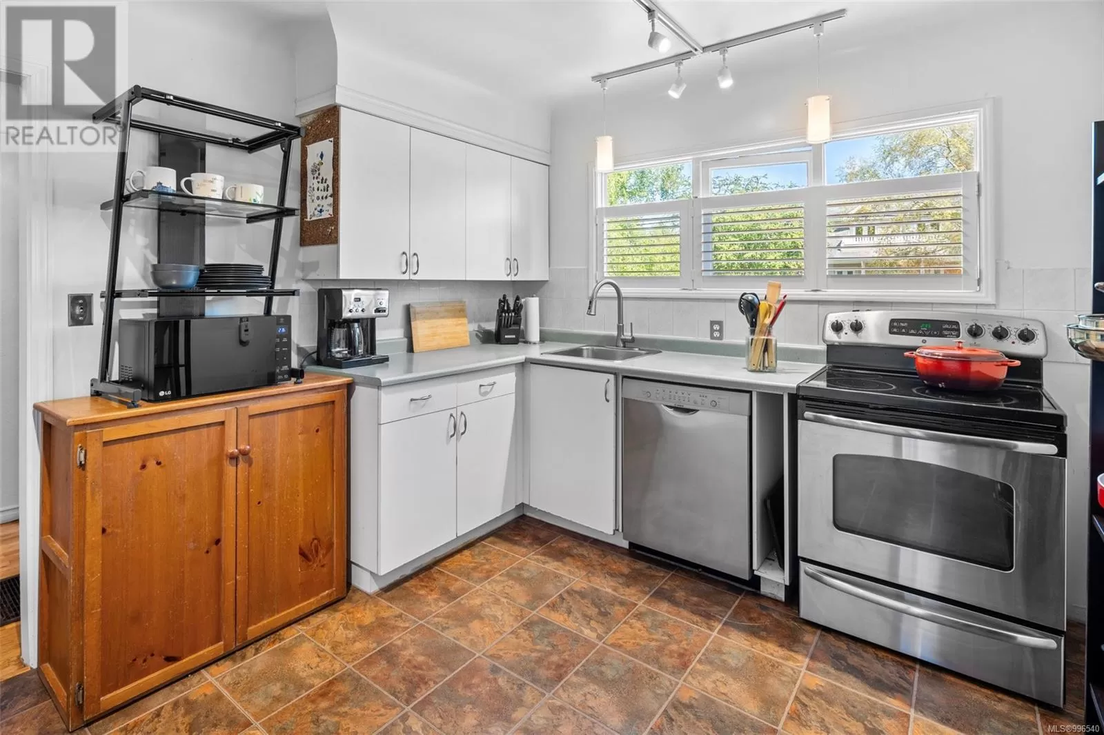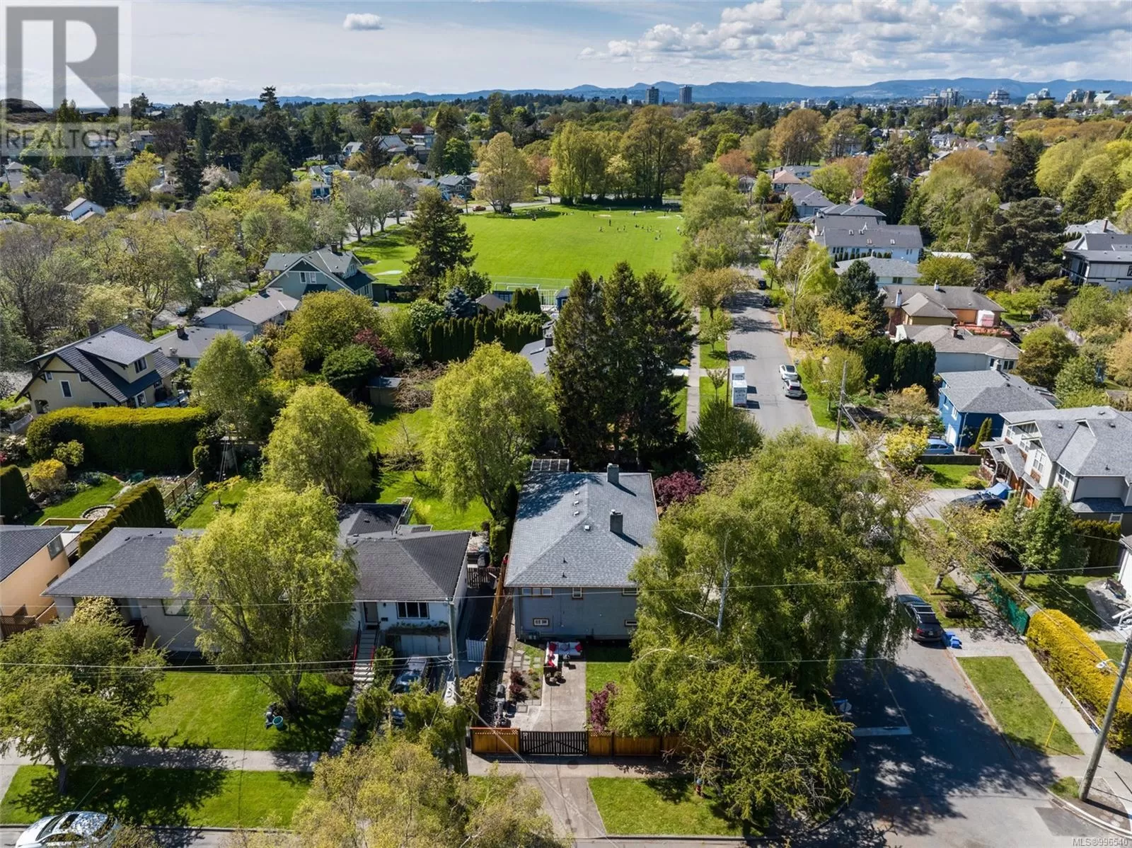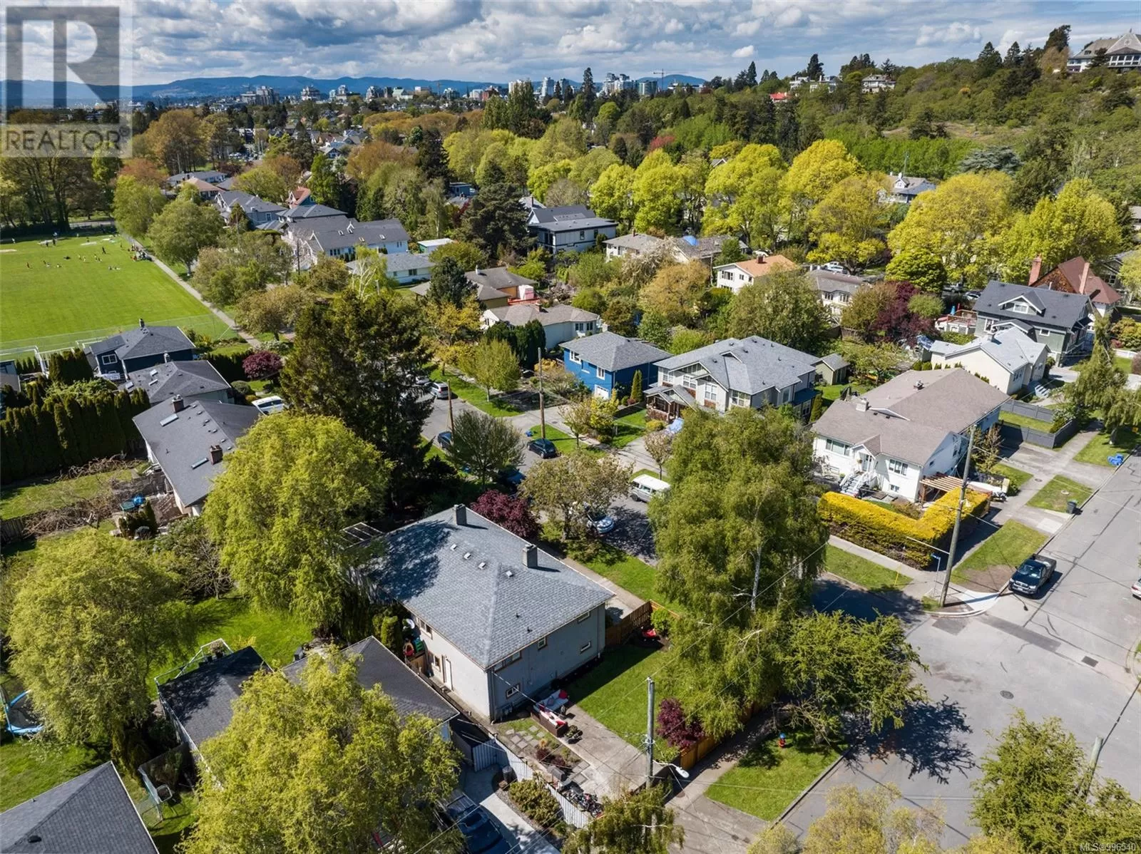 Fairfield friendly! Steps to excellent schools, shops & the ocean, this 3 bedroom, 2 bath duplex is perfectly located in this fabulous neighbourhood. Boasting a gorgeous, fully fenced corner yard the character home has oak floors & coved ceilings, a testament to the 1950's. There is an attractive stone fireplace, mahogany mantel & electric insert in the living room. The separate kitchen is pre-wired for a wall oven & enjoys views over the backyard. The flexible layout offers 2 ample bedrooms & a bathroom on this level. The lower level can easily be converted to a 1-bed suite & it is plumbed for a kitchen. The huge laundry room has newer appliances & tons of storage. Updated lighting throughout the house plus an alarm system. Perimeter drains & the roof were replaced approximately 15 years ago. A unique opportunity to enter a coveted neighbourhood. Â Take advantage of the government grant programs for suite conversions & heat pump upgrades! (id:27476)