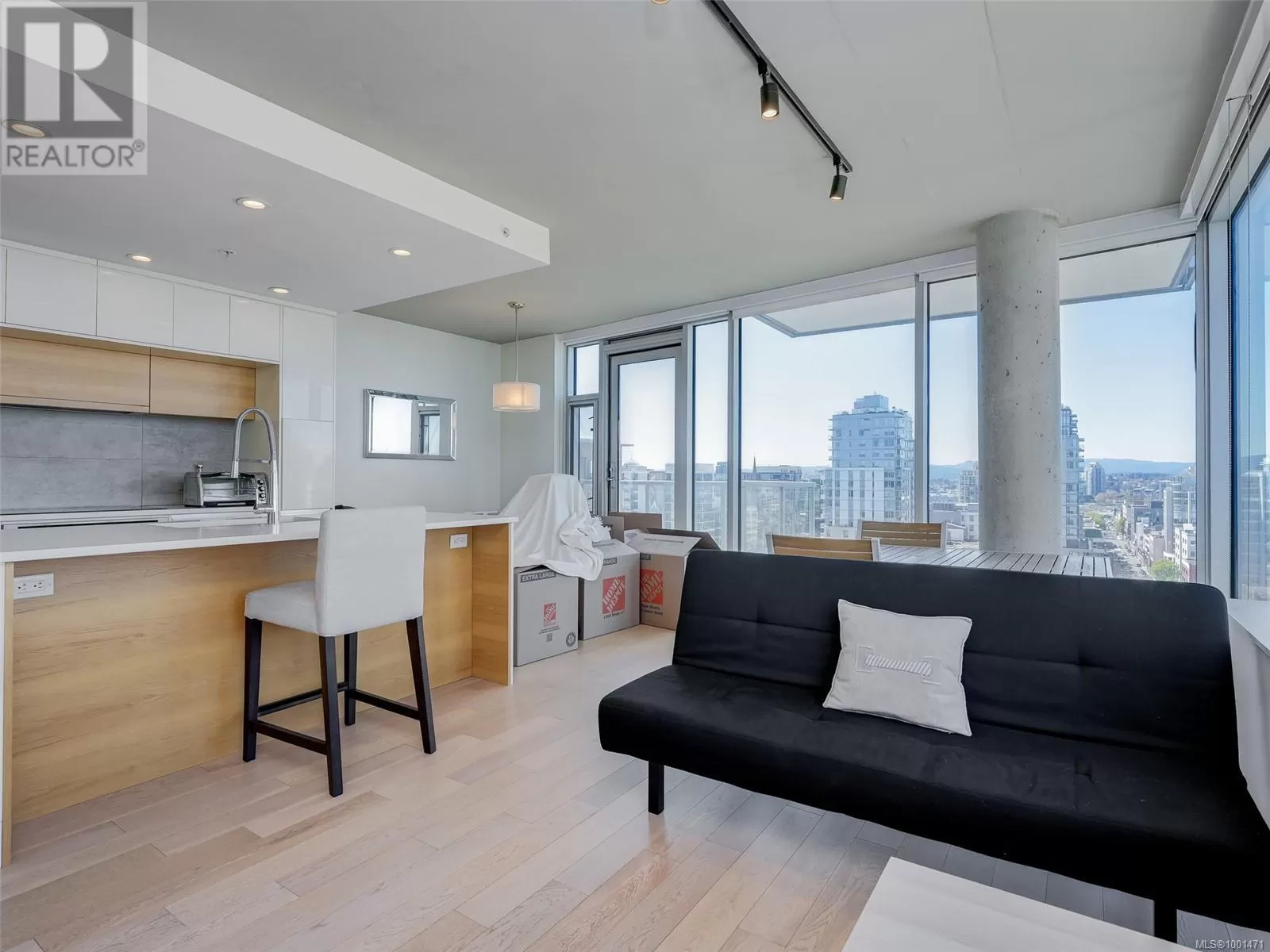 Absolutely gorgeous 1 bed 1 bath unit now available in the sought after 989 Johnson! Purchased directly from the developer, and now ready for new owners, this coveted unit located on the NW corner of the West building and perfectly situated on the 14th floor, you will love the spectacular views from every window! Amazing sunsets! Fabulous steel and concrete construction. Hardwood floors, quartz countertops, top quality fit and finishing throughout. Pet friendly! Plenty of natural light. Secure underground parking spot included! This functional floor plan truly is an urban oasis with a vibrant downtown living style! If you love Boutique shops, cafes, exceptional restaurants, local grocers, pubs, famous Beacon Hill Park, Dallas Road oceanfront plus live theatre, fitness centres and spa options - then this is for you. Investor alert: Invest now for a long term financial gain in this solid building. You'll be glad you did. Welcome home! (id:27476)
