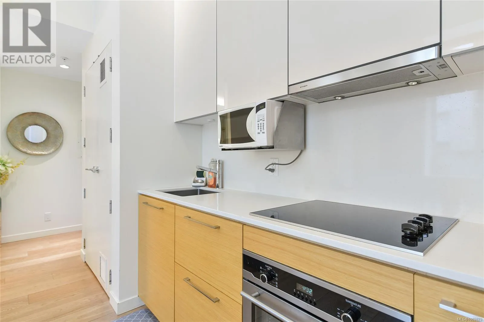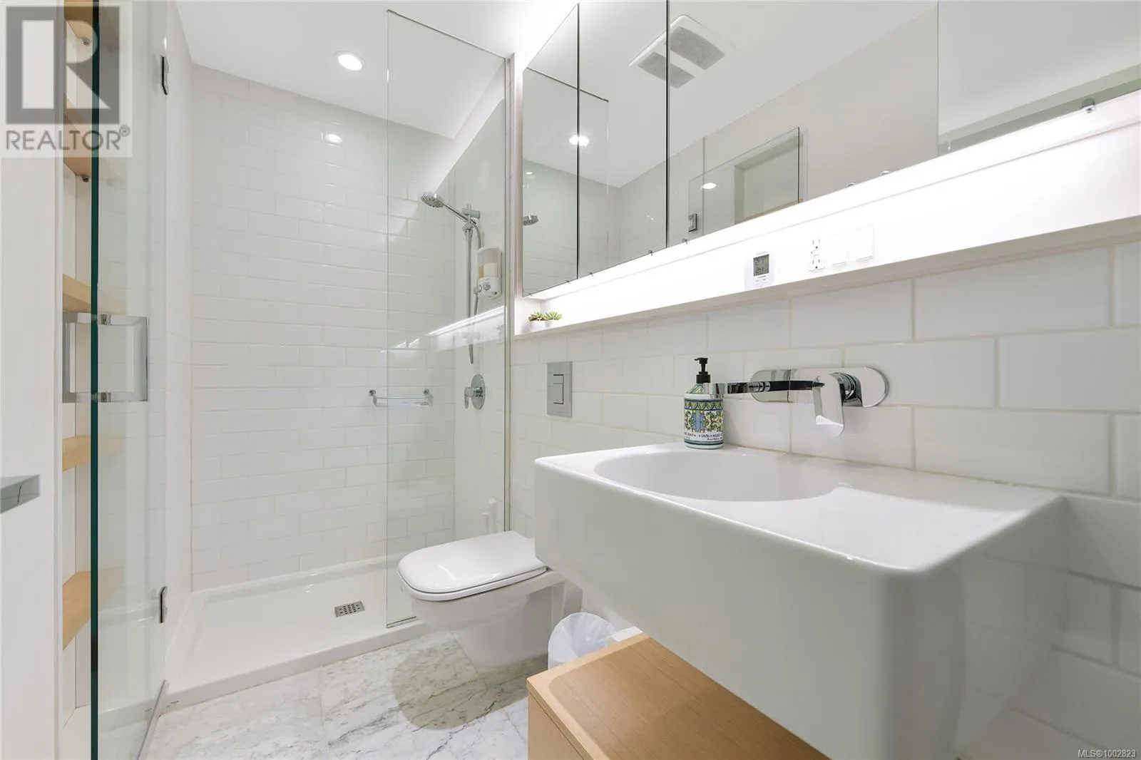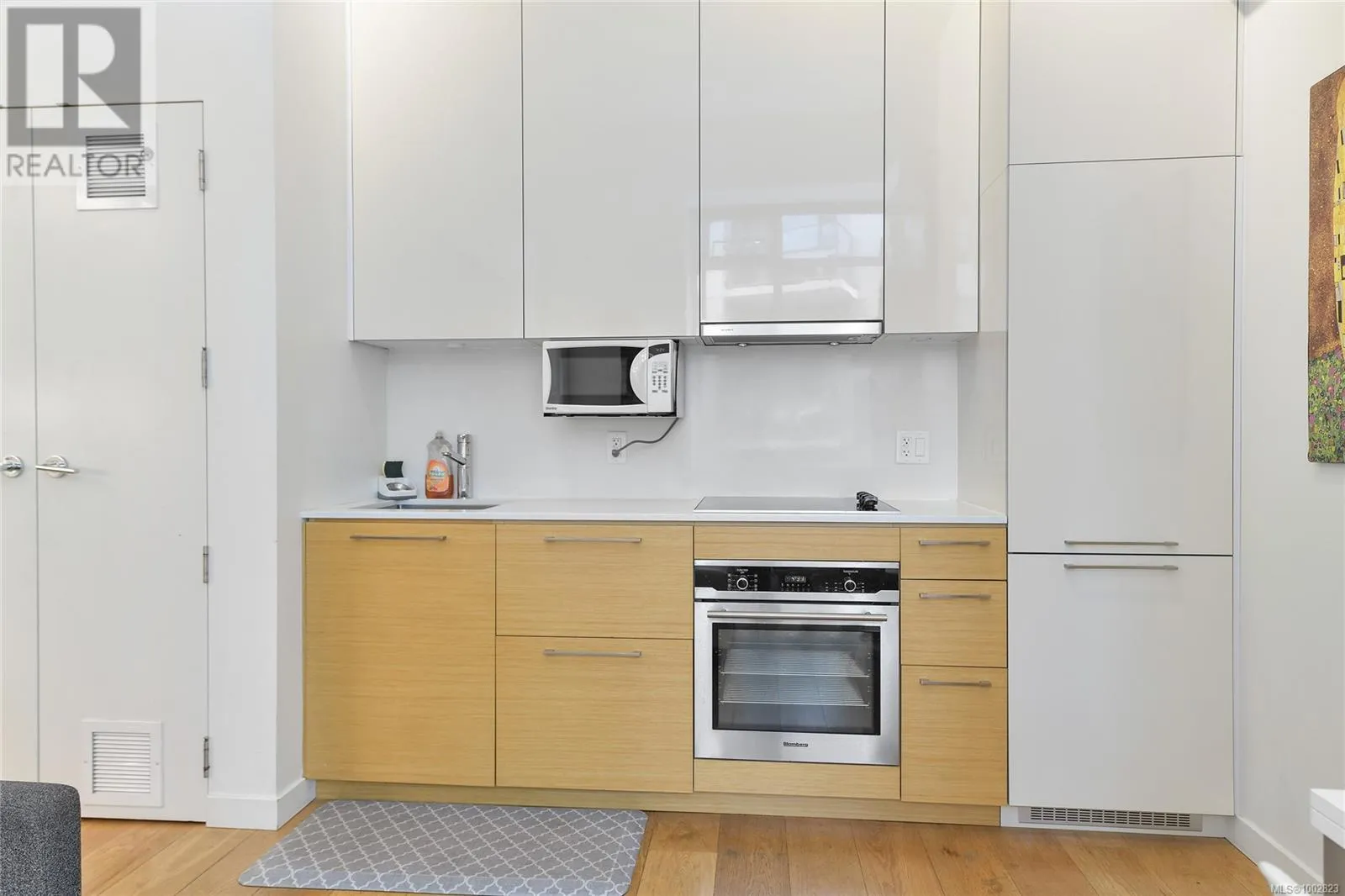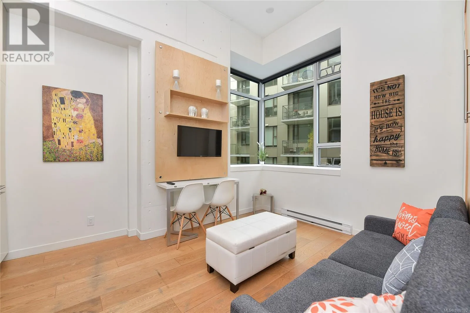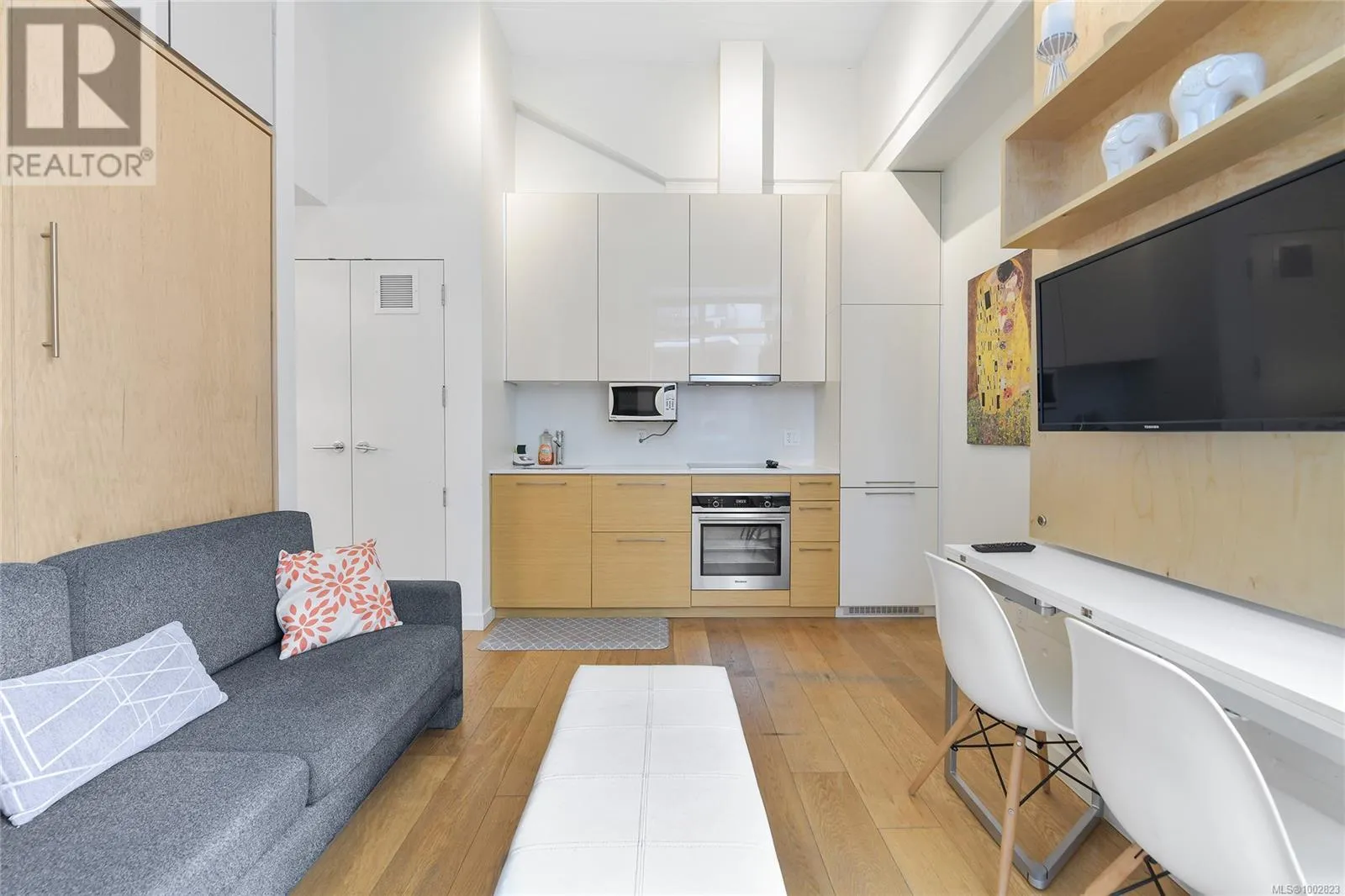 Welcome to the Janion, originally a railroad hotel built back in 1891, now reimagined by Reliance Properties & Merrick Architecture becoming a new landmark in Victoria's Upper Harbour District. You'll love the location, flanked by China Town, Market Square and Bastian Square with great shopping and restaurants in the LoJo area. This studio unit offers in suite laundry, highly functional sofa/Murphy bed, 12' ceilings, built in storage, a well thought out floorplan that packs a lot of punch for its size. Enjoy working harbour ocean views via 2 excellent sized windows. This unit is one of the newer units in the building back when Reliance added on to the original structure. Separate storage locker. Shared amenities include kayak and bike storage, roof top BBQ area to entertain and take in the amazing views of the Inner Harbour and party room. Pets are allowed. (id:27476)
