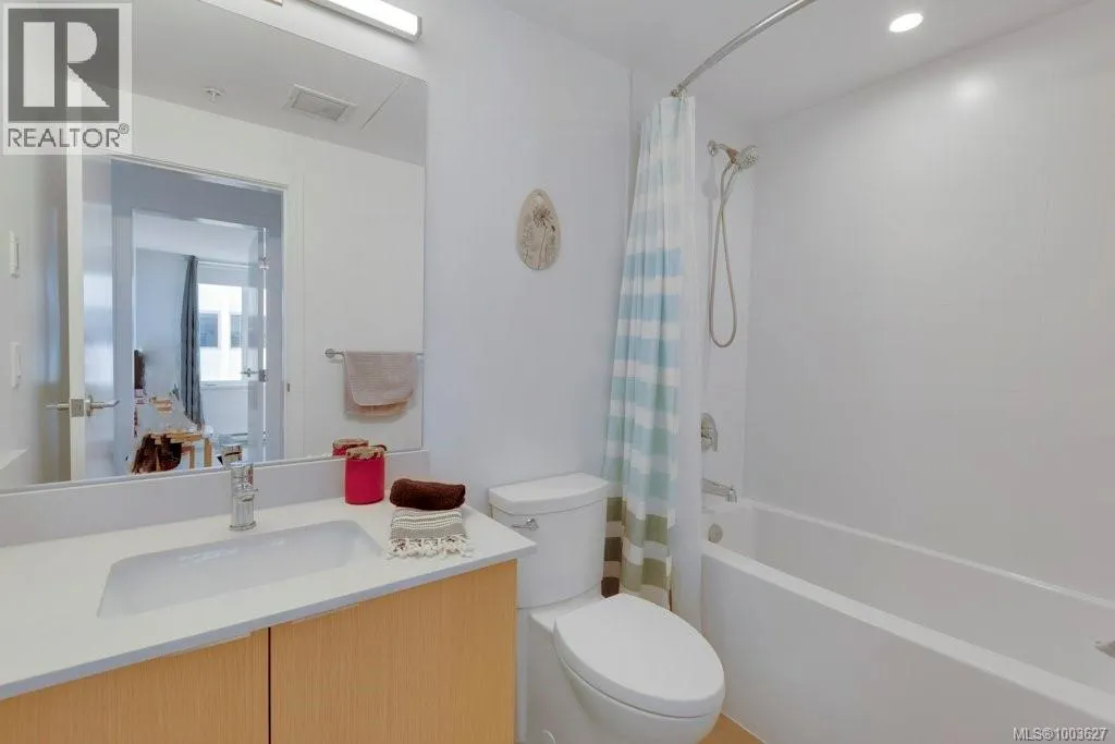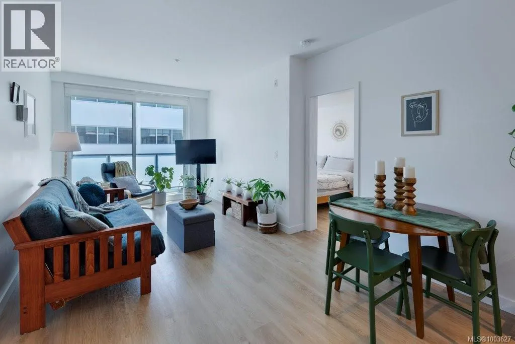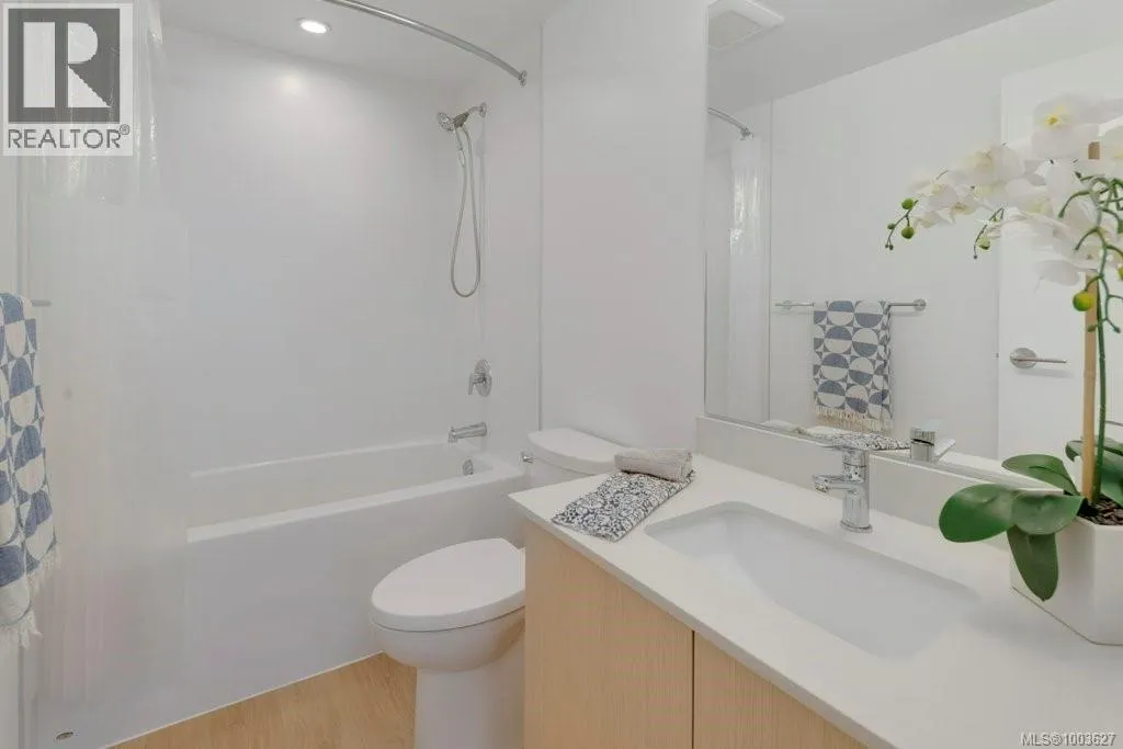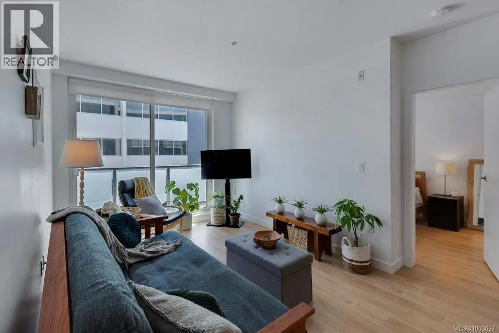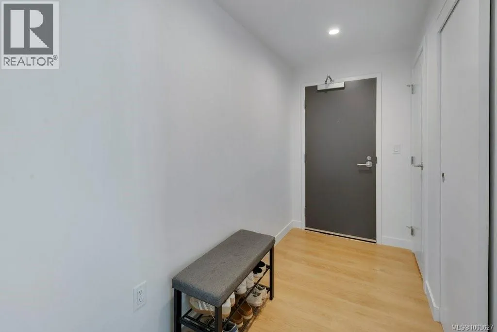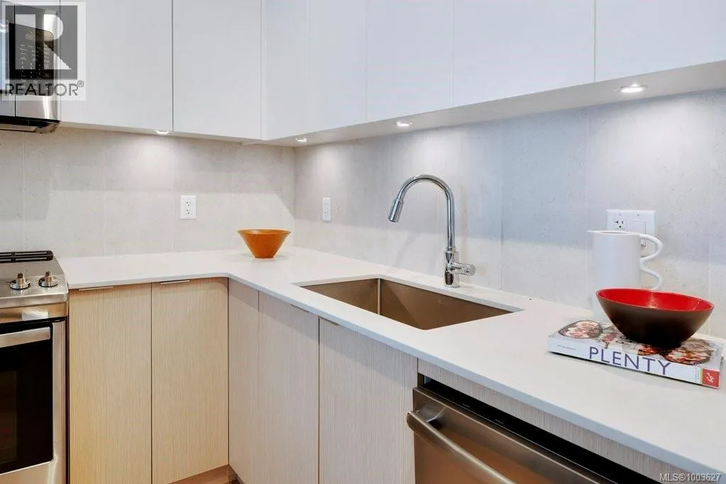 Tucked away on upper Johnson Street, Haven offers a convenient lifestyle with a near-perfect Walk Score and buses right outside your door, seamlessly blending downtown energy with Fernwood charm. Enjoy the convenience of the on-site pet run and wash station, along with peace of mind thanks to a comprehensive 2-5-10 warranty. Your home includes dedicated parking, a storage locker, and an exclusive e-bike and car-share program. Step inside this thoughtfully designed condo to a bright, open-concept living space. The 8'8'' ceilings and durable vinyl plank flooring create an inviting atmosphere. The gourmet kitchen features sleek cabinetry, stainless steel appliances, solid surface countertops, and a chic porcelain tile backsplash. For maximum privacy, the two bedrooms are situated on opposite sides of the living area. The primary bedroom easily accommodates a king-size bed and includes a spacious walk-in closet. This is the perfect place to call home. (id:27476)