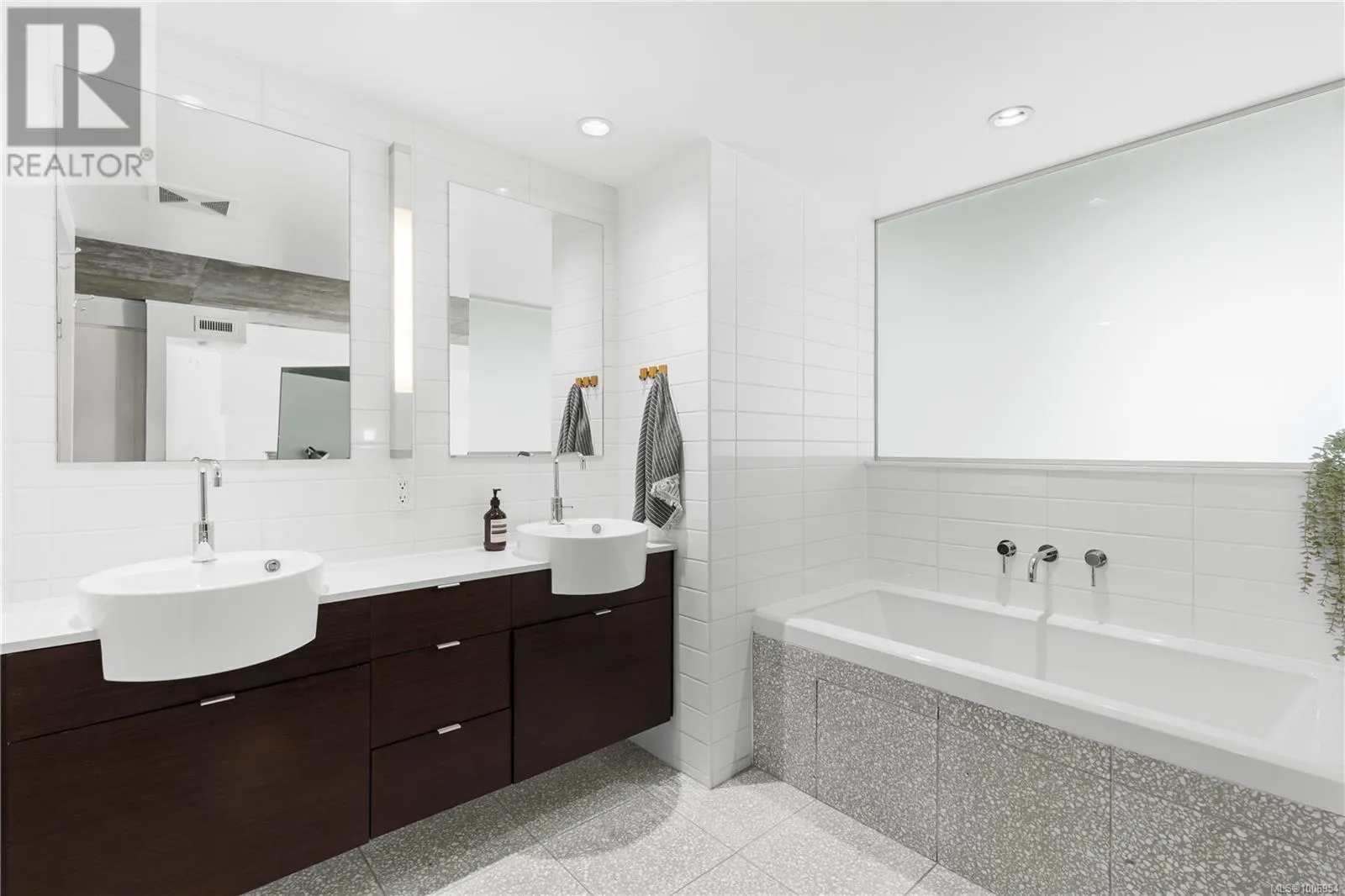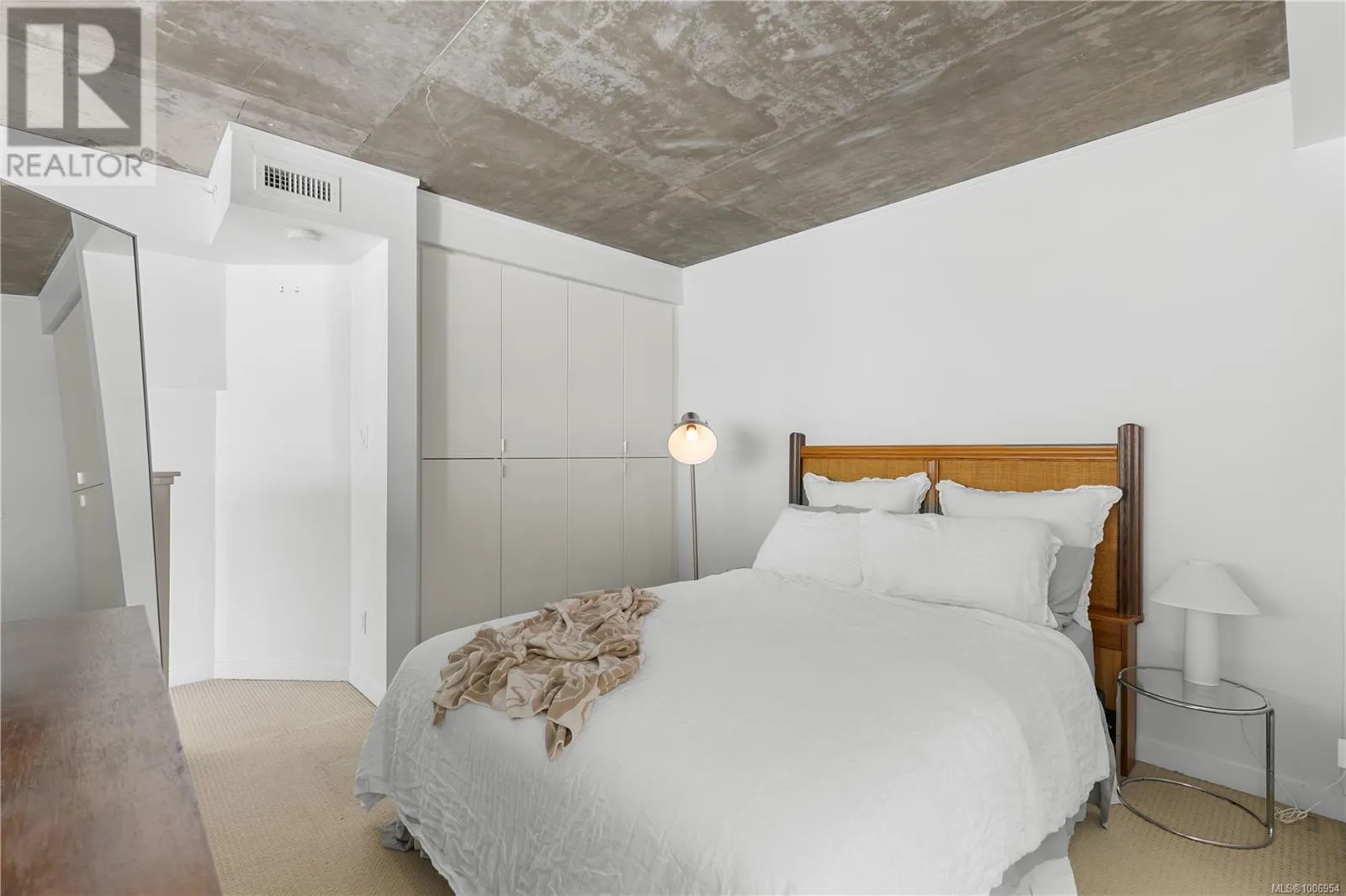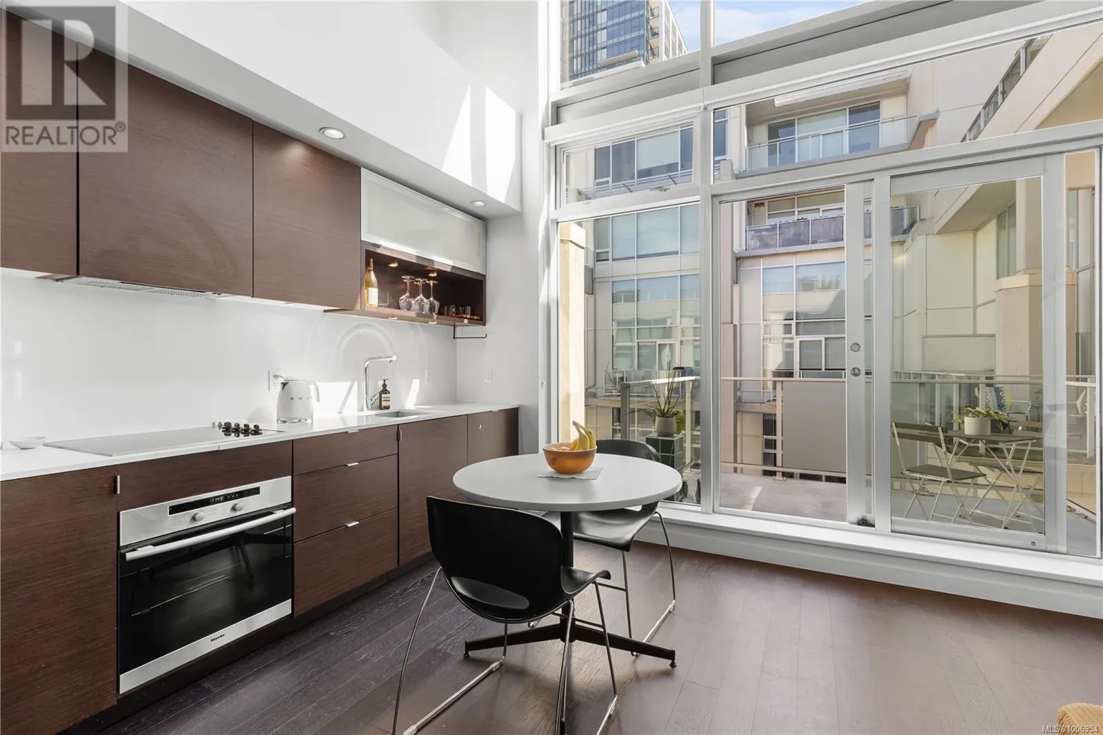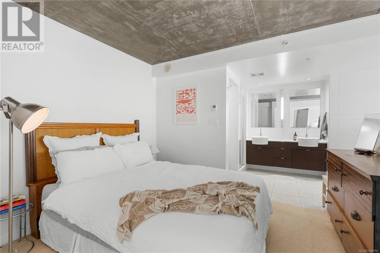 Light and Luxurious Loft in The Hudson Welcome to this meticulously maintained two-bedroom, two-bathroom residence in the Hudson, one of downtown Victoriaâs most sought-after landmark buildings. This quiet, courtyard-facing unit boasts a sun-soaked living space framed by expansive, oversized windows that flood the home with natural light. Step inside to a stunning main level featuring soaring 17-foot ceilings, an open-concept layout, and thoughtfully designed living area. The spacious living room flows seamlessly into the dining area and a well-appointed kitchen, with in-suite laundry tucked conveniently nearby. A three-piece bathroom and a generously sized bedroom complete the main floor. Upstairs, retreat to the large primary bedroom with ample closet space and a spa-inspired ensuite featuring double sinks, a deep soaker tub, and a separate walk-in shower. You will enjoy a wide range of amenities, including secure underground parking, a storage locker, bike storage, and access to a spectacular rooftop deck with complete with BBQs and sweeping sunset views. The strata fee includes heat, air conditioning, and hot water. Pets are welcome! Live just steps from shops, restaurants, transit, and the Inner Harbour, everything you love about downtown Victoria is right outside your door. (id:27476)
