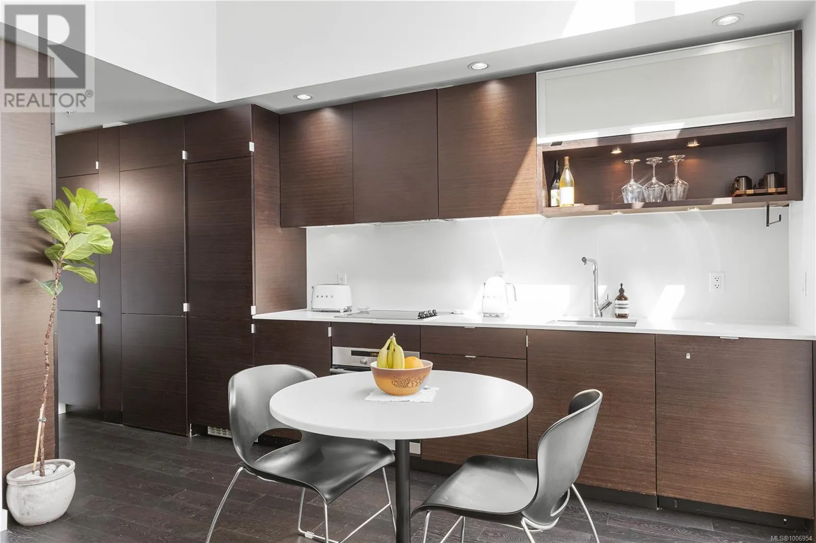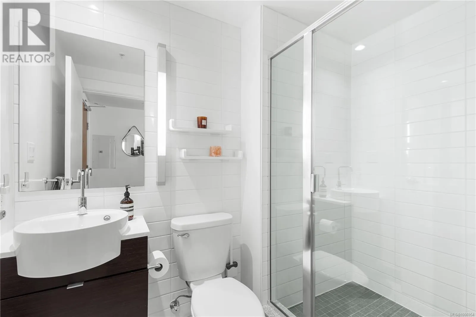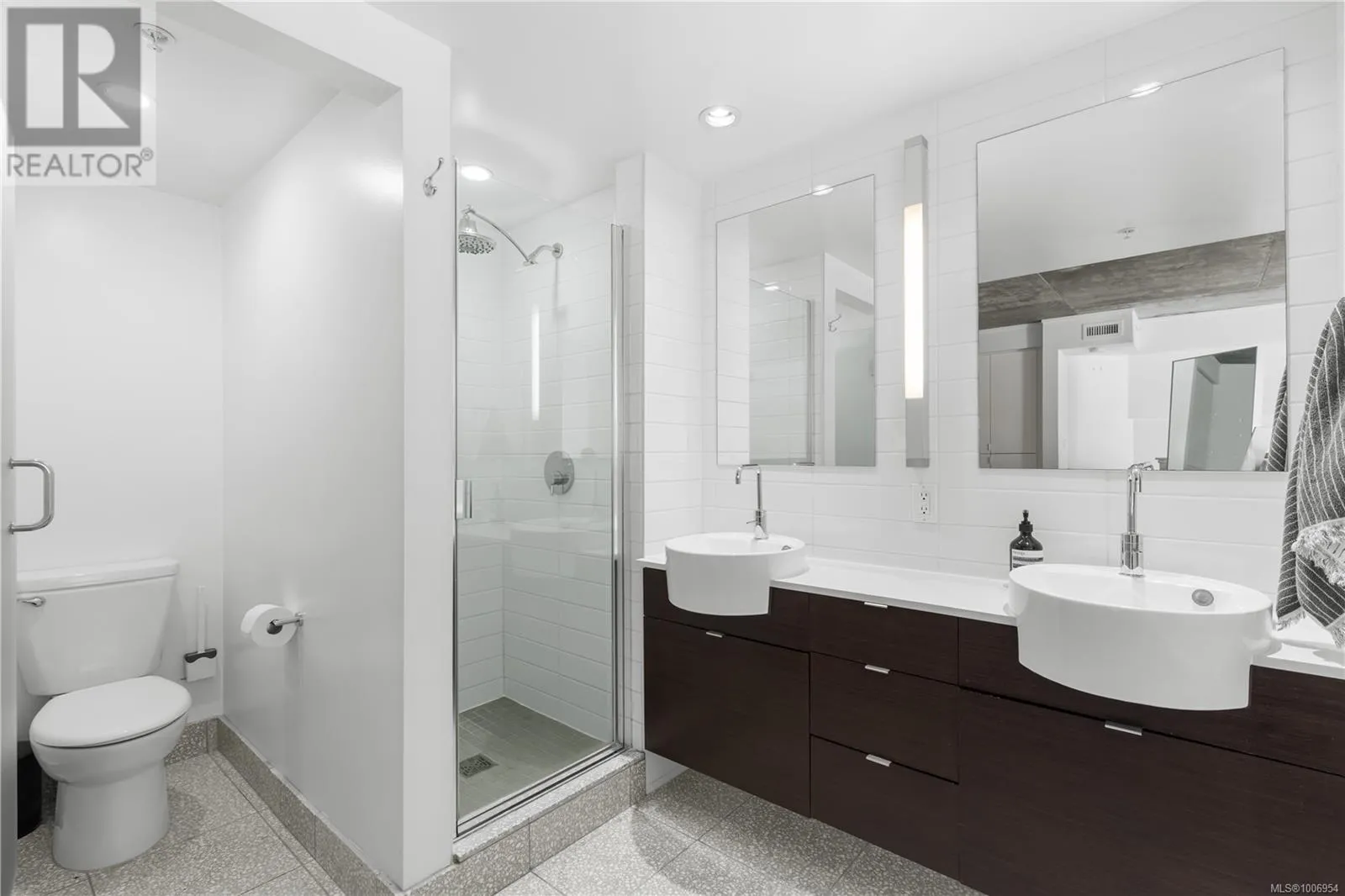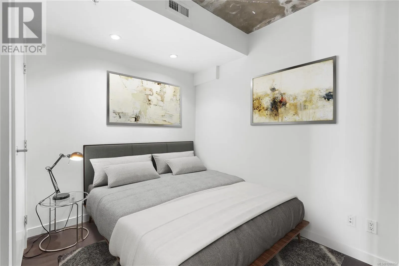 Light and Luxurious Loft in The Hudson Welcome to this meticulously maintained two-bedroom, two-bathroom residence in the Hudson, one of downtown Victoriaâs most sought-after landmark buildings. This quiet, courtyard-facing unit boasts a sun-soaked living space framed by expansive, oversized windows that flood the home with natural light. Step inside to a stunning main level featuring soaring 17-foot ceilings, an open-concept layout, and thoughtfully designed living area. The spacious living room flows seamlessly into the dining area and a well-appointed kitchen, with in-suite laundry tucked conveniently nearby. A three-piece bathroom and a generously sized bedroom complete the main floor. Upstairs, retreat to the large primary bedroom with ample closet space and a spa-inspired ensuite featuring double sinks, a deep soaker tub, and a separate walk-in shower. You will enjoy a wide range of amenities, including secure underground parking, a storage locker, bike storage, and access to a spectacular rooftop deck with complete with BBQs and sweeping sunset views. The strata fee includes heat, air conditioning, and hot water. Pets are welcome! Live just steps from shops, restaurants, transit, and the Inner Harbour, everything you love about downtown Victoria is right outside your door. (id:27476)