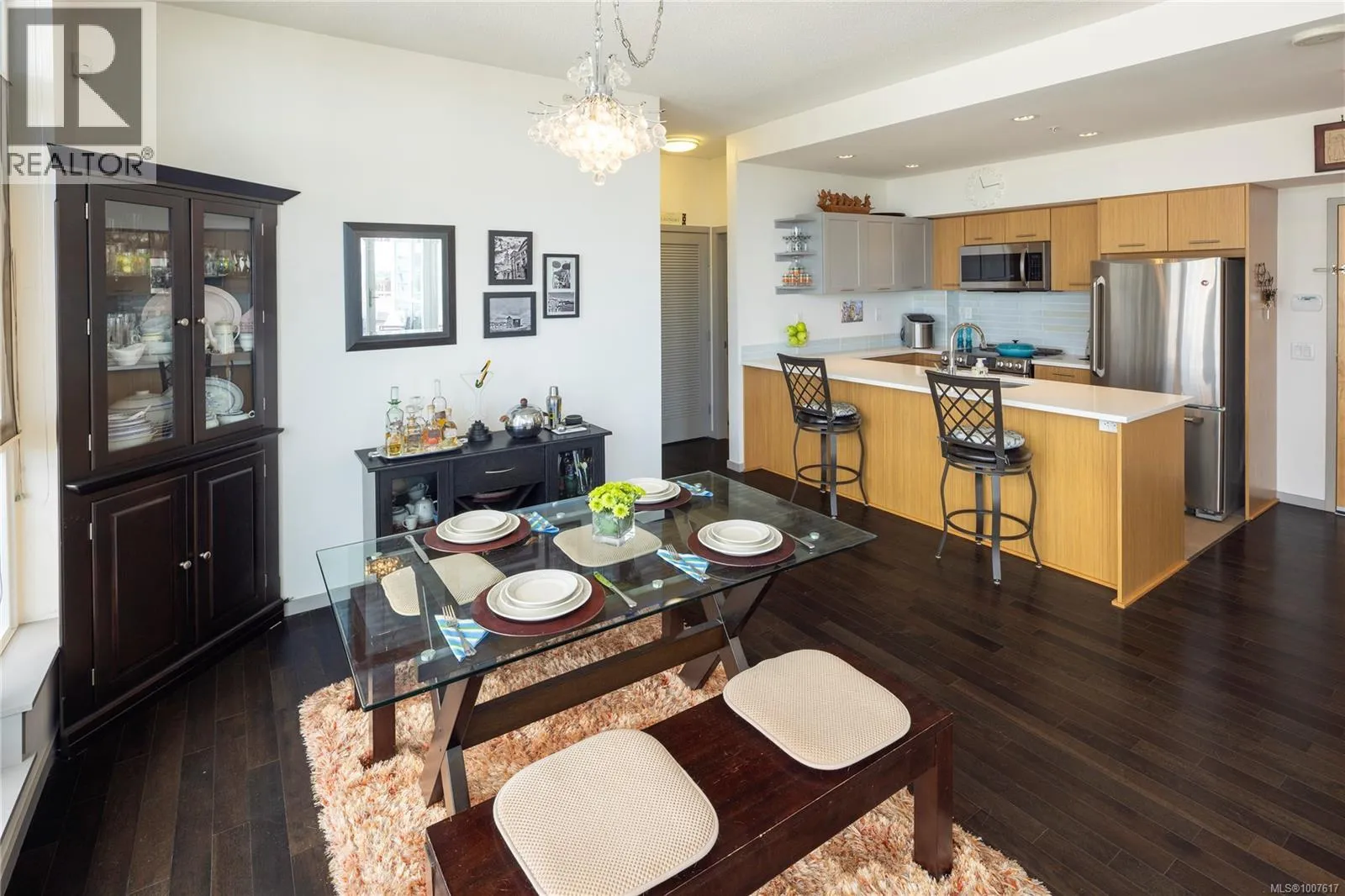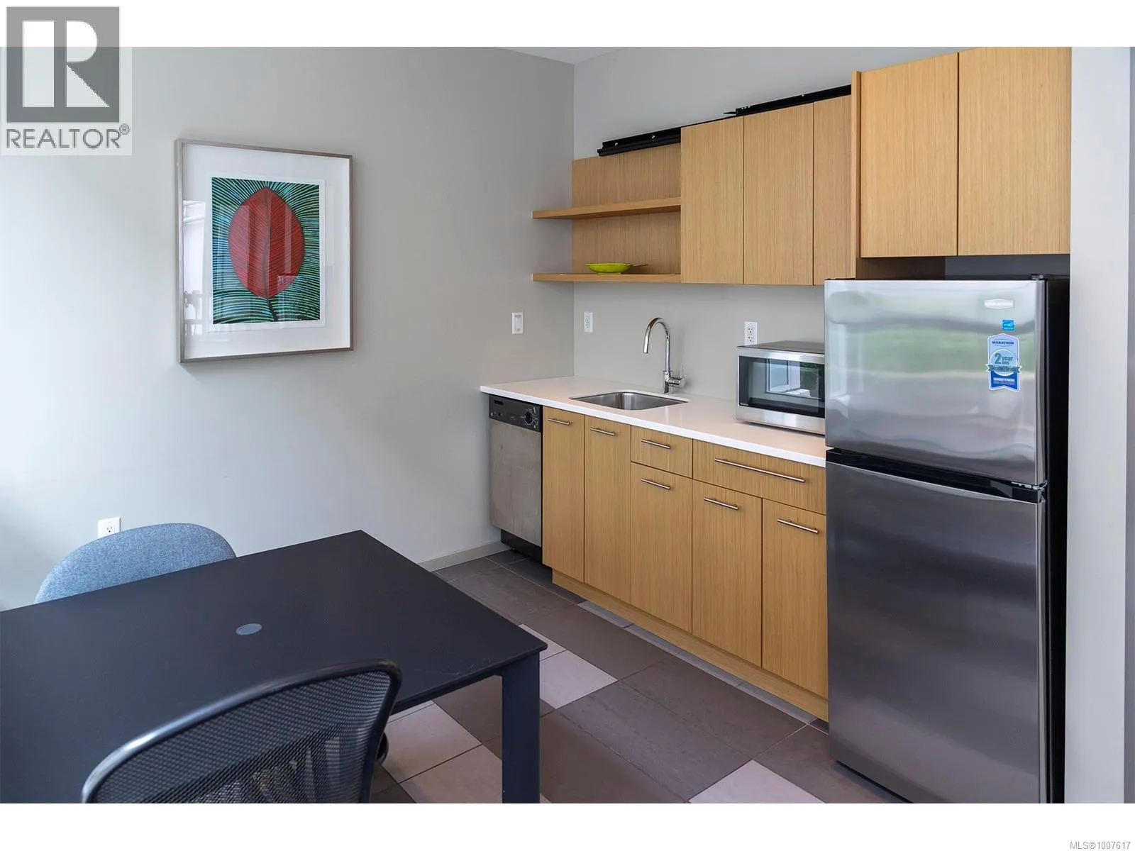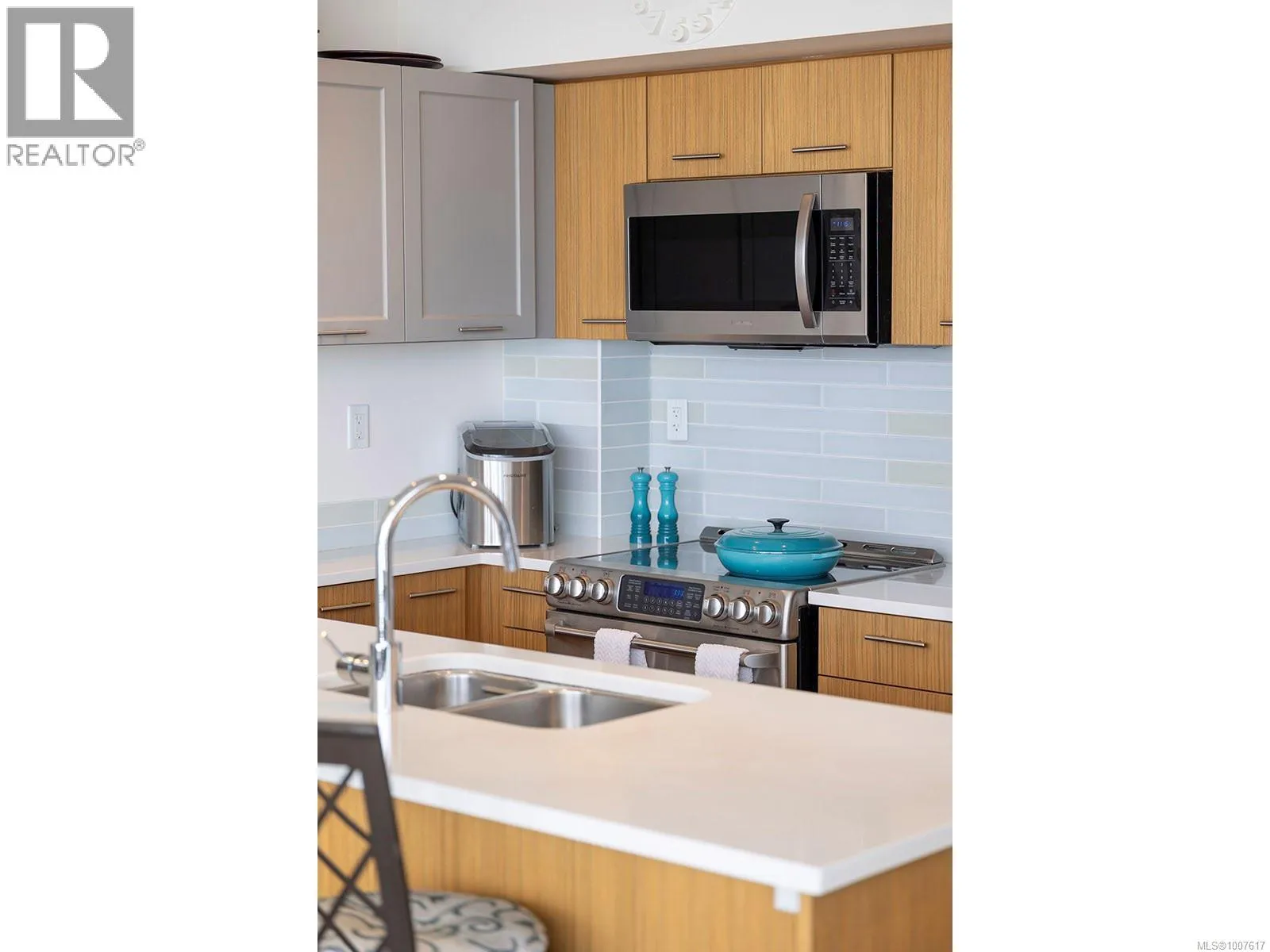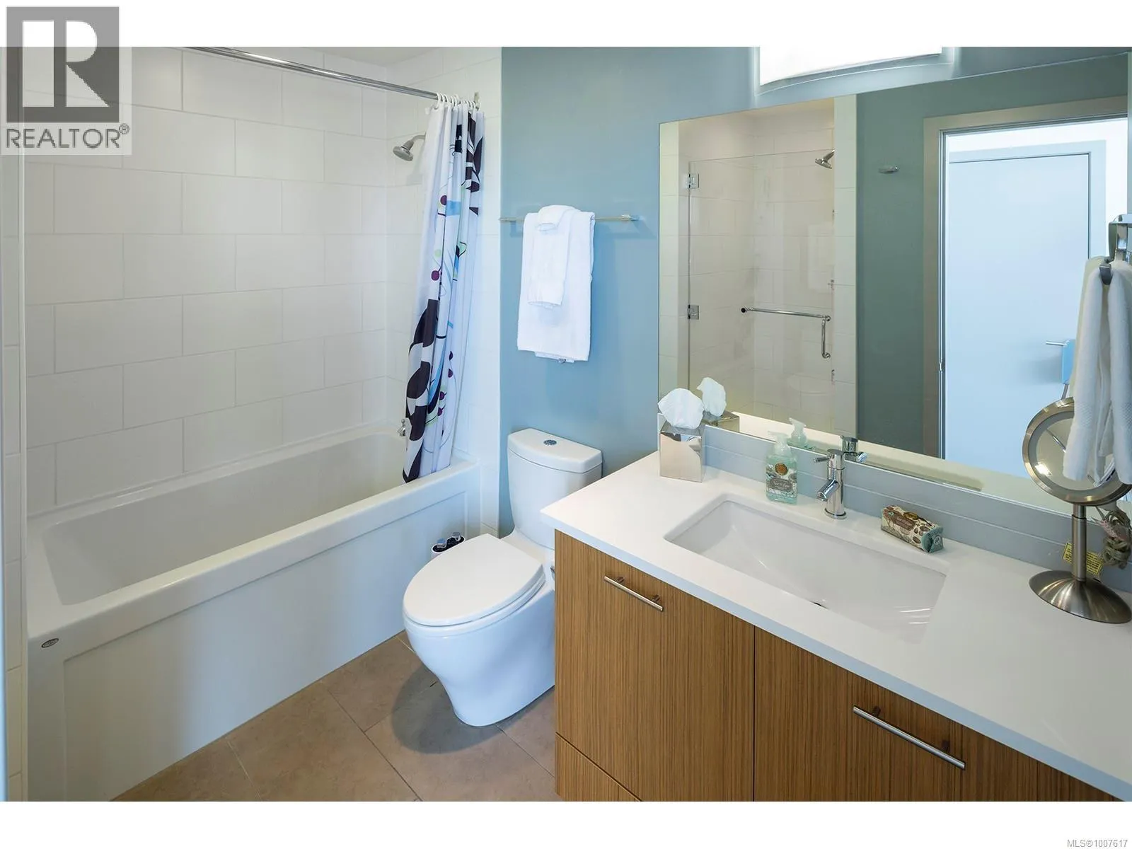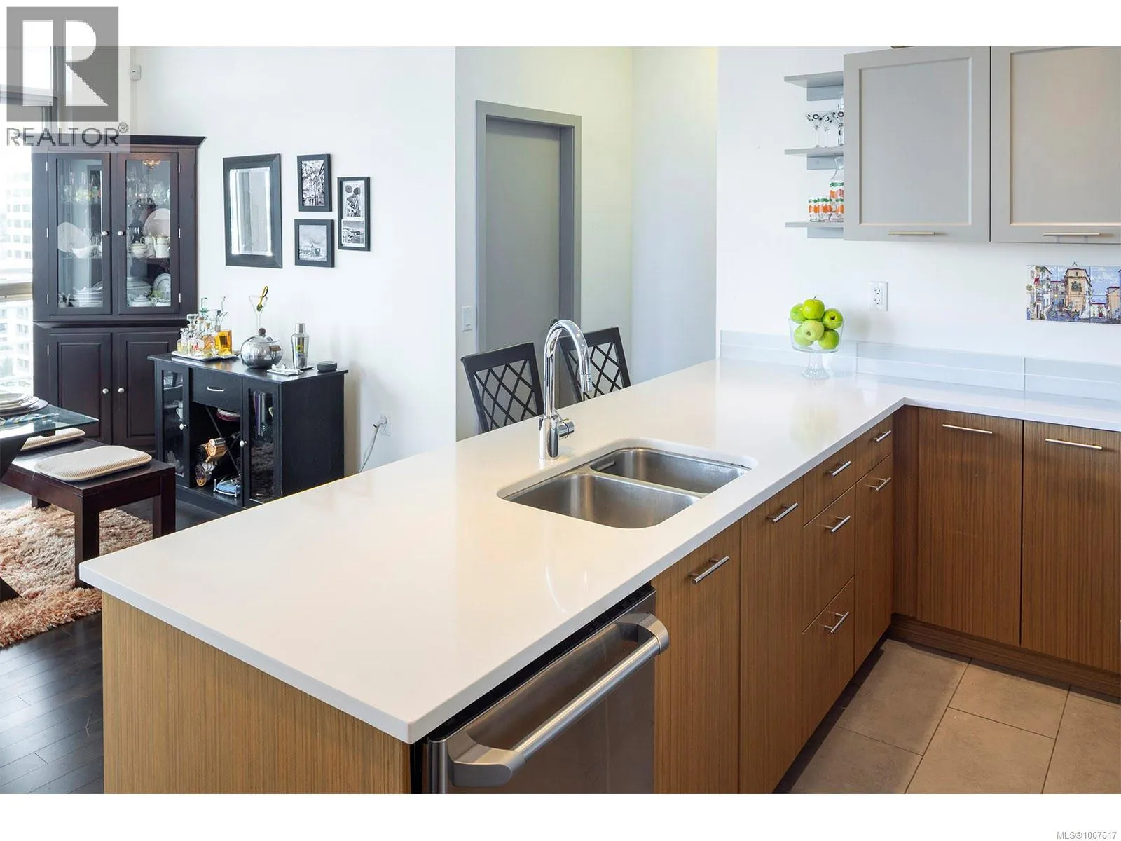 Step into Penthouse 1502, where panoramic ocean and city views fill expansive floor-to-ceiling windows. The open layout features wood floors and high ceilings, offering a comfortable space for daily living and relaxed entertaining. A contemporary kitchen with quartz counters flows into bright dining and living areas. Bedrooms are thoughtfully separated for privacy. The spacious primary suite includes dual closets and an ensuite with heated floors, soaker tub, and separate shower. A second bedroom or office and full guest bath complete the plan. Two large balconies (260+ sq ft) extend the living space outdoors, with gas and water hookups on the larger, west-facing side. Building amenities include a rooftop terrace with 360° views, full lounge with kitchen, patio with BBQ, and a resident caretaker. Located in one of Victoriaâs most walkable neighbourhoodsâjust minutes from the Inner Harbour, cafés, dining, shopping, and nightlife. A rare penthouse offering in the heart of the city! (id:27476)