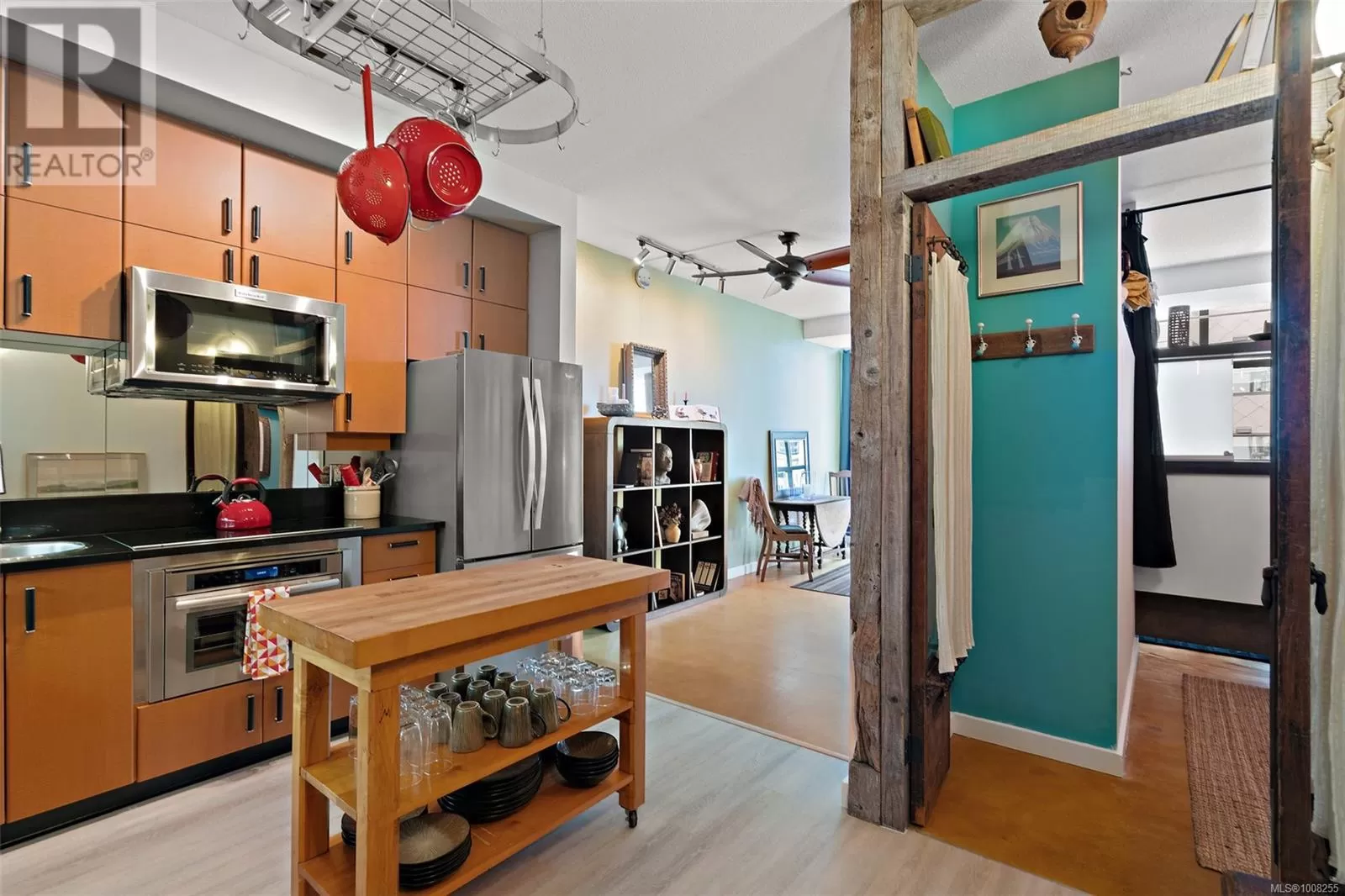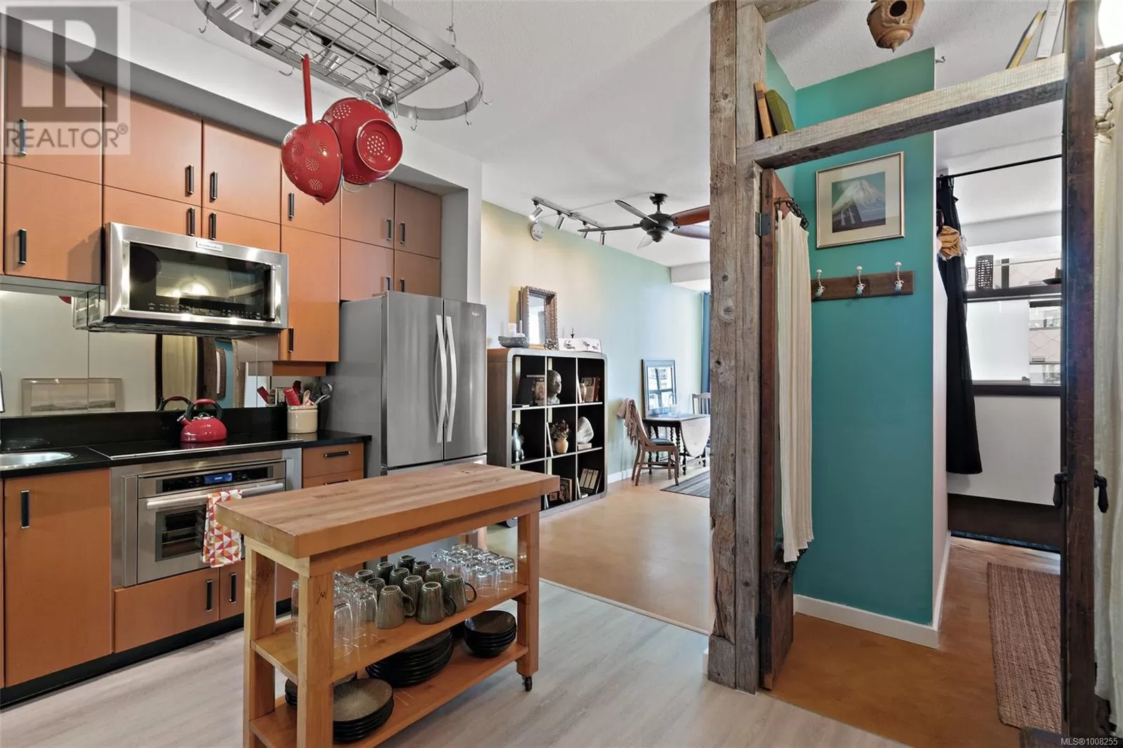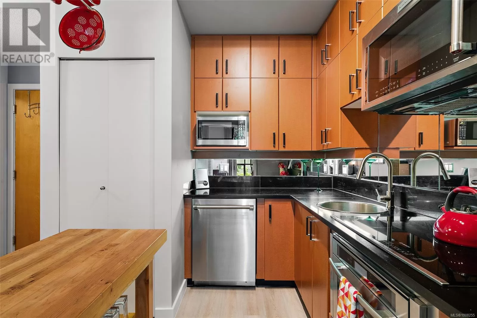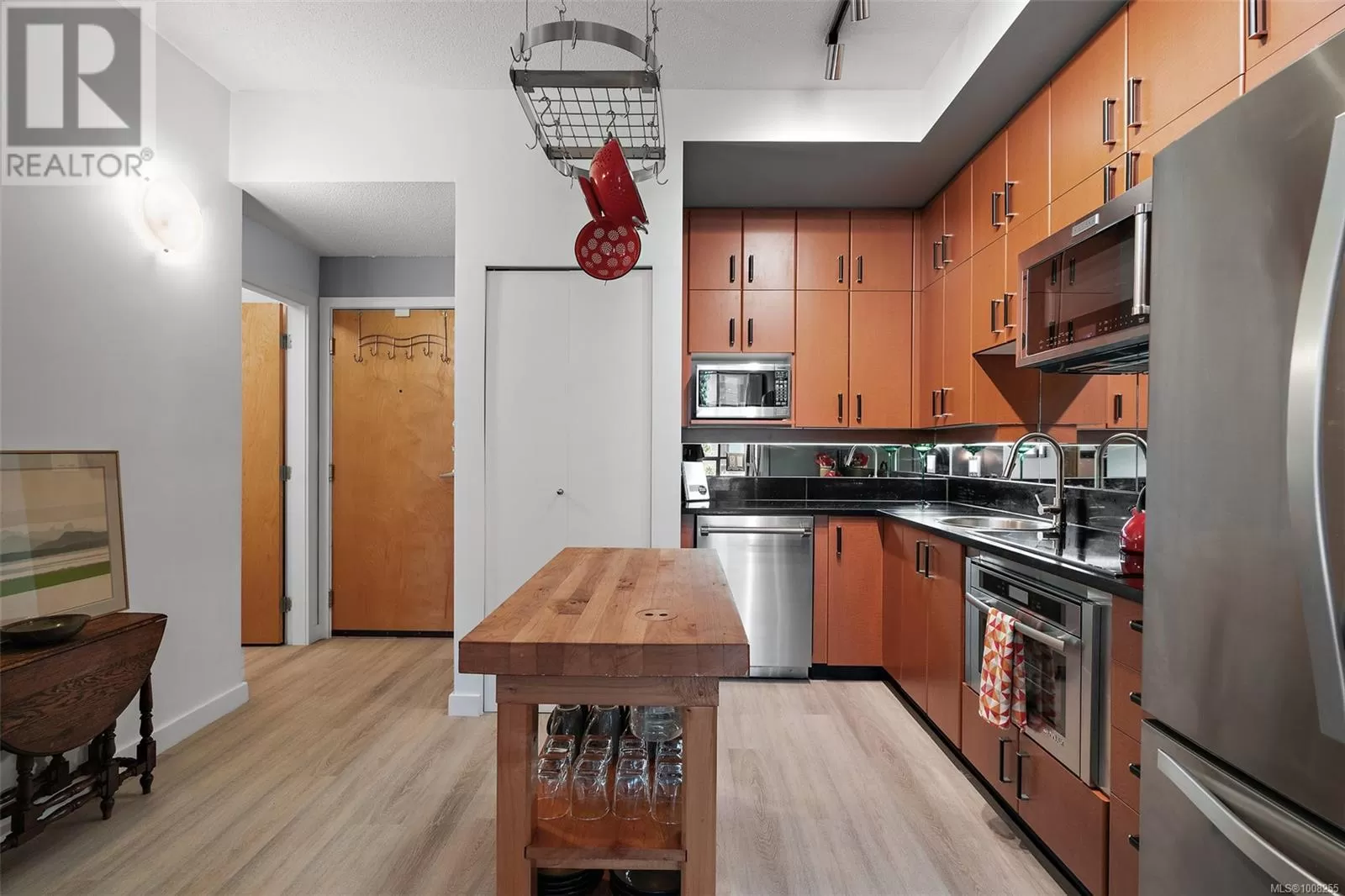Absolutely Incredible Opportunity to Live in a Vibrant Downtown Atmosphere Surrounded by Trendy Shops, Exquisite Boutiques and Victoria's Finest Restaurants ! This ''HARBOUR VIEW'' SOUTH FACING Condo Located on the QUIET ''Pearl side'' at Mermaid Wharf, Offers Solid ''Steel and Concrete'' Construction, ONE SECURED UNDERGROUND PARKING STALL , Secured Access, Kayak Storage and a Very Low Monthly Assessment that Includes Gas, Hot Water, Insurance, Management etc... Wonderfully Appointed Kitchen, tastefully updated throughout including NEW DOUBLE JENN AIR SPEED & CONVECTION OVENS, Gas Fireplace, In-Suite Laundry, Huge Bright Windows Overlooking the Harbour, and Nice High Ceilings Exemplify a Carefree Lifestyle ! Spacious Rooftop Patio with BBQ !! Pets Are Welcome ! This suite is meticulous and a pleasure to view, don't miss out. (id:27476)