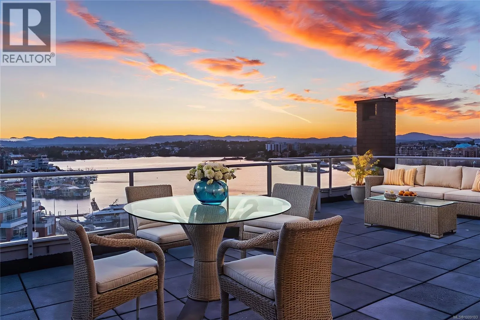 Live the Victoria dream in this exceptional 3 BR penthouse, where a breathtaking Inner Harbour view greets you from every room. This residence is a true gem, offering a bright and airy open-concept layout that's ideal for both relaxing & entertaining. The living space flows seamlessly to your expansive, west-facing 1,158 sqft private patio, which serves as the ultimate front-row seat to the city's vibrant waterfront life. From morning coffee to evening cocktails, it's the perfect place to soak in the scenery. The three spacious bedrooms provide a luxurious escape, while the prime location places you just a short stroll from Victoria's renowned restaurants, shops, & cultural attractions.Located in the coveted Laurel Point, this resort-like complex offers an array of amenities, including a heated outdoor pool with a patio area, an exercise room, a lounge, a workshop. With great walkability & easy access to bike lanes, this is an unparalleled opportunity to embrace a vibrant lifestyle. (id:27476)