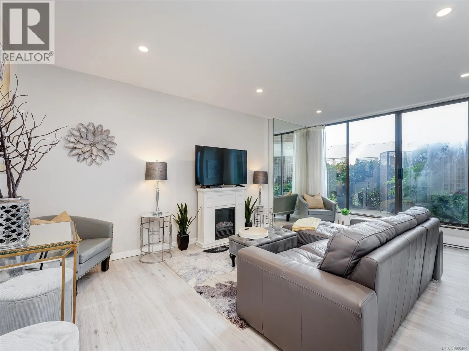 OPEN HOUSE SAT NOV 15th 2-4pm. Experience life at the renowned Laurel Point, one of Victoriaâs premier Inner Harbour condo buildings. This spacious 2-bedroom, 2-bath home features a brand-new kitchen with quartz countertops, new flooring, and fresh paint throughout. A peaceful garden-level suite, it boasts a large private patioâperfect for morning coffee or entertaining guests. Just steps from the heated pool and the scenic waterfront pathway, it offers a tranquil retreat for relaxation. Enjoy generous room sizes, in-suite laundry, and a functional layout designed for comfort and convenience. Laurel Point is a well-managed steel-and-concrete building with top-tier amenities, including a heated outdoor pool, gym, sauna, games room, workshop, bike storage, and secure underground parking. Ideally located just moments from the waterfront, Fishermanâs Wharf, and downtown restaurants and shops, this is a rare opportunity to embrace Victoriaâs vibrant, walkable lifestyle. (id:27476)
