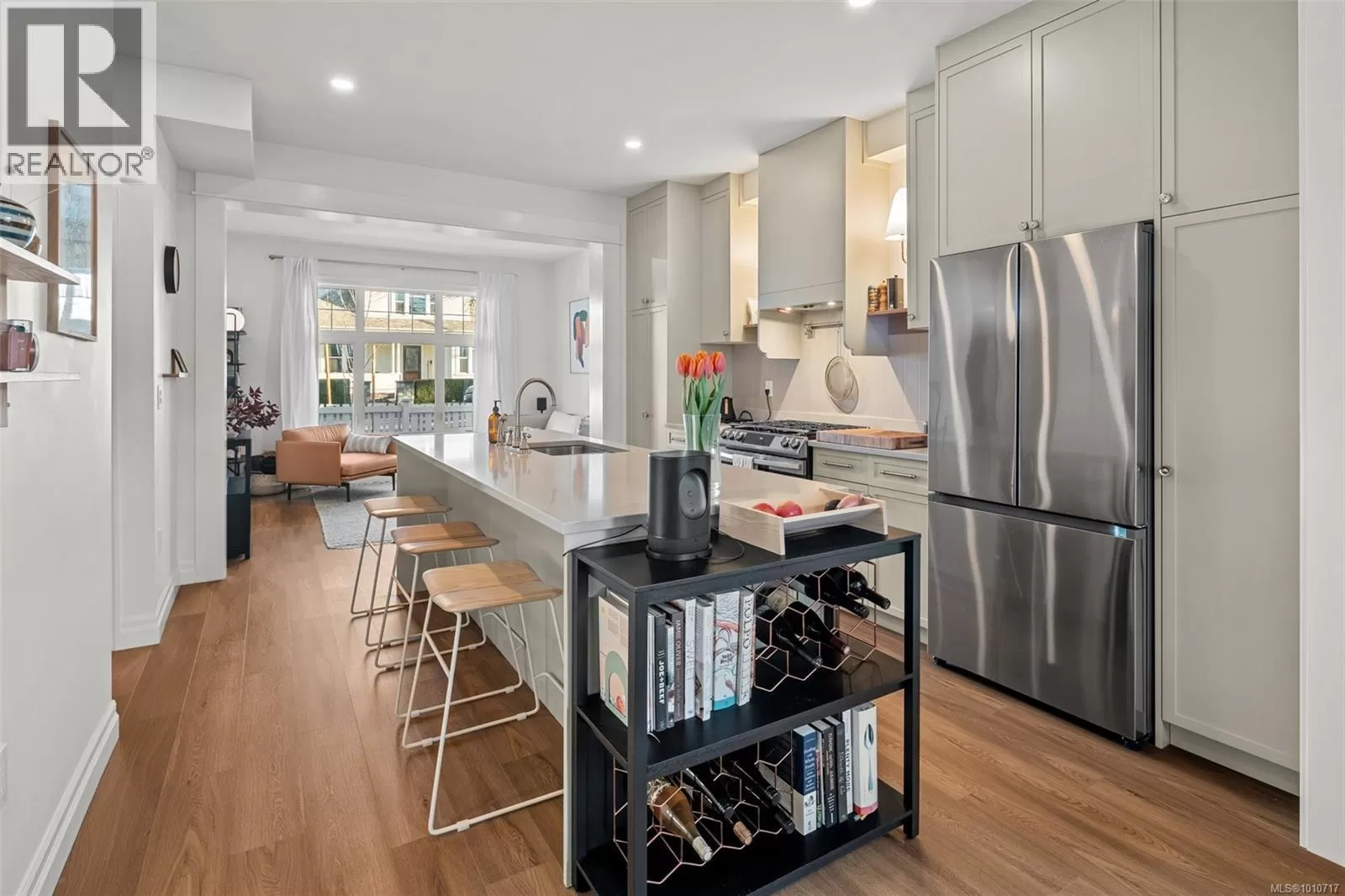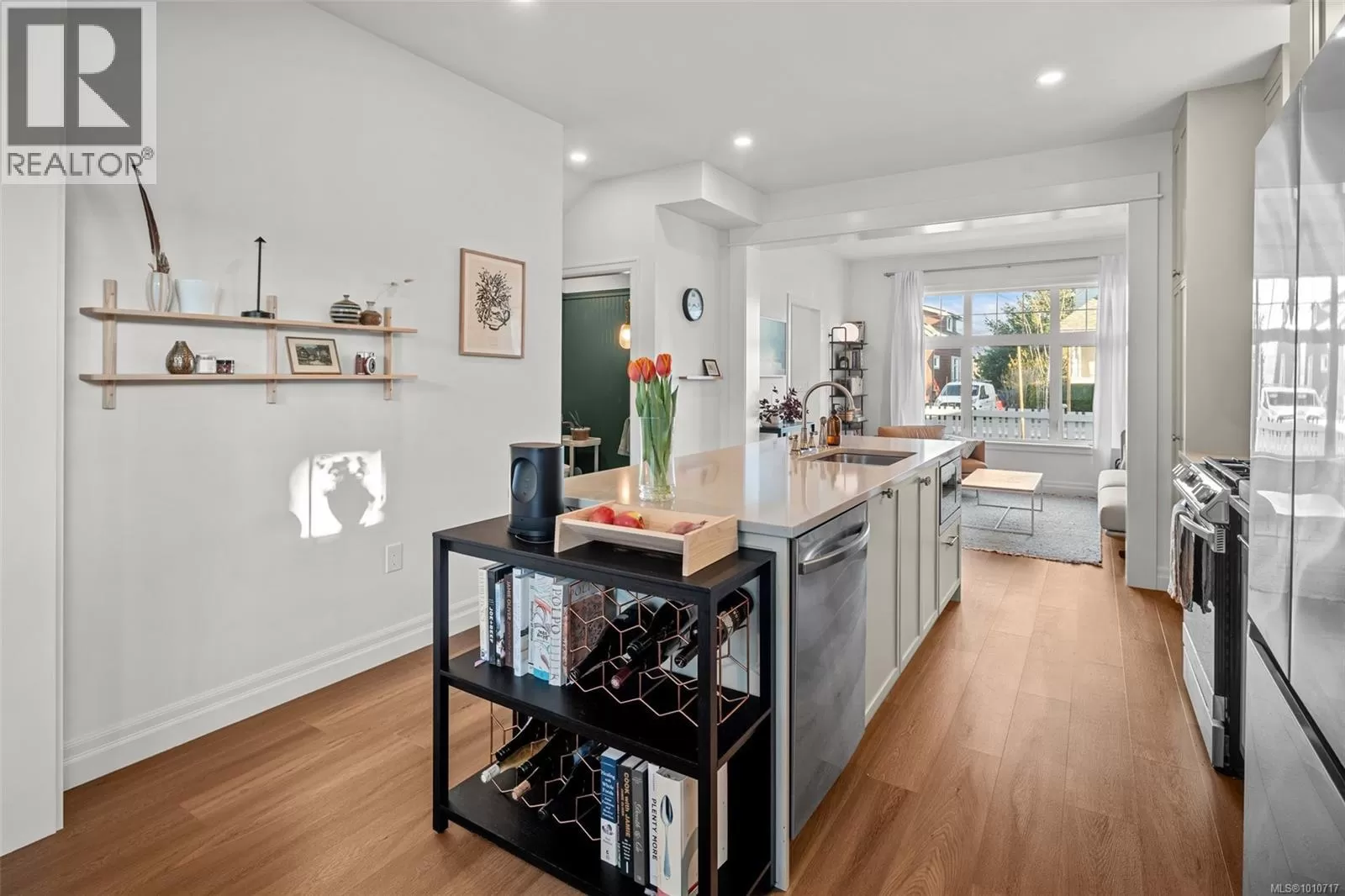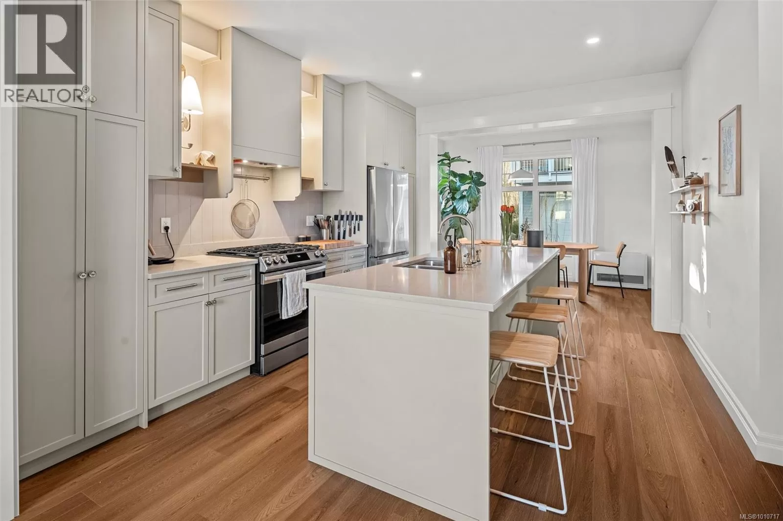 WELCOME to a Charming newly built 2-level Townhome tucked away on a tree lined street, in family oriented Neighbourhood near the Gorge Waterway. This stunning corner unit offers 4 spacious bedrooms and 3 bathrooms. As you enter, youâll be greeted by a beautifully designed open main floor that boasts 9'0 ceilings, full-sized living & dining roomsâperfect for both everyday living and entertaining. The well-appointed kitchen is a dream, featuring shaker-style cabinetry, a full-height pantry, and premium Samsung appliances, including a slide-in gas range. Thoughtful details such as utensil and pot/pan rails, built-in recycling and compost stations, and convenient broom storage make this kitchen as functional as it is stylish. Venture upstairs to discover 4 generously sized bedrooms that offer versatility for any family's needs. The primary bedroom features a large walk-in closet and an ensuite bathroom that showcases timeless elegance with its feature wall lighting, heated tile floors, and a frameless glass showerâan oasis for relaxation.This 2023 Smart Home is like new and has plenty of storage, a laundry closet, spacious garage, a cute yard and close to amenities. Price includes GST. Remainder of 2-5-10 warranty. (id:27476)