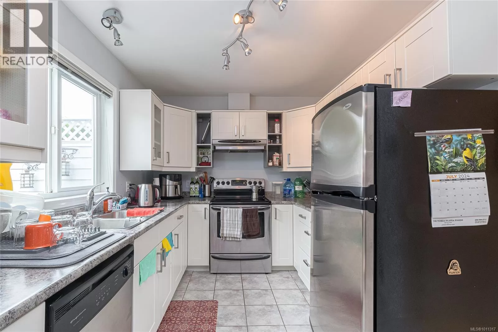 Tucked away in the sought-after Oaklands neighbourhood, this charming 3-bedroom townhome offers the perfect blend of comfort, convenience, and community. Part of a rare 3-unit complex, this home enjoys a quiet setting while being just steps from Hillside Mall, schools, parks, transit, and more. Inside, youâll find a spacious, light-filled living and dining area complete with a cozy fireplace. The sunny kitchen features stainless steel appliances, an eating nook, and direct access to a private sunroom and quaint patioâperfect for morning coffee or enjoying the day. Upstairs, the thoughtful layout provides three bedrooms, including a primary with 3-piece ensuite, plus an additional full bathroom, skylights, and in-suite laundry. The attached single-car garage, driveway parking, and lovely garden outlook create great curb appeal. The current great tenants would love to stay, making this an ideal opportunity for investors or those seeking future flexibility. (id:27476)