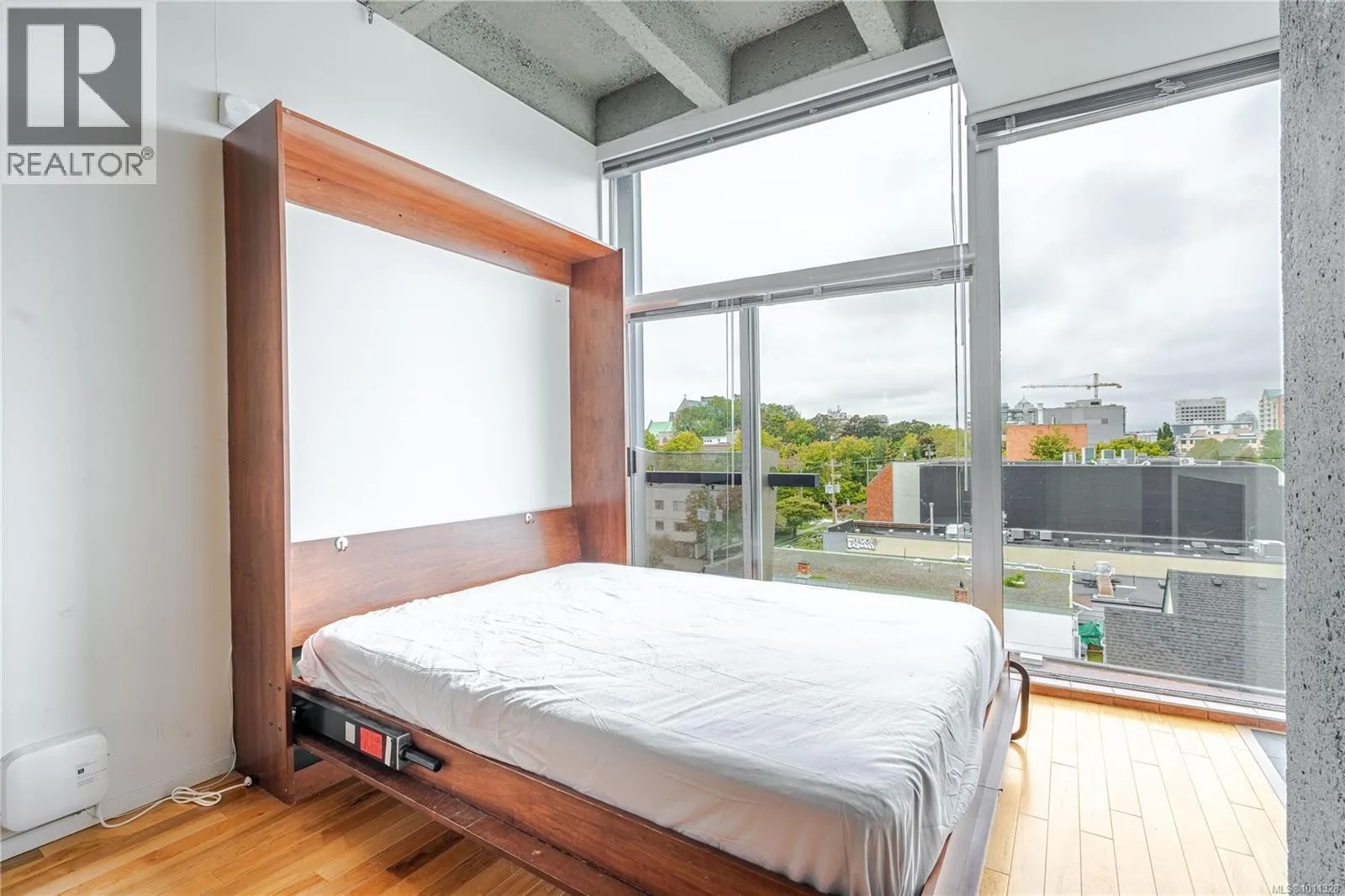 Welcome to unit 512 at the highly sought after Mosaic building. Located on the West side of the building to minimize traffic noises while appreciating stunning sunsets over the city. Â The building showcases warehouse style urban living with open ceilings, exposed concrete pillars and steel pipes. The charming hard wood floor is a beautiful contrast warming up the space. Open concept living including a full kitchen, gas fireplace and Murphy bed. There is a small juliet balcony that would be perfect to add a bar top to enjoy meals or a morning coffee while looking out over downtown Victoria. The bathroom is spacious with slate flooring and custom tile work. Located in the upper Fort District only minutes to downtown, Cook Street Village, the oceanfront and conveniently on major bus routes. In a safe area of town away from the trouble spots you will have no concerns wandering through the adorable shops, bakeries, restaurants and more. Separate storage and a bike room, lots of street parking available for guests. The building is zoned for live/work life! Call today for your private tour of this charming studio home and enjoy ease of life in the vibrant city of Victoria. (id:27476)