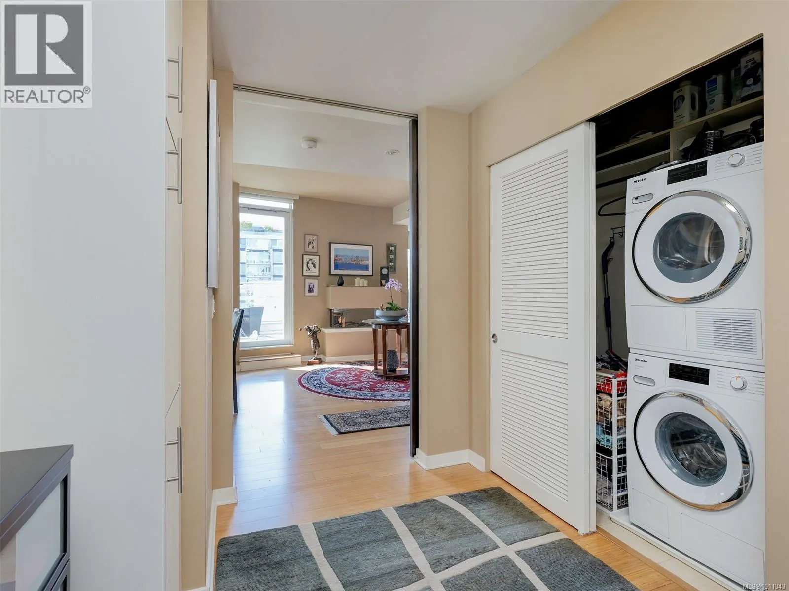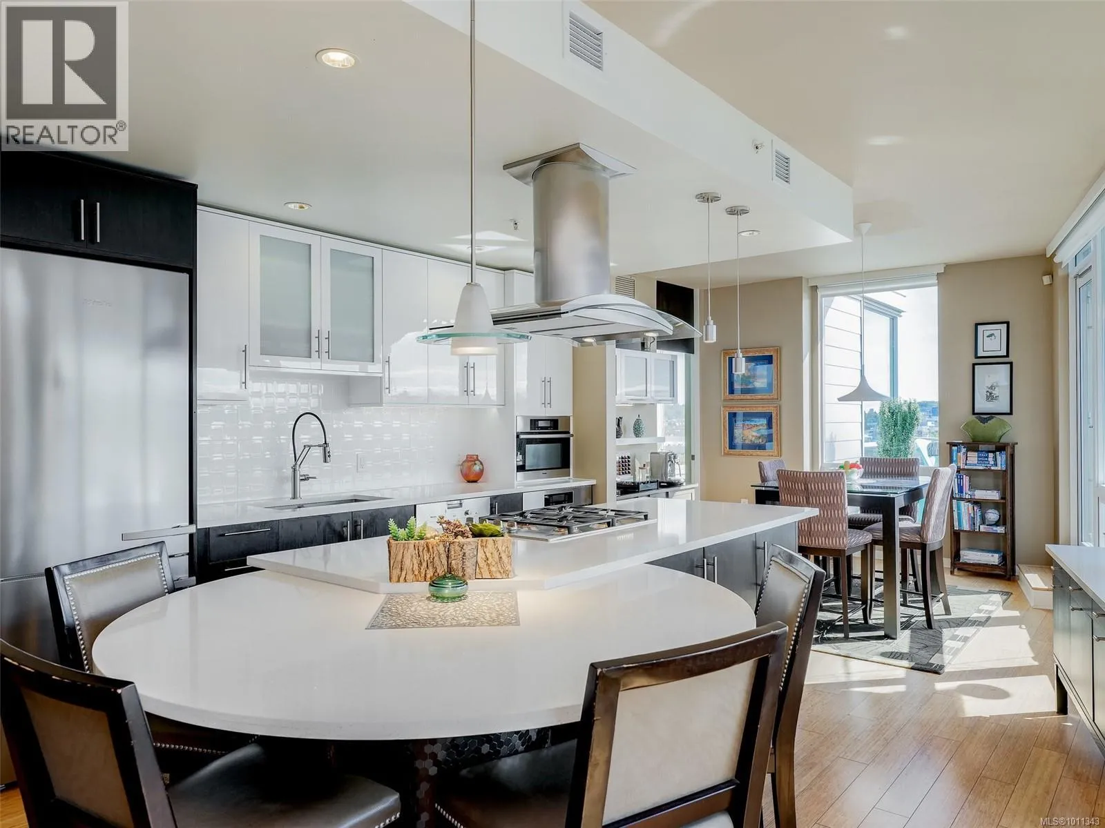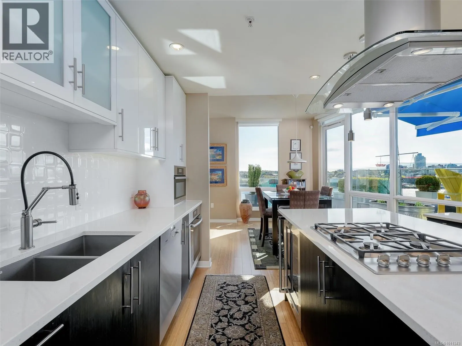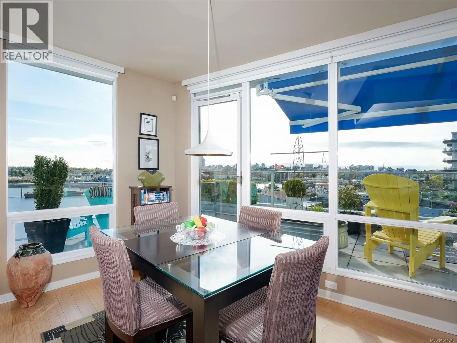 A rare offering in Dockside Greenâthis meticulously maintained sub-penthouse blends thoughtful updates w/ refined style. Built in 2008, this 1,140 sqft 2-bed + converted den condo offers a bright, open layout with high-end finishes. Enjoy heated bathrm floors, a steam shower, quartz counters, Miele appliances, custom Thomas & Birch cabinetry, a built-in Sonos sound system, Connect 4 automation, new electric blinds & awnings, and one of the few decks with a dedicated BBQ gas line. The large deck offers stunning viewsâperfect for relaxing or entertaining. Extras include 2 secure parking spots & 2 dedicated kayak racks. Dockside Green is a vibrant, eco-friendly community with a well-managed strata and easy access to shops, cafes, and the Galloping Goose Trail. Ideal for a newly retired couple or young professionals seeking a turnkey lifestyle. With premium upgrades and exceptional amenities, this unique condo offers a rare opportunity in one of Victoriaâs most sought-after neighborhoods. (id:27476)