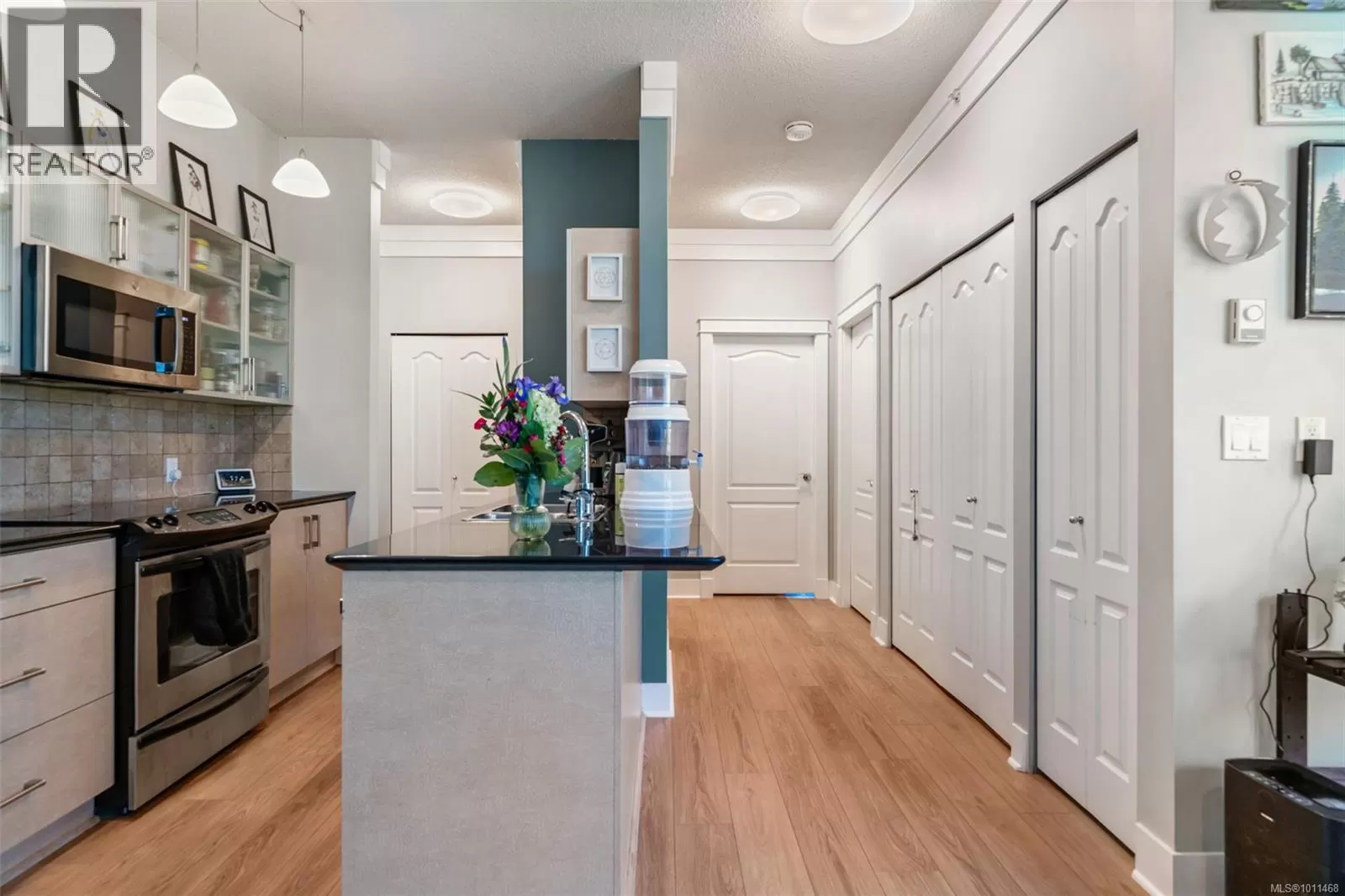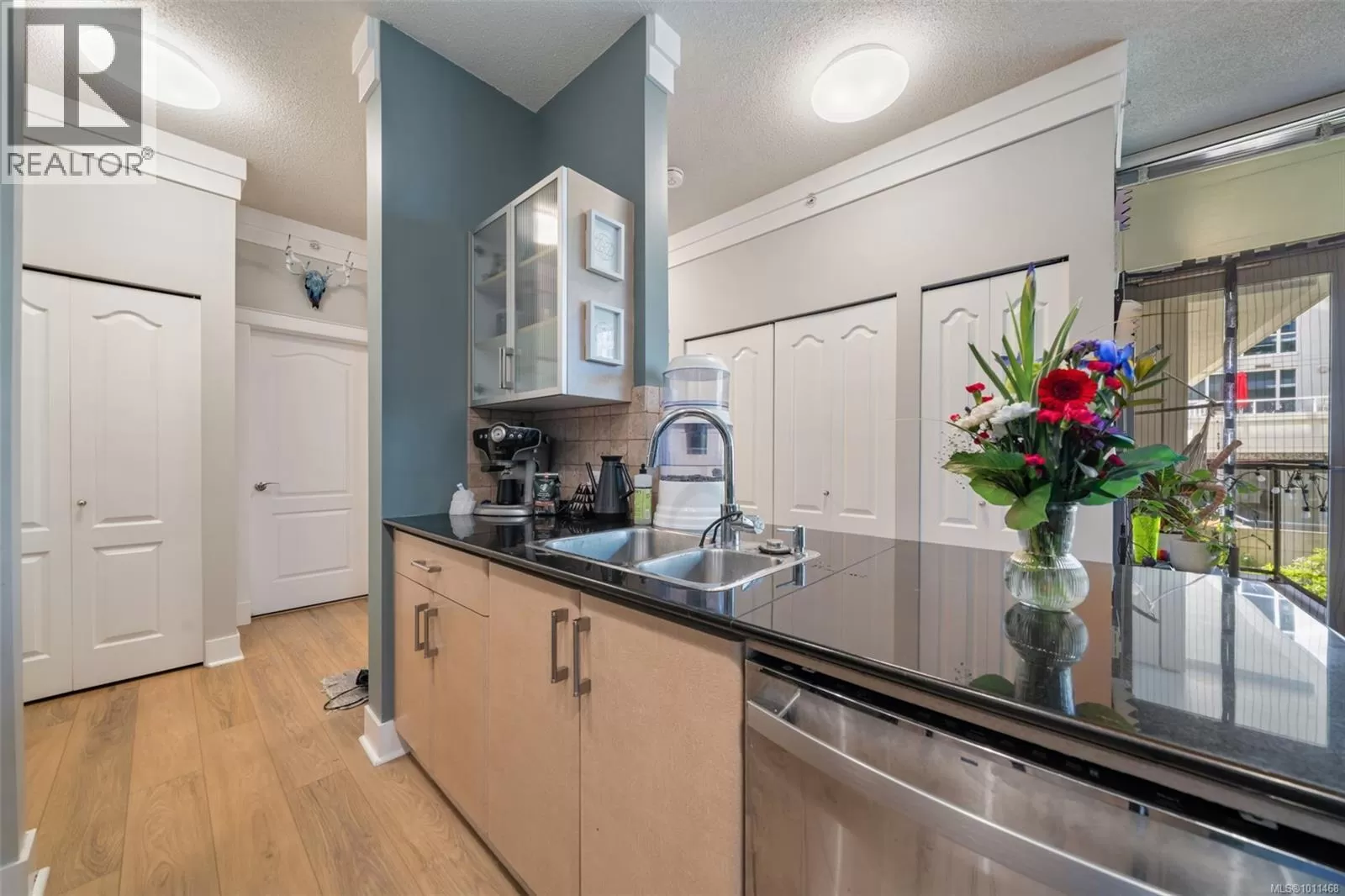 Discover this stylish and contemporary 2-bedroom, 2-bath suite at The Wave, offering exceptional value in the heart of Downtown. Expansive south-facing windows, rich hardwood flooring, sleek black granite counters, stainless steel appliances, and over-height ceilings highlight the modern design, while generous storage adds everyday convenience. With in suite laundry and storage locker this unit is tucked at the back of the building. The balcony overlooks a peaceful courtyardâyet just outside your door, youâll find vibrant shopping, dining, cafés, and all the energy of city living. Whether youâre looking for your next home or a smart investment, this property is an excellent choice. (id:27476)