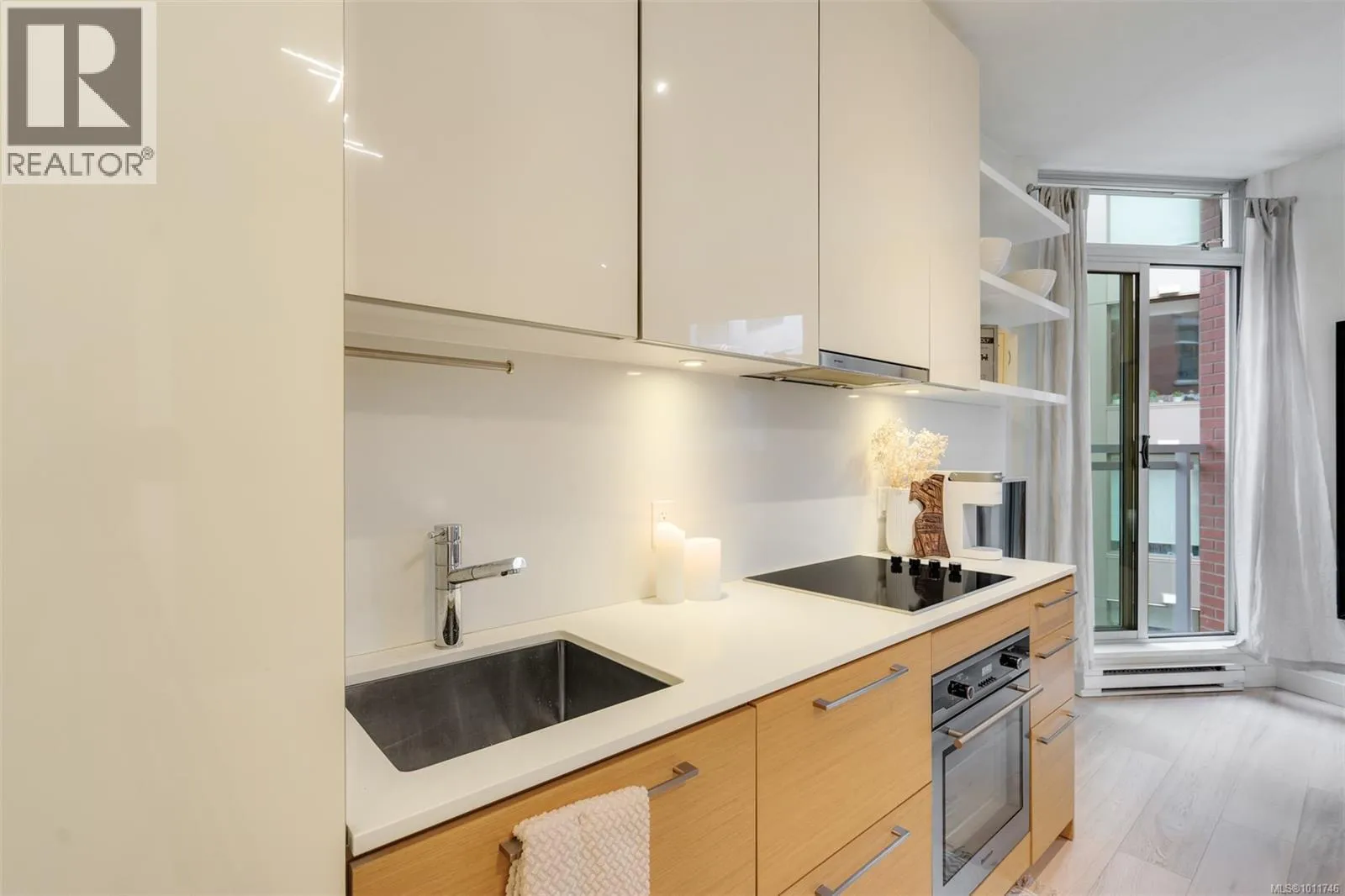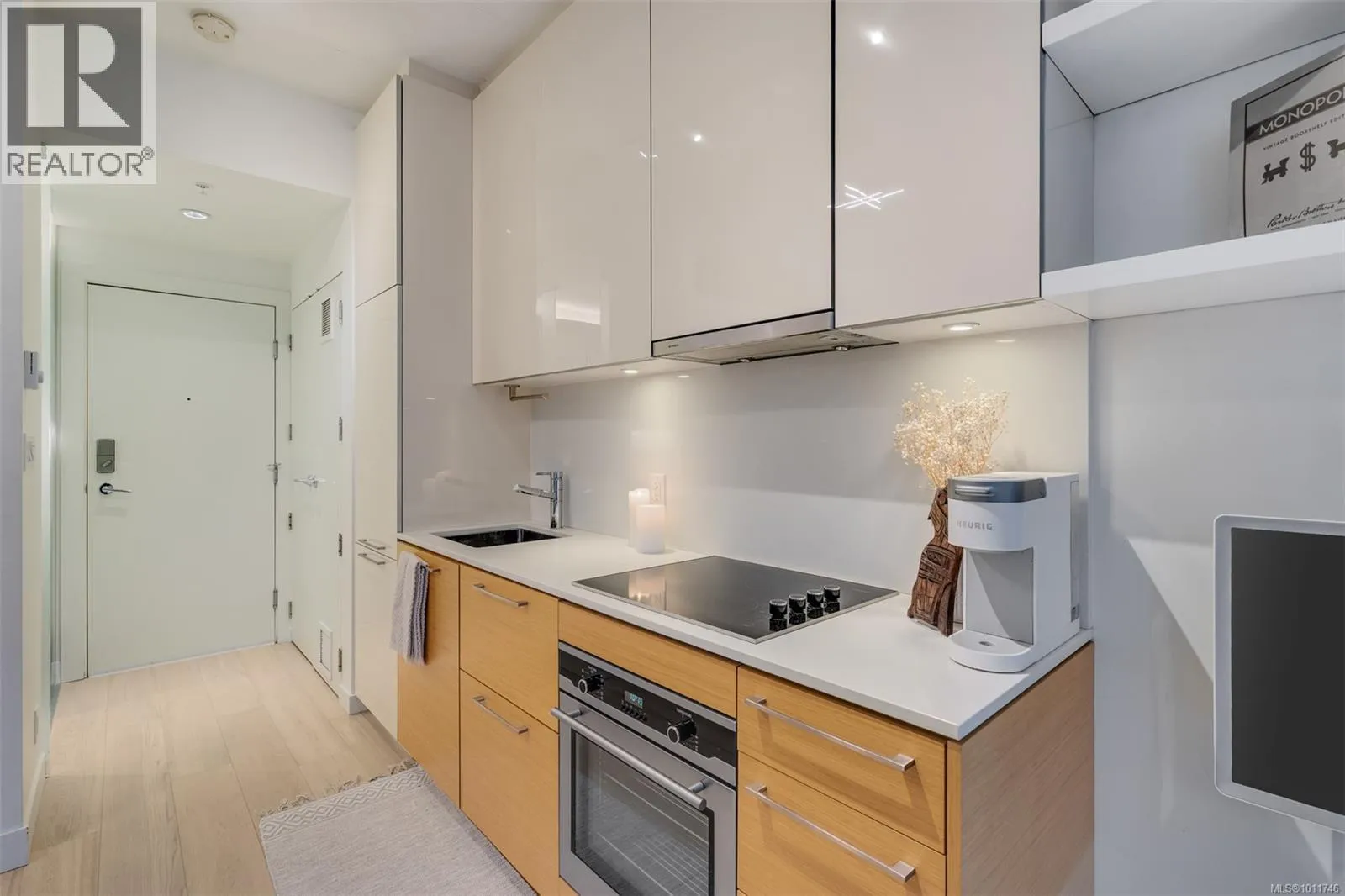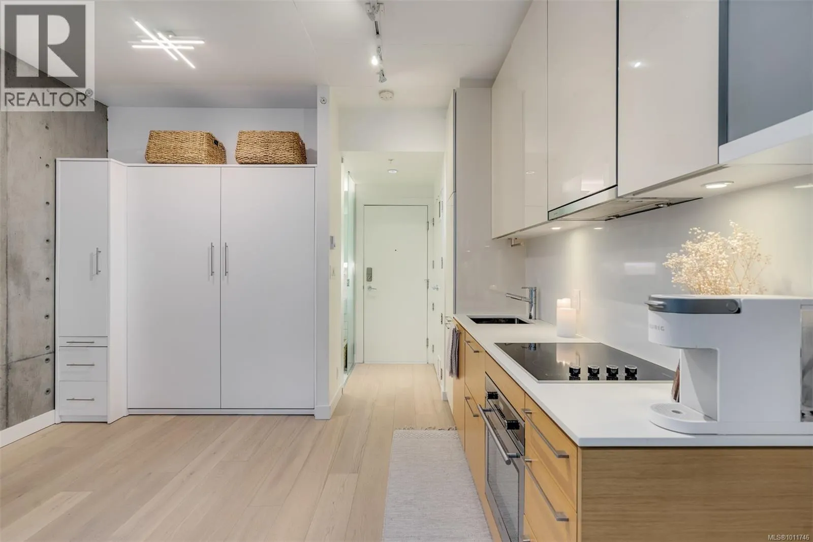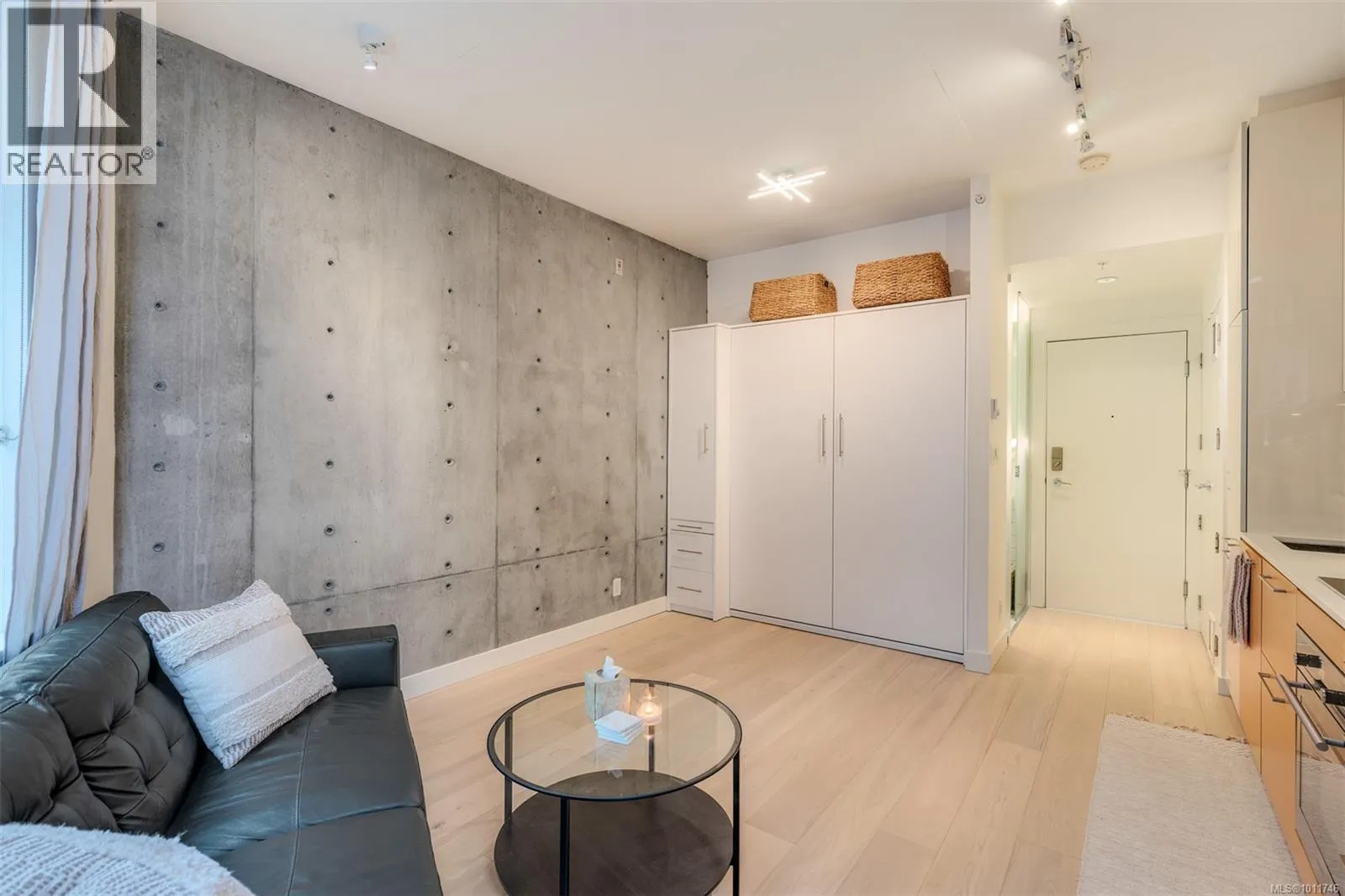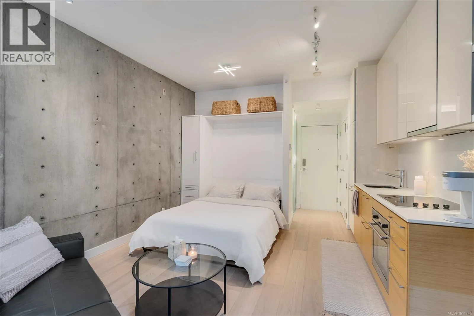 Introducing the chic studio residence at the prestigious Janion building. This sleek unit features brand new white oak flooring, a recently updated bathroom, and the enduring allure of steel and concrete construction. Enjoy the contemporary elegance of modern fixtures throughout, highlighted by the convenience of a custom Murphy bed with built-in storage. A new washer and dryer add further practicality to this meticulously maintained space. Step outside to discover beach access, offering the perfect launch for your kayak or paddle board right from your backyard. Ascend to the rooftop patio area, where panoramic views of the city skyline and the majestic ocean create an unforgettable backdrop to your daily routine. Indulge in the building's thoughtfully designed common areas, crafted to enhance your lifestyle. Keep fit at the on-site gym, and take advantage of additional storage options for added convenience. Experience downtown living, steps away from restaurants and stores. No GST. (id:27476)