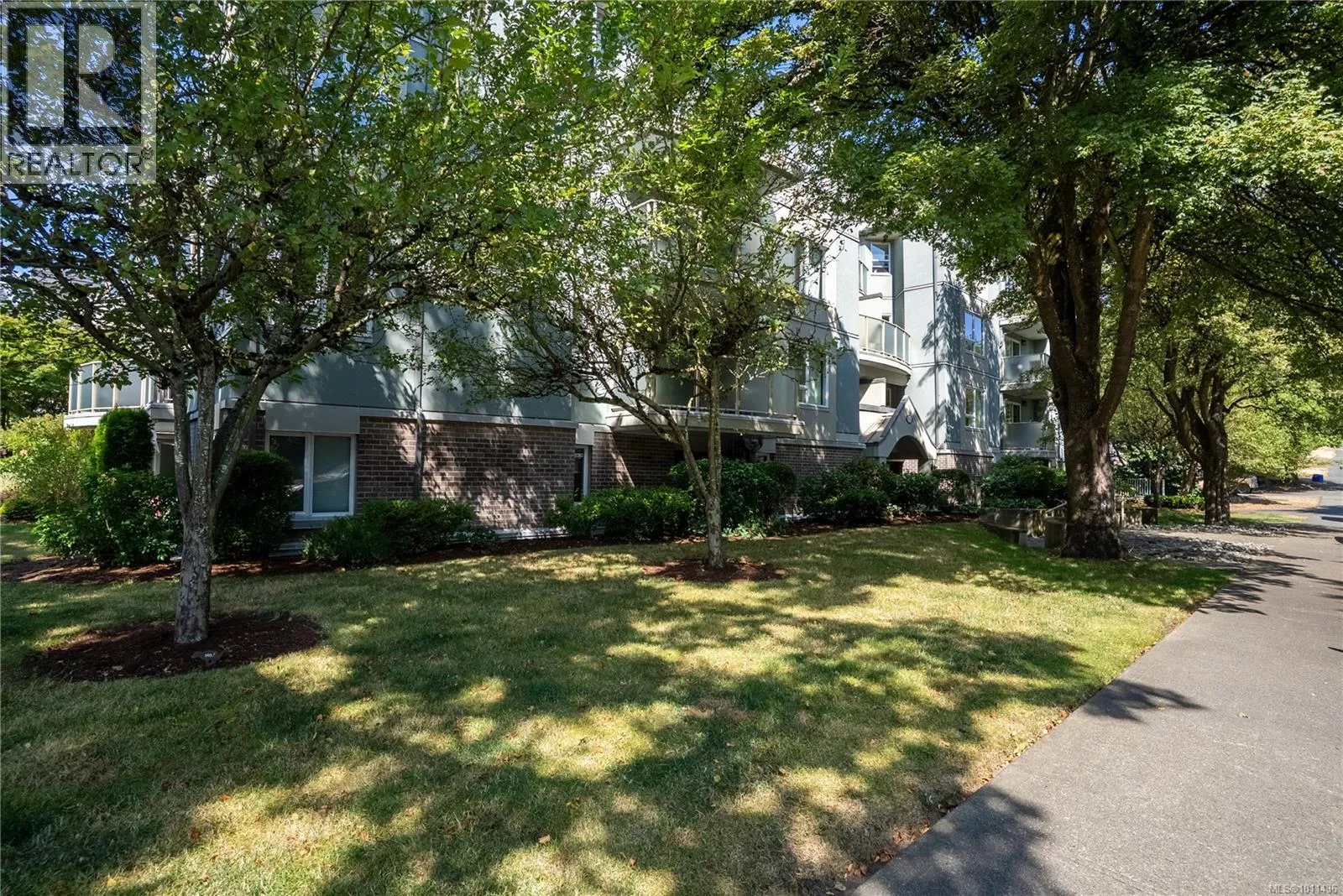 OPEN HOUSE SAT & SUN 2-4pm. Welcome to this secure and serene 2-bedroom, 2-bathroom ground-level condo in the popular Hillside area. The open layout features a generous living room with a cozy fireplace and an adjoining dining area, creating the perfect space for entertaining. The kitchen provides plenty of cabinet and counter space, along with easy access to the main living areas. The large primary bedroom includes a 4-piece ensuite, while the second bedroom is served by a full 3-piece bathroomâideal for guests or a home office. Enjoy the convenience of in-suite laundry, a well-planned floor plan with multiple storage options, and secure underground parking. Centrally located, this home is just minutes to Camosun College, the University of Victoria, Hillside Centre, and Jubilee Hospital. Transit is right at your doorstep, making commuting simple. Small pets are welcome, no age restrictions, with some rental restrictions in place. A fantastic opportunity to own in a highly desirable, walkable location. (id:27476)