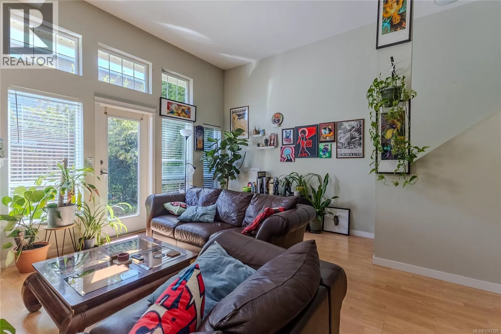 Don't miss this centrally located 3 bedroom and 2 bath townhome in excellent condition. Built in 2002, this home offers all the comforts one needs in a compact floor plan over 3 levels. In a quiet complex with beautiful private gardens, this home boasts 1,290 sq ft of convenient living space. A bright kitchen, and a cozy living/dining room featuring Vaulted ceilings and an energy efficient gas fireplace to warm the space. Bonus: gas included in strata fee! Wander upstairs into the spacious master suite complete with ensuite & large closet along with a second bedroom, bathroom and laundry. The top level you will find another bedroom perfect for guests! Through the bright living room onto the back patio, enjoy the space for a summer BBQ! In a pet & children friendly complex, this townhome is an ideal starter home for a young family! Extremely close to many amenities, including coffee shops, schools, Crystal Pool, Save-on-Foods grocery store walking distance away, & more! (id:27476)