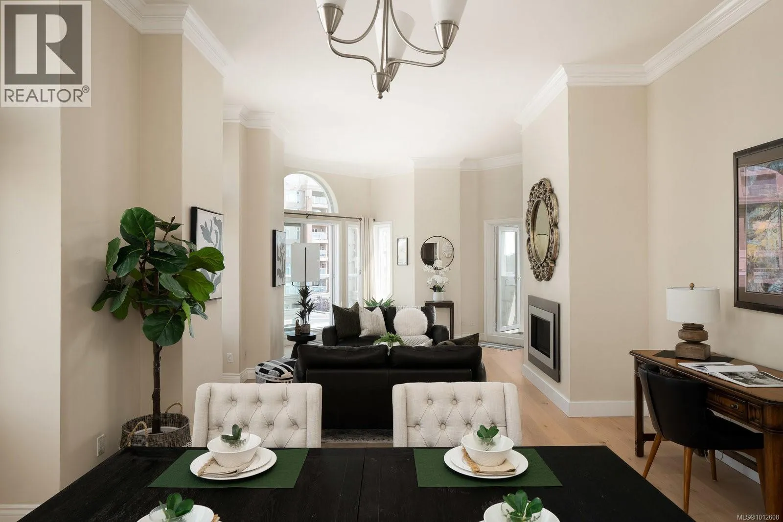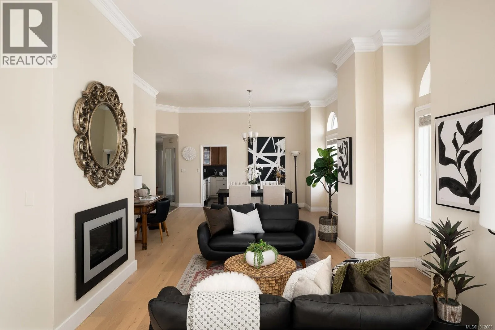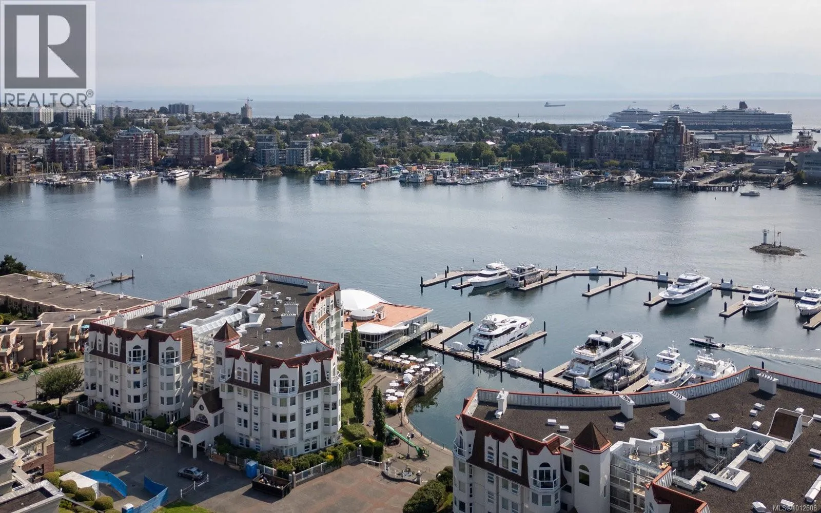 Soaring 11-foot ceilings set the tone for this chic and spacious Corner Penthouse in the prestigious Royal Quays, located in the heart of the Songhees. With 1,572 sq. ft. of updated living space, this 2-bedroom, 2-bathroom home blends style and comfort with ocean glimpsesâwatch the float planes and kayaks go by, and enjoy the twinkling downtown lights in the evening. A cozy gas fireplace warms the winters, and three balconies invite you to soak in the surroundings year-round. The ideal layout places the bedrooms on opposite sides of the condo, offering both privacy and functionality. Additional highlights include a large laundry room and an underground parking stall with a dedicated storage locker. Step outside and experience the Songhees lifestyleâwalk the waterfront trail from West Bay Marina to downtown Victoria, with local favourites like Spinnakers and Boom + Batten just steps from your door. Royal Quays is one of Vic Westâs most sought-after addresses, offering an exceptional blend of luxury, convenience, and community. A rare opportunity to experience penthouse living at its finest, minutes from downtown. (id:27476)