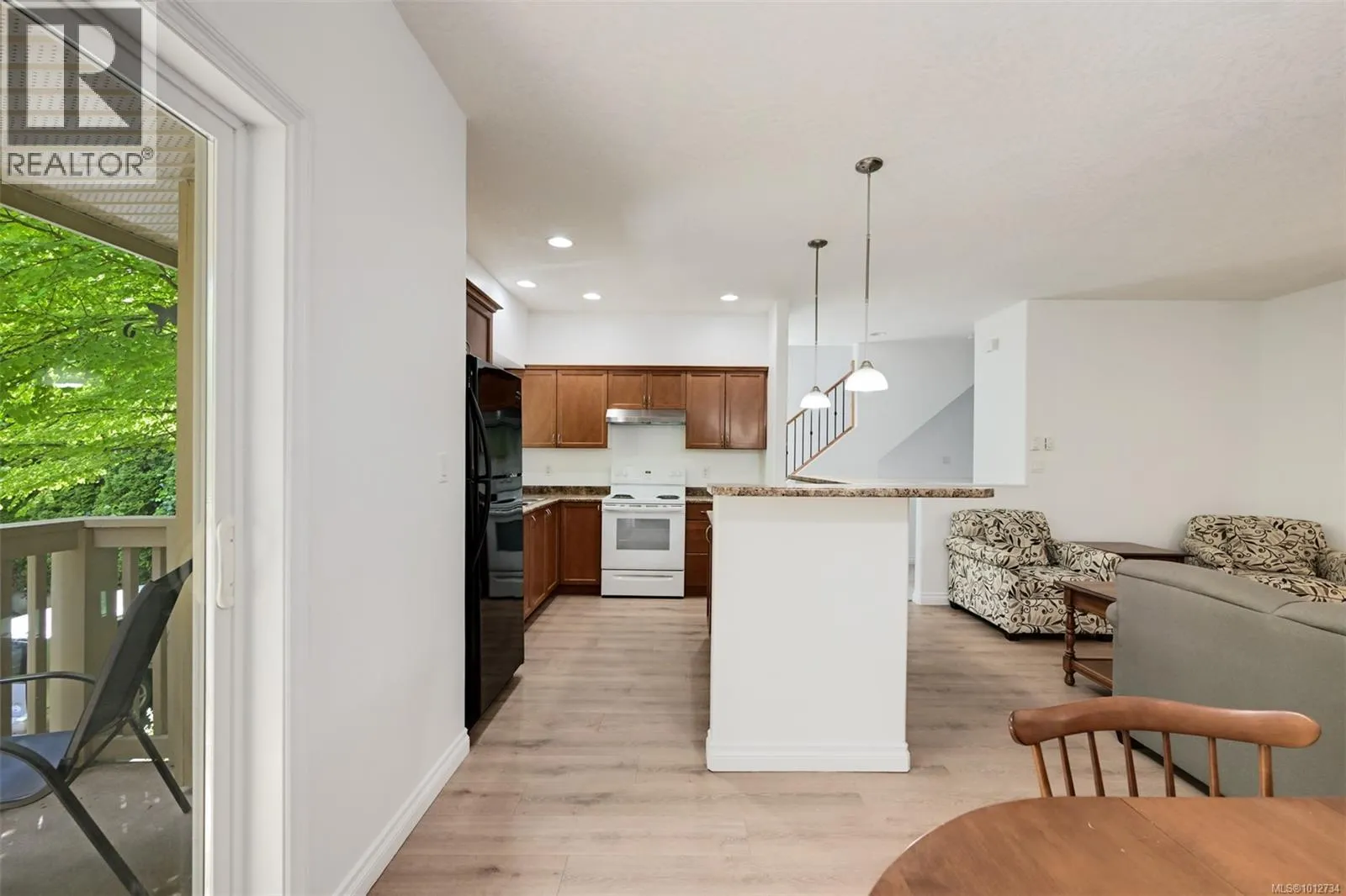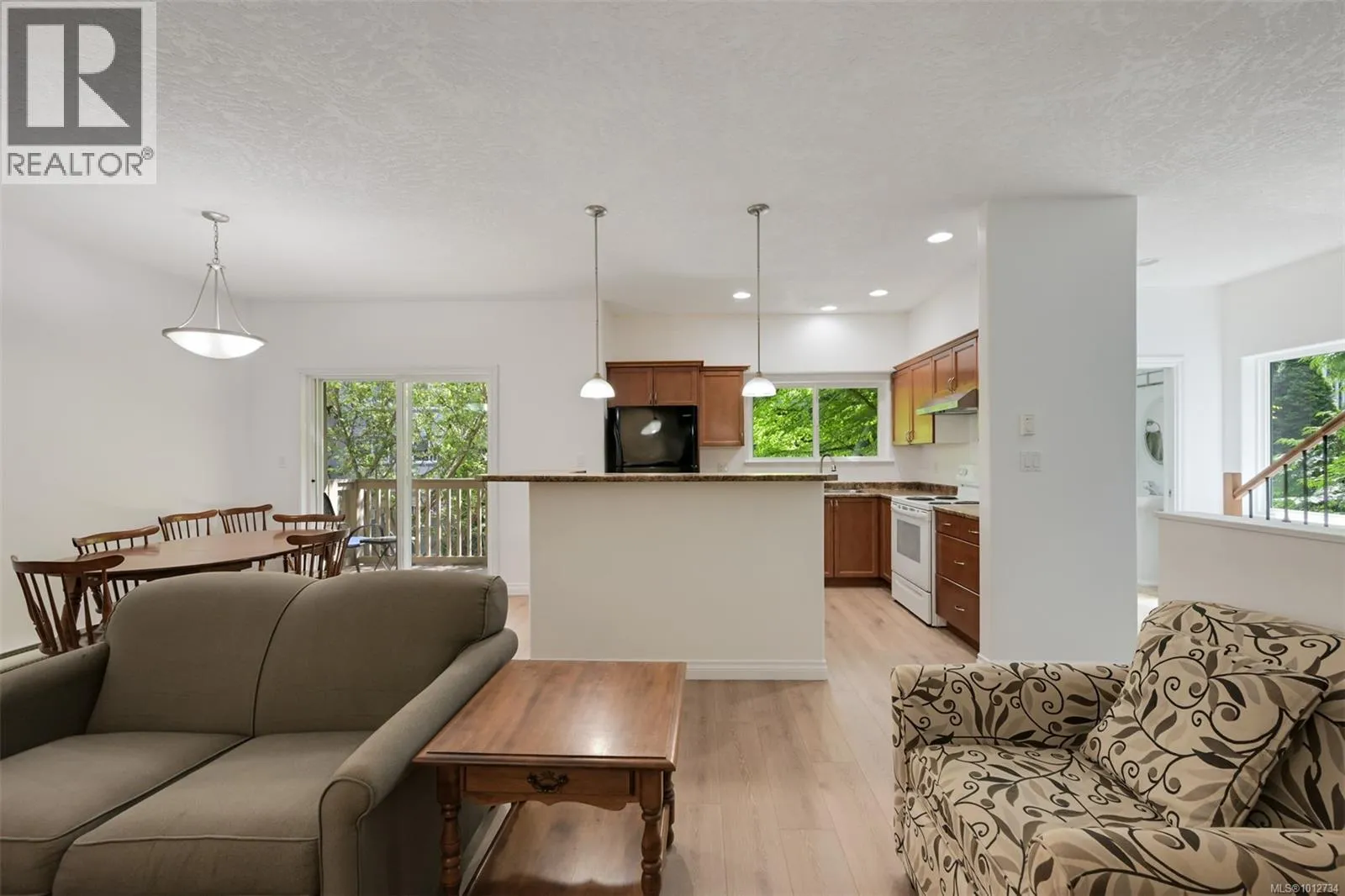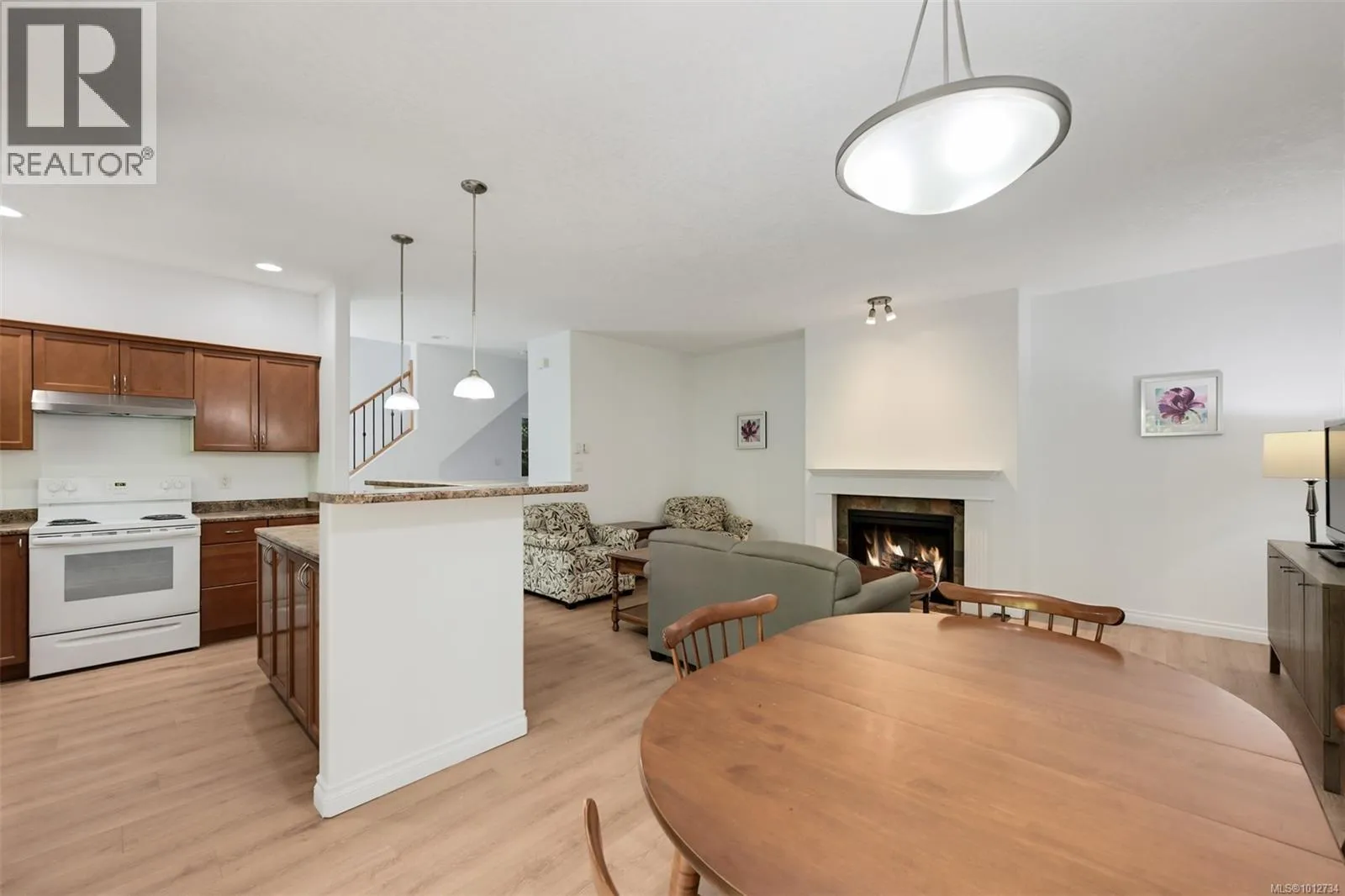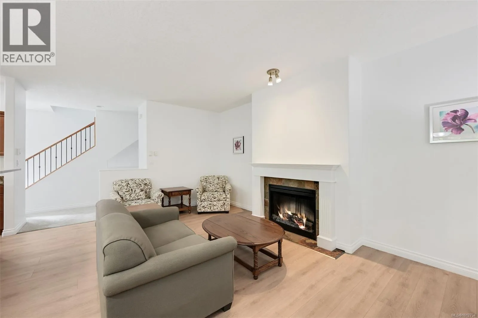 Welcome to your updated, turnkey townhome! Tucked into a prime, convenient location, this 3-bedroom, 3-bathroom end-unit offers over 1,700 sq ft of bright, flexible living space. Inside, you'll find new flooring and fresh paint throughout, creating a modern and inviting feel. The open-concept main floor is perfect for entertaining, with a cozy fireplace perfect for entertaining or relaxing evenings and a private balcony to enjoy your morning coffee. A unique, flexible layout includes a spacious bedroom on the entry level, perfect for a guest suite, gym, or home office. Upstairs, two more generous bedrooms await. This home is just moments from Cedar Hill Golf Course and Hillside and Mayfair Malls, giving you unparalleled convenience. Its proximity to Camosun College and UVic also makes it an excellent option for students. Enjoy peace of mind in a friendly, well-run strata that allows pets. Don't let this incredible opportunity pass you by (id:27476)